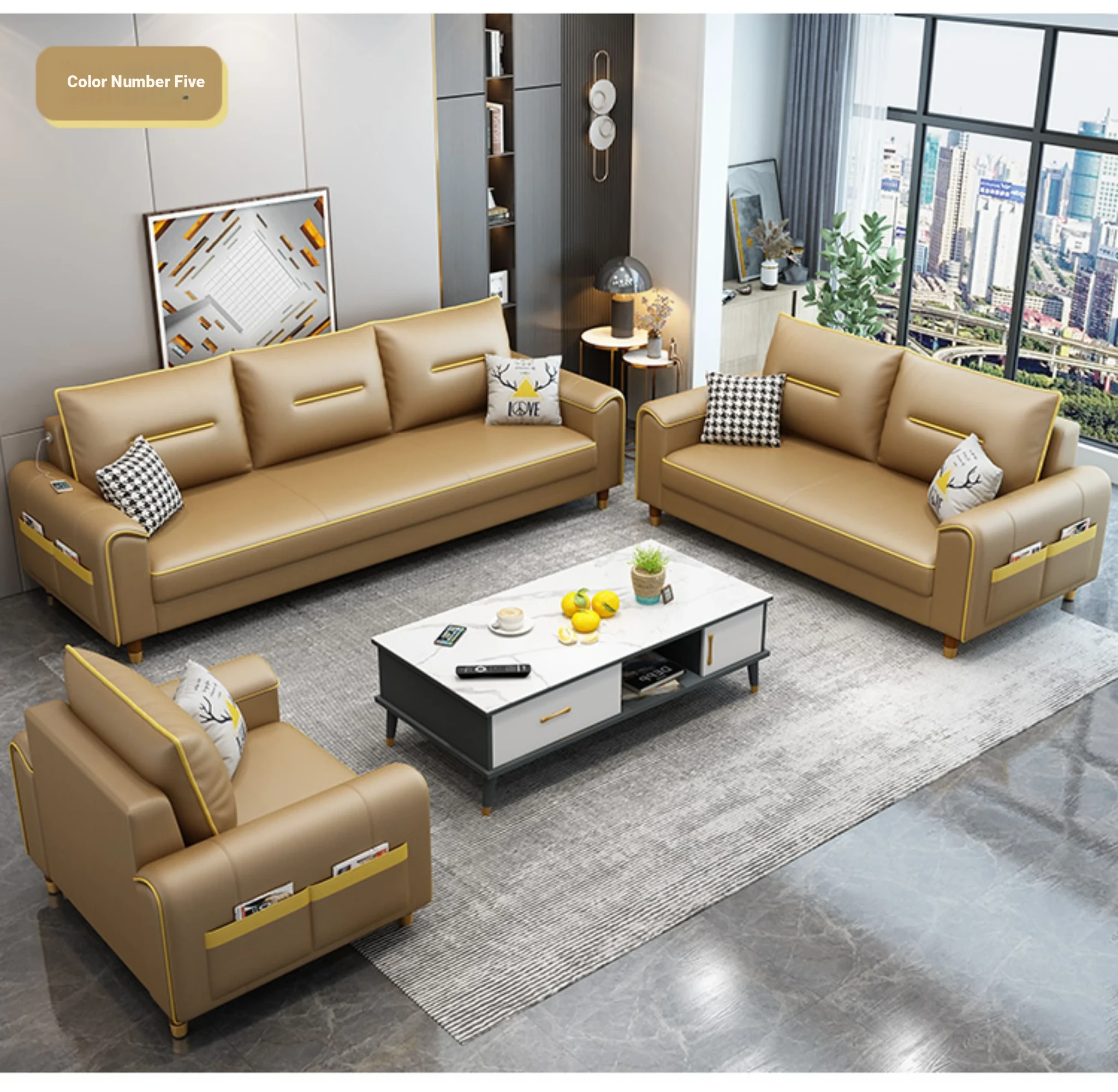 Nordic 2025 Light Luxury Latex Modern Minimalist Cat Scratch Resistant Small Space Sofa Set for Four - Perfect for Cozy Living Rooms
