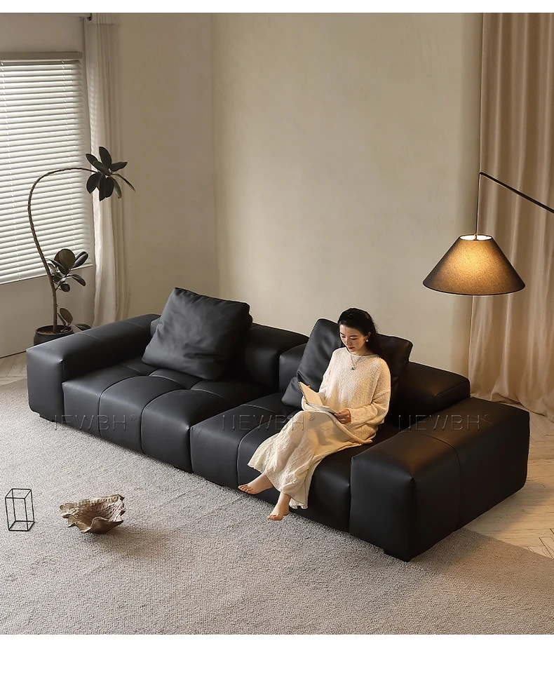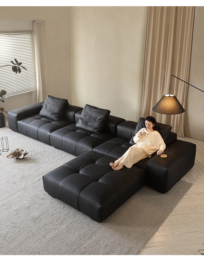 Pixel Sofa Modular - Premium Top-Grain Leather, Ideal for Villas and Small Living Spaces, Straight-Line Italian Minimalist Design, Saba Collection