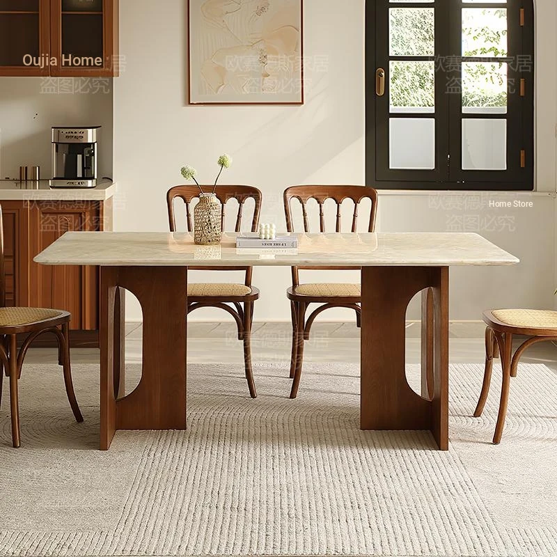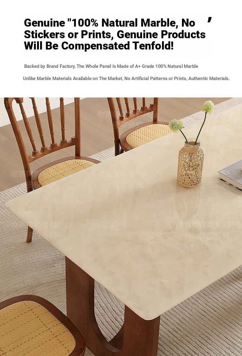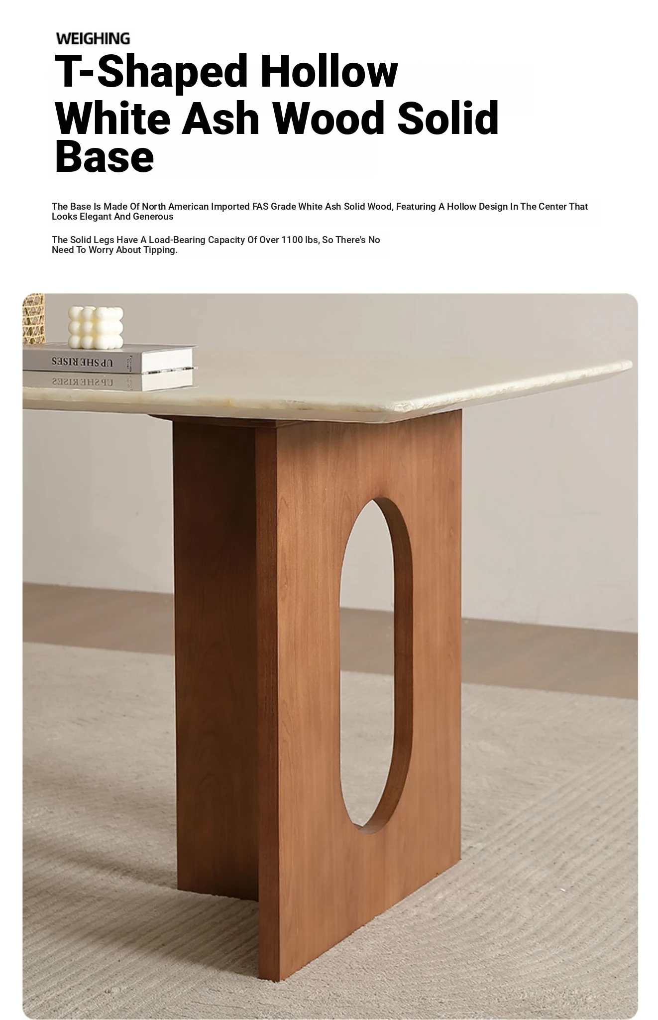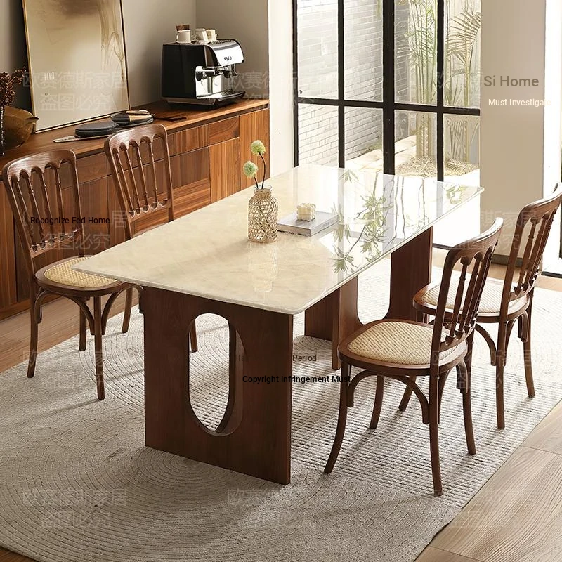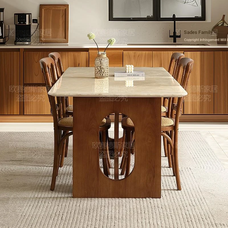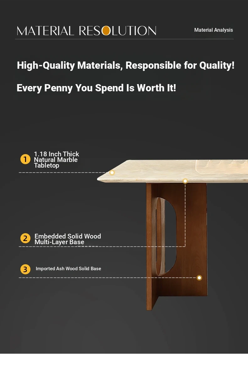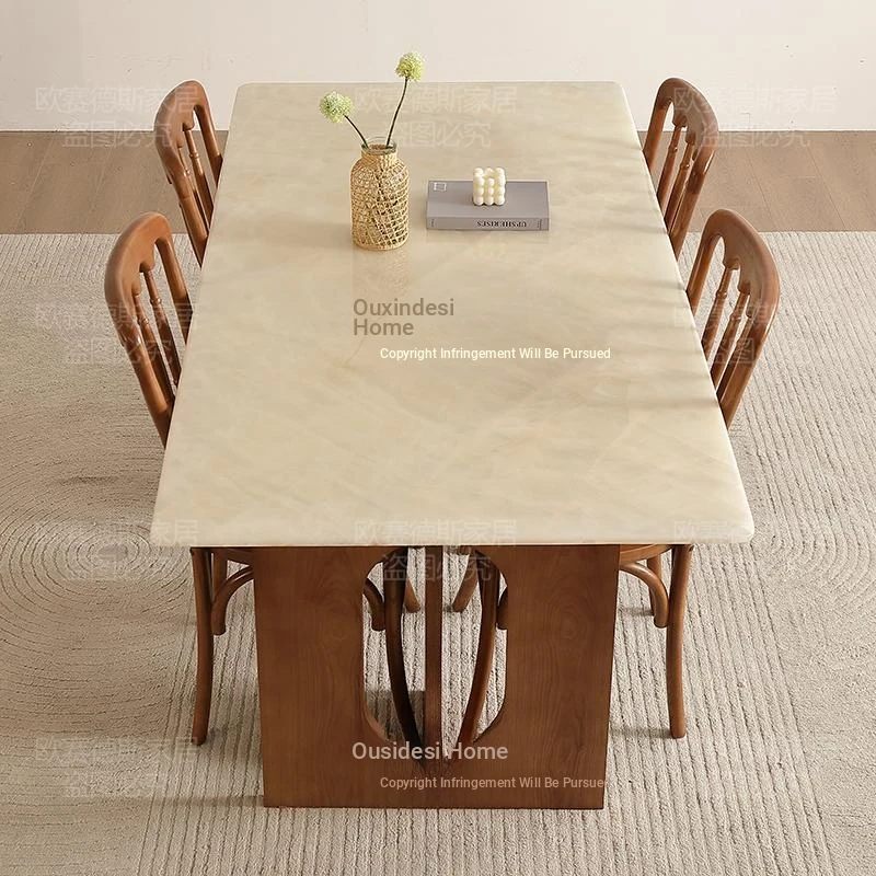 Premium White Ice Jade Natural Marble Dining Table - Elegant Rectangular Design for 6 People, Featuring Solid Ash Wood Chairs - Perfect for Your Stylish Home Décor