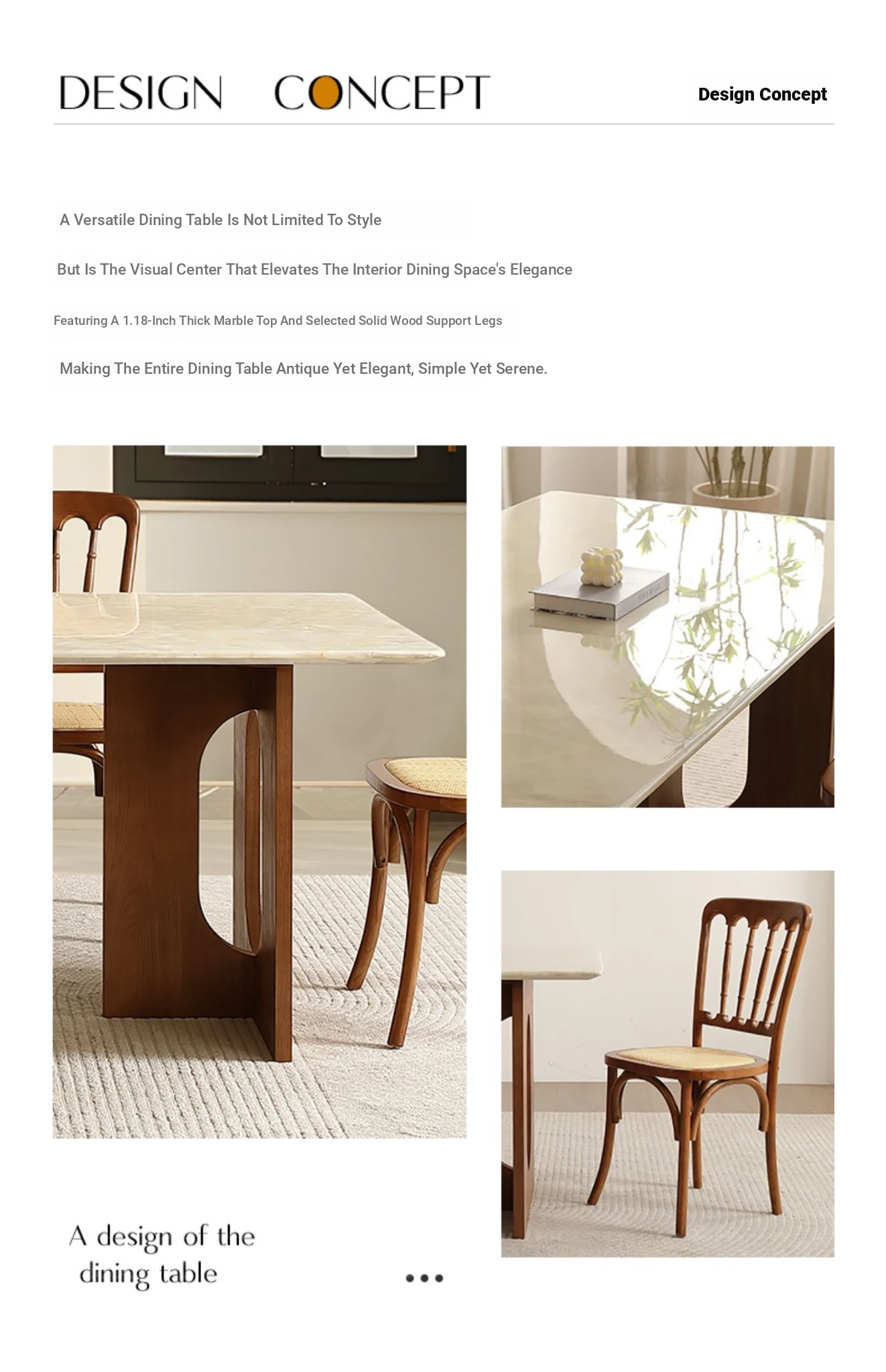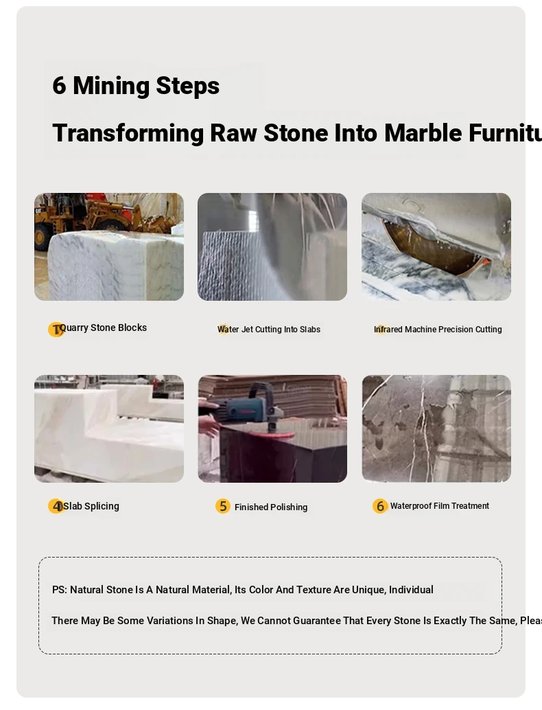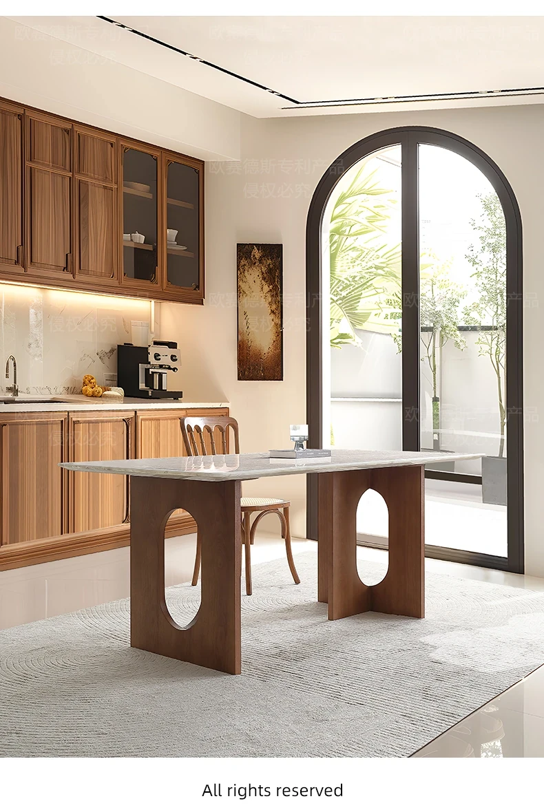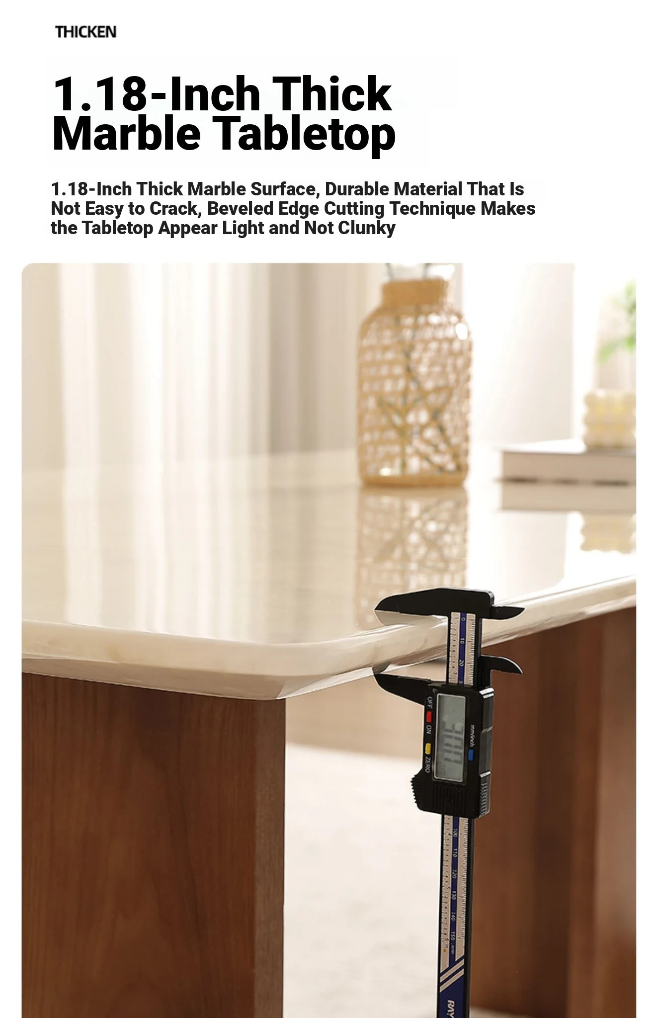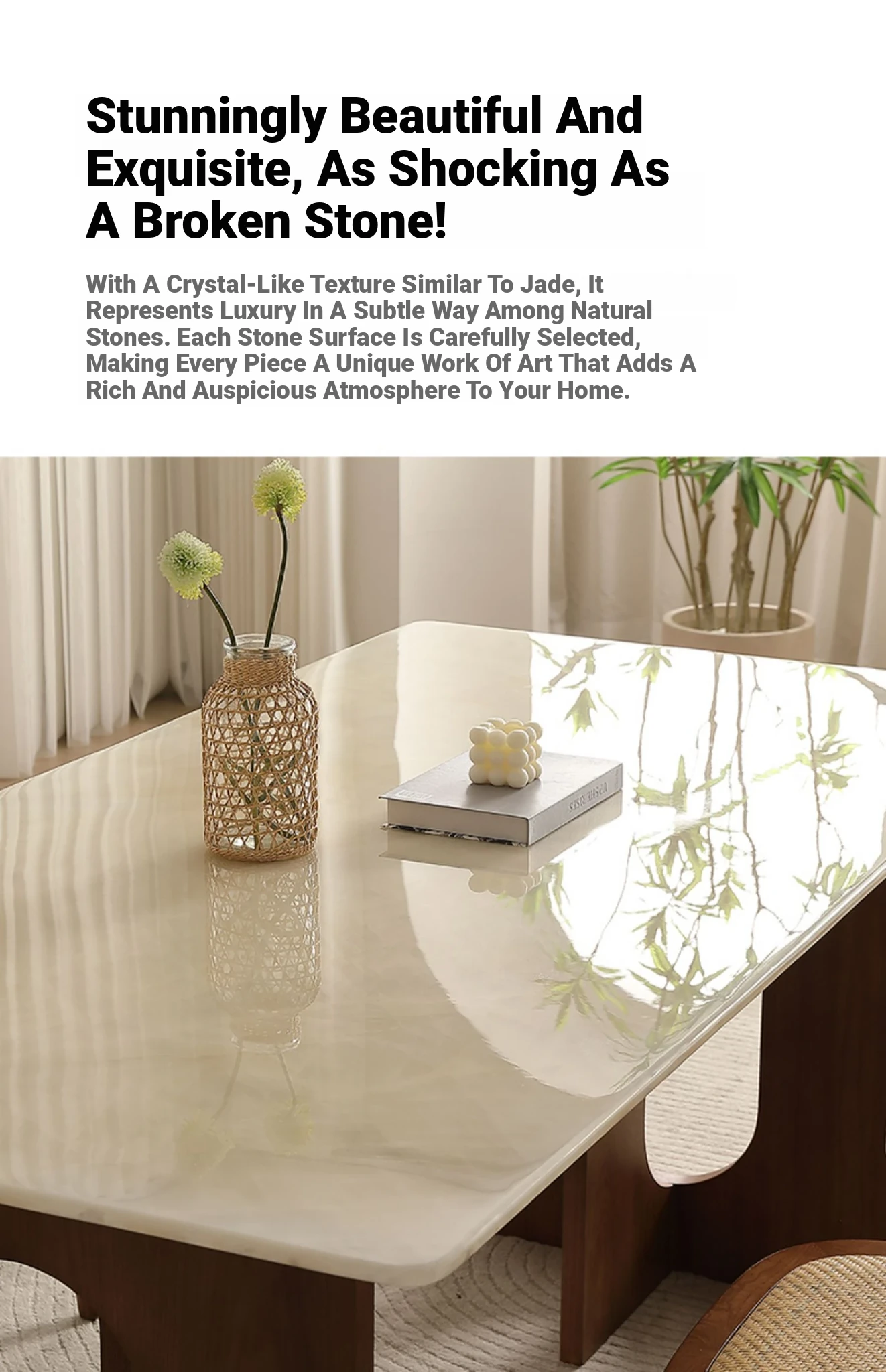 Premium White Ice Jade Natural Marble Dining Table - Elegant Rectangular Design for 6 People, Featuring Solid Ash Wood Chairs - Perfect for Your Stylish Home Décor