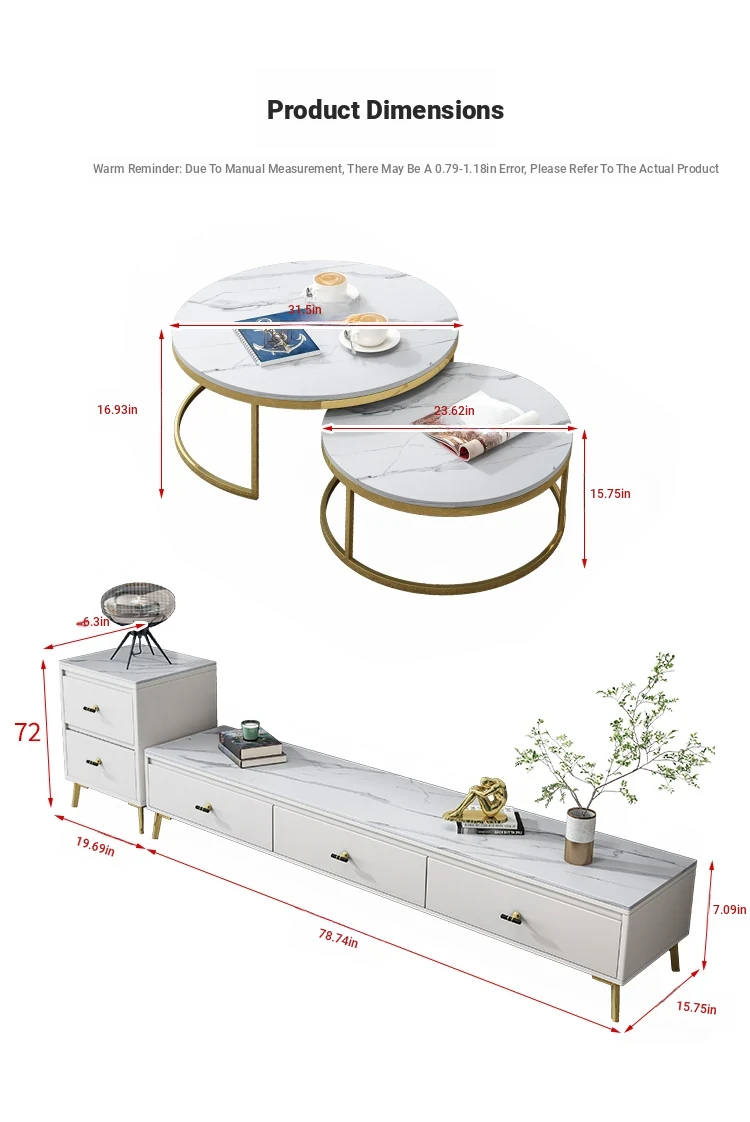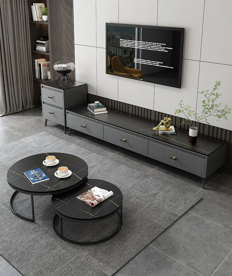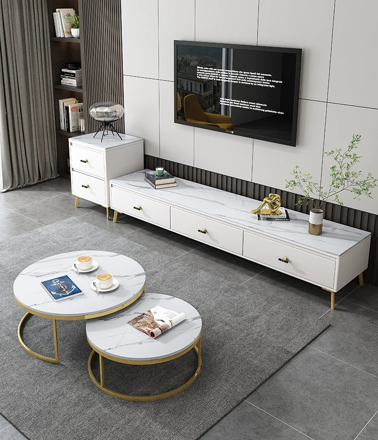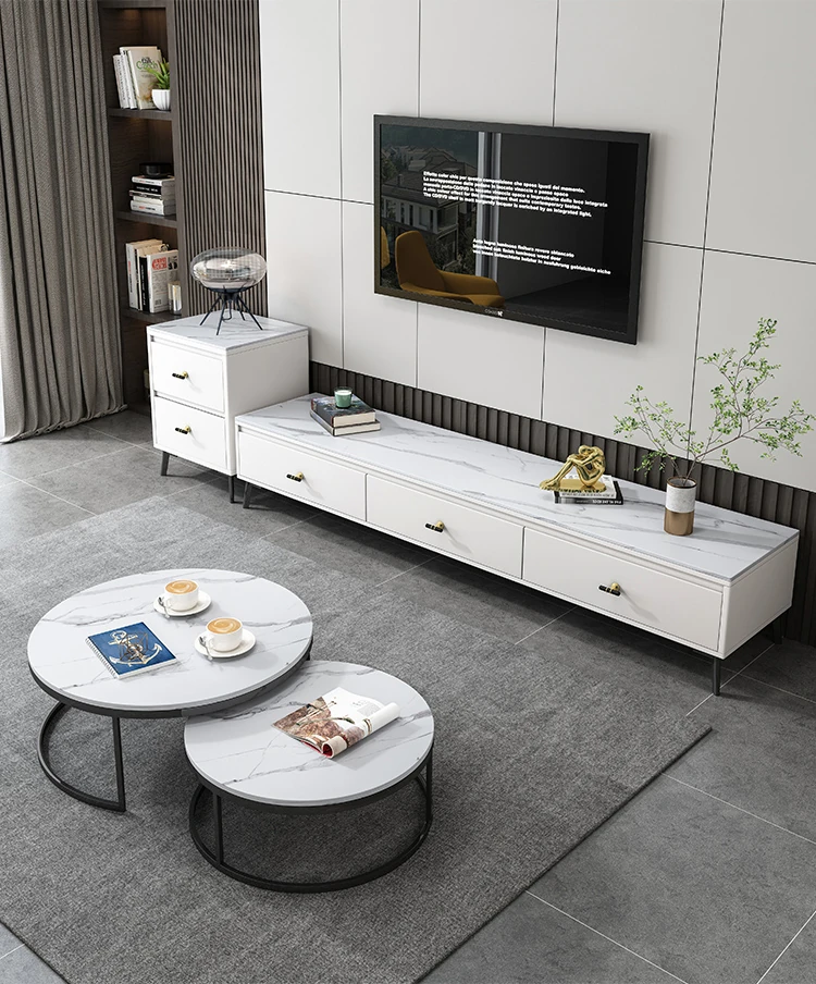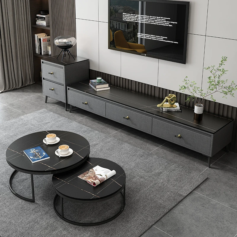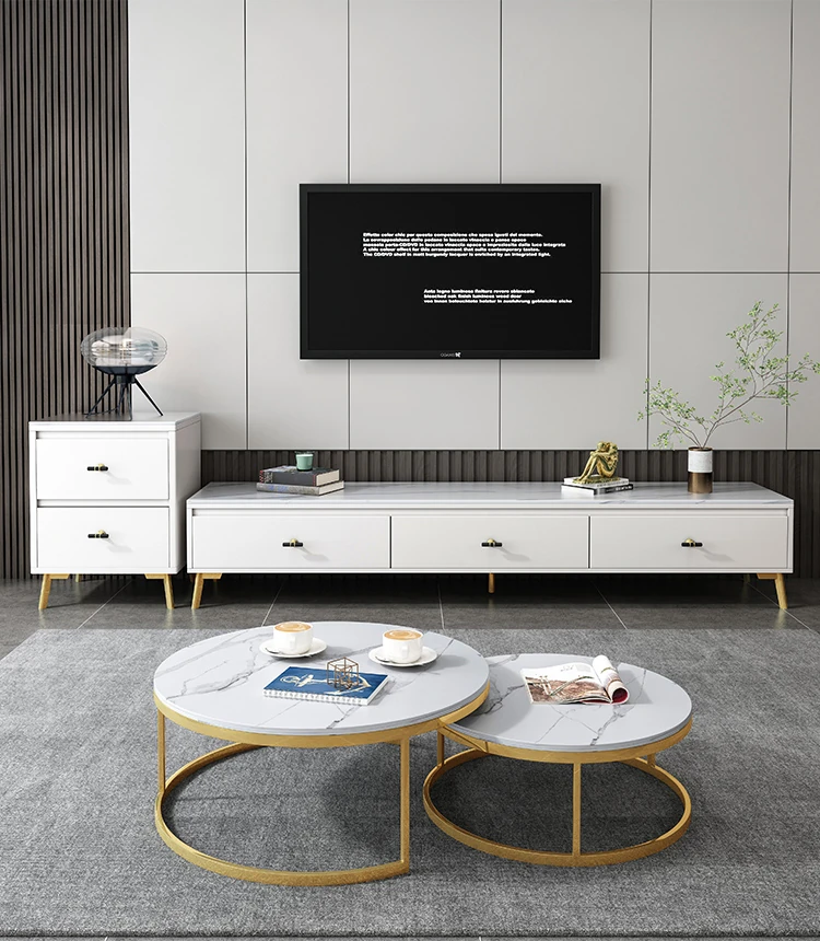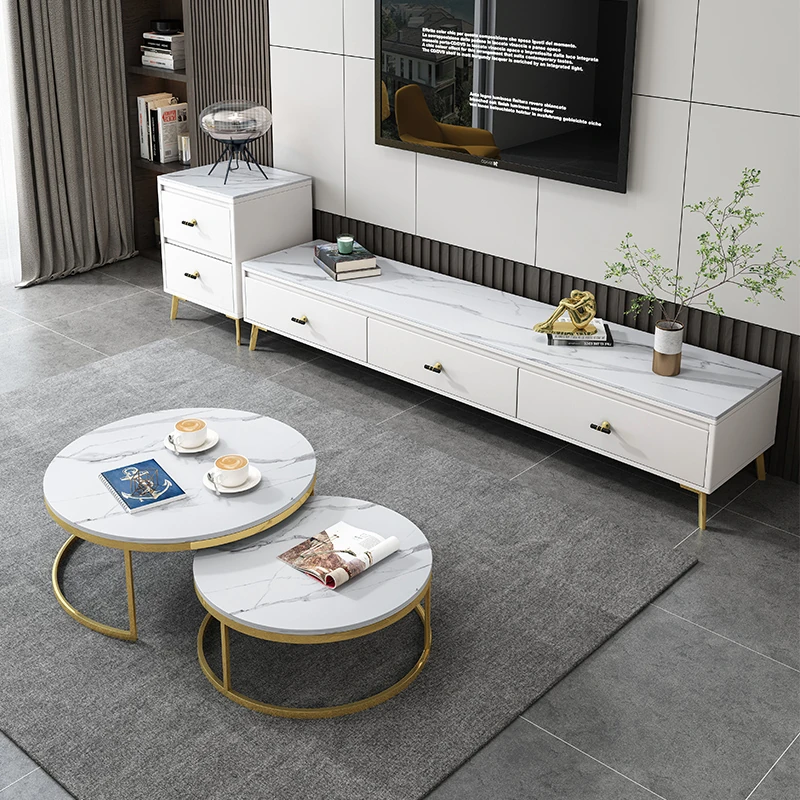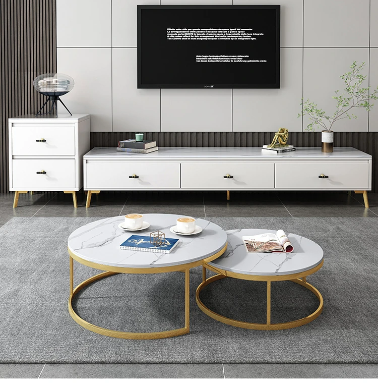 Scandinavian Style Round Coffee Table - Minimalist Modern Luxury Design for Small Living Rooms, Perfect for Home Use, TV Cabinet Combo
