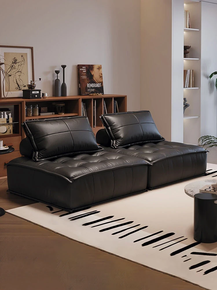 Stylish Black Modular Square Sofa for Small Spaces - Perfect for Shops, Reception Areas, and Living Rooms - Comfortable Tofu-Block Design for Cozy Seating
