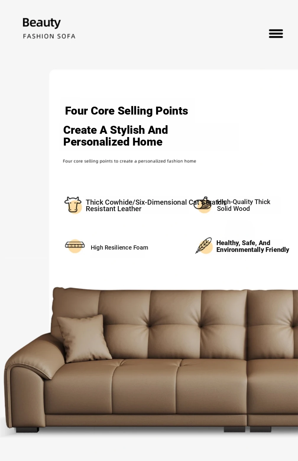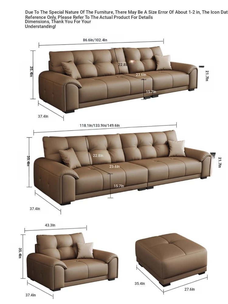 Yuejiaju 2025 New Italian Minimalist Genuine Leather Sofa for Small Living Rooms - Scratch-Resistant and Modern Design, Perfect for Stylish Homes