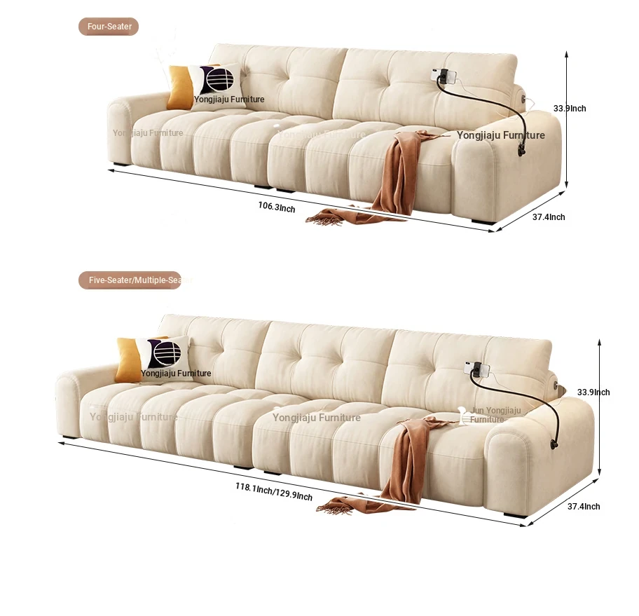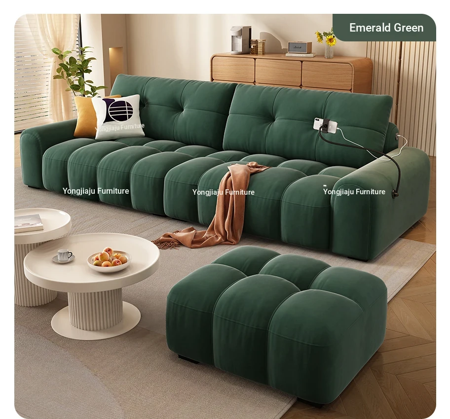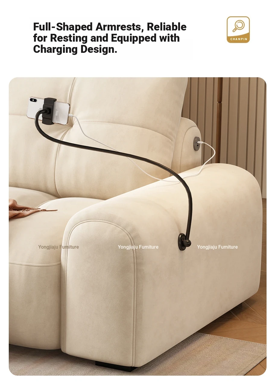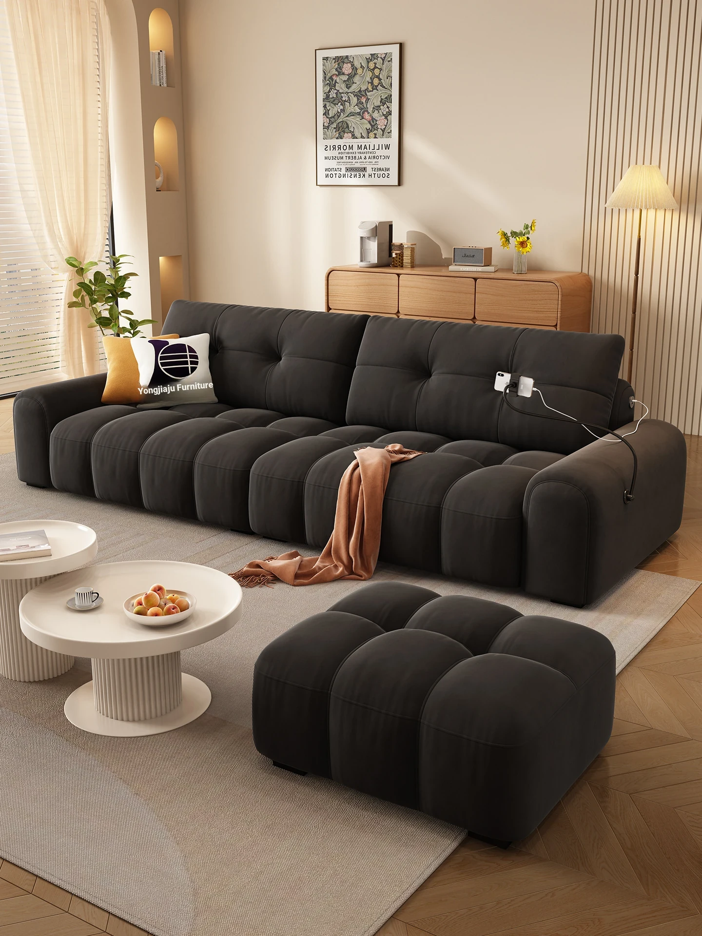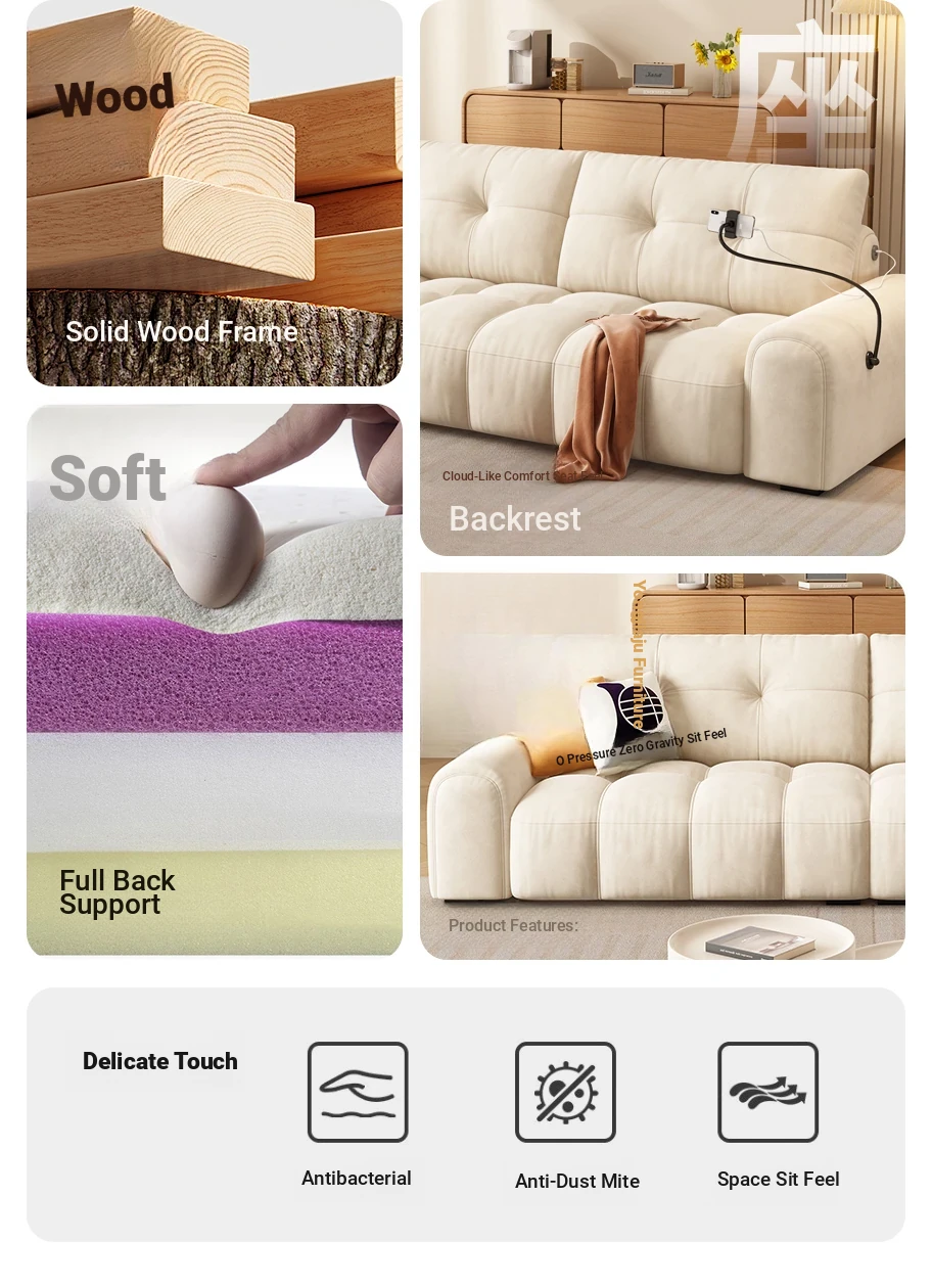 Yuejiaju Creamy Fabric Sofa - Modern Minimalist Design for Small Living Rooms, Featuring Cotton Candy Cloud Texture and Cat Scratch-Resistant Upholstery, with a Touch of Real Leather. Perfect for Cozy Spaces!