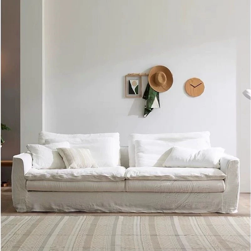 Japanese Wabi-Sabi Style Removable Linen Fabric Sofa - Spacious Three-Seater for Living Rooms of All Sizes, Perfect for Cozy Gatherings and Relaxation