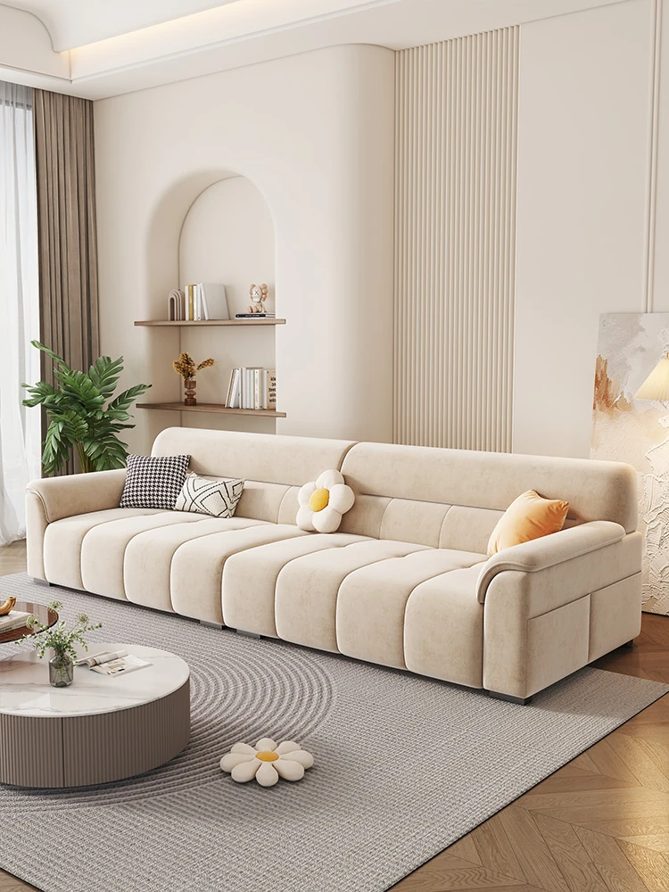Nordic Italian Minimalist Cream Velvet Sofa for Small Living Rooms - Stylish 3-4 Seater Straight Sofa for Cozy Spaces, Perfect for Trendy Home Décor!