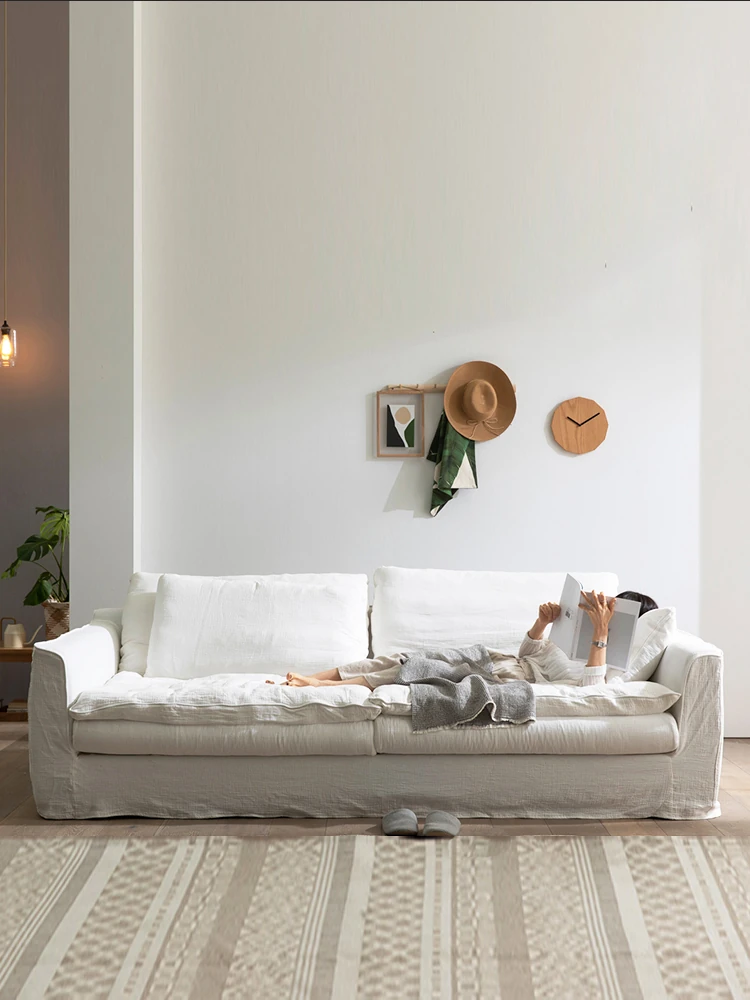 Wabi-Sabi Style Embracing Linen Sofa - French-Inspired Creamy Aesthetic for Small Living Rooms, Perfect for Cozy Guesthouses, Removable and Washable Cotton-Linen Blend
