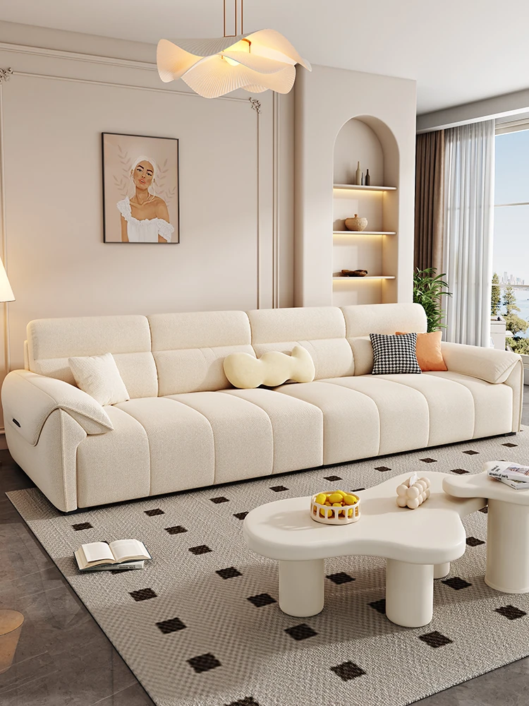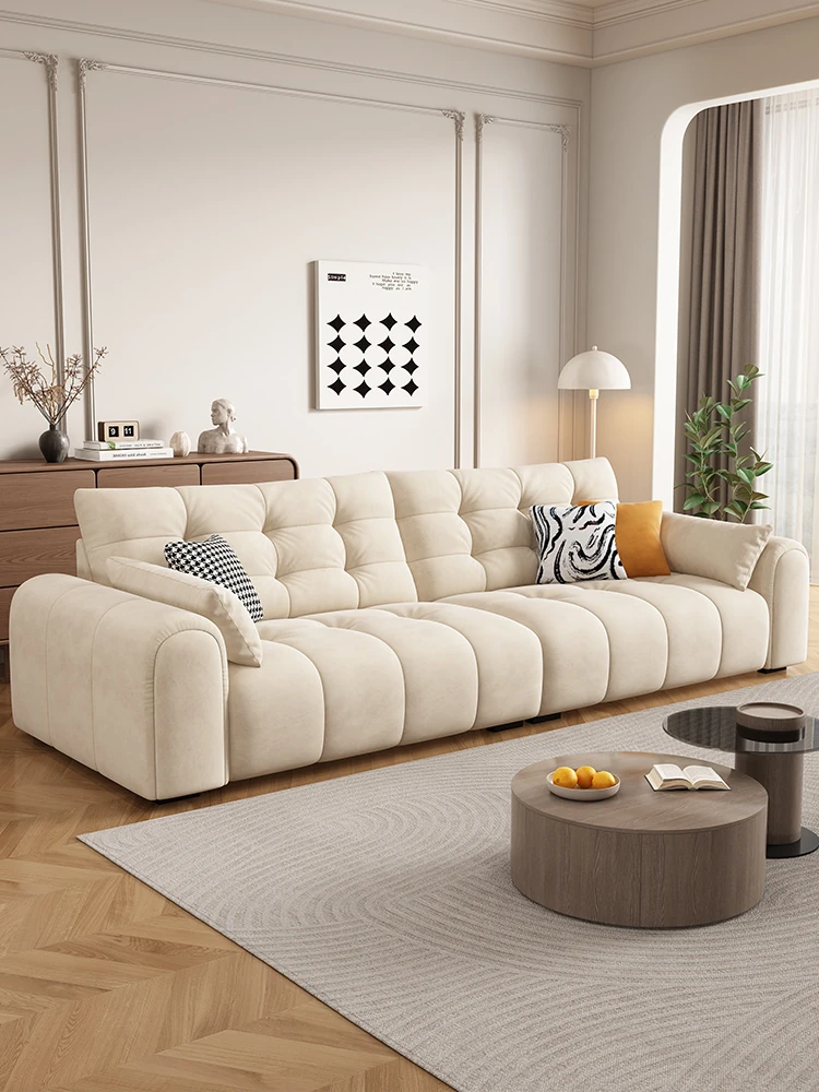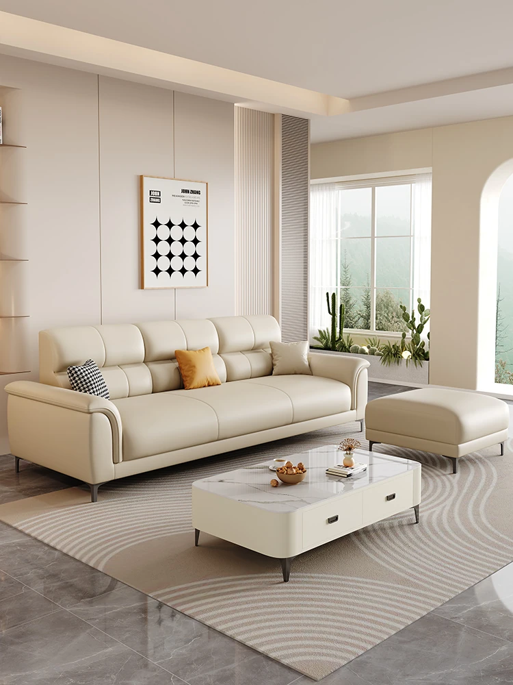 Cream Velvet Sofa for Small Living Rooms - 2025 New Italian Minimalist Style Genuine Leather Three-Seat and Four-Seat Options, Perfect for Modern Spaces!