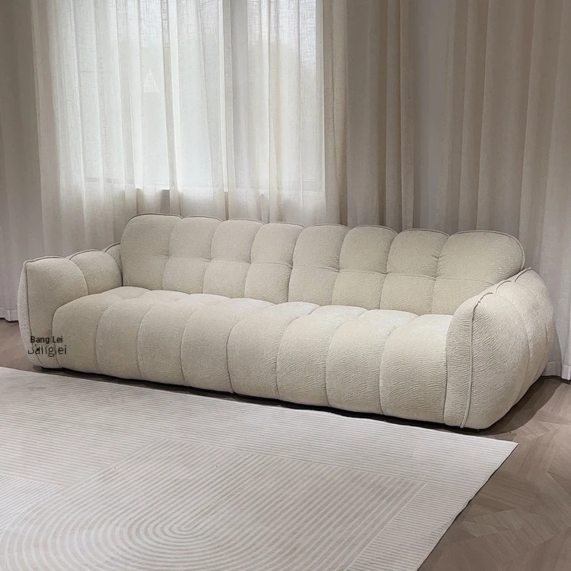 Banglei Original High-Back Pumpkin Sofa - French Vintage Style Cream Fabric for Living Room, Embracing Wabi-Sabi Aesthetics