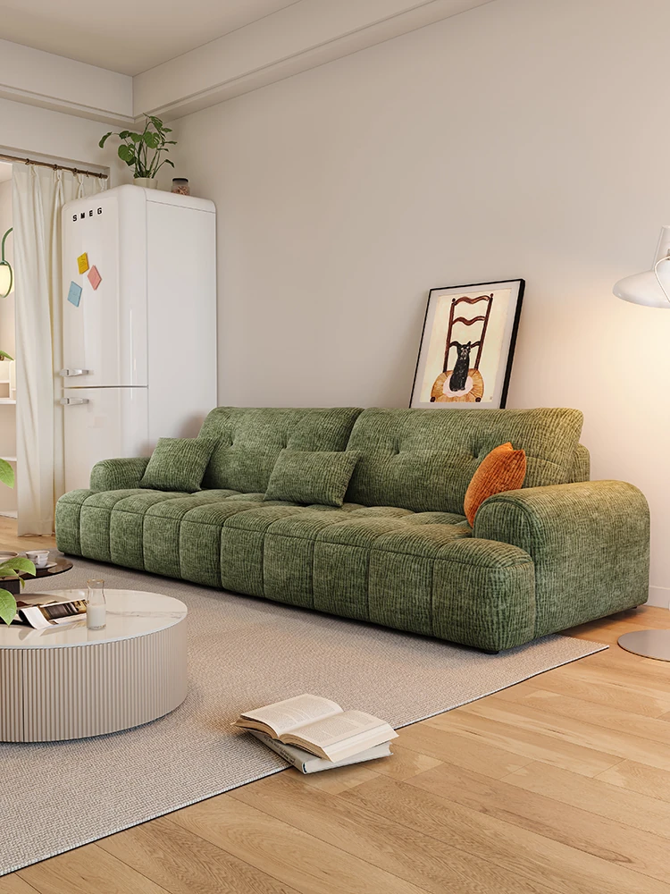 Chic Modern Chenille Sofa in Dark Green – French Cream Style, Minimalist High-End Design for Living Room, Perfect for Home Use with Plush Upholstery
