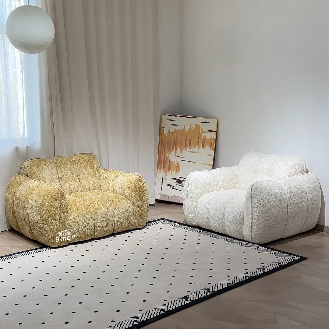 Banglei Original Authentic Pumpkin Sofa - French Vintage Cream Fabric Designer Chair for Bedroom and Living Room, Perfect for Trendy Spaces
