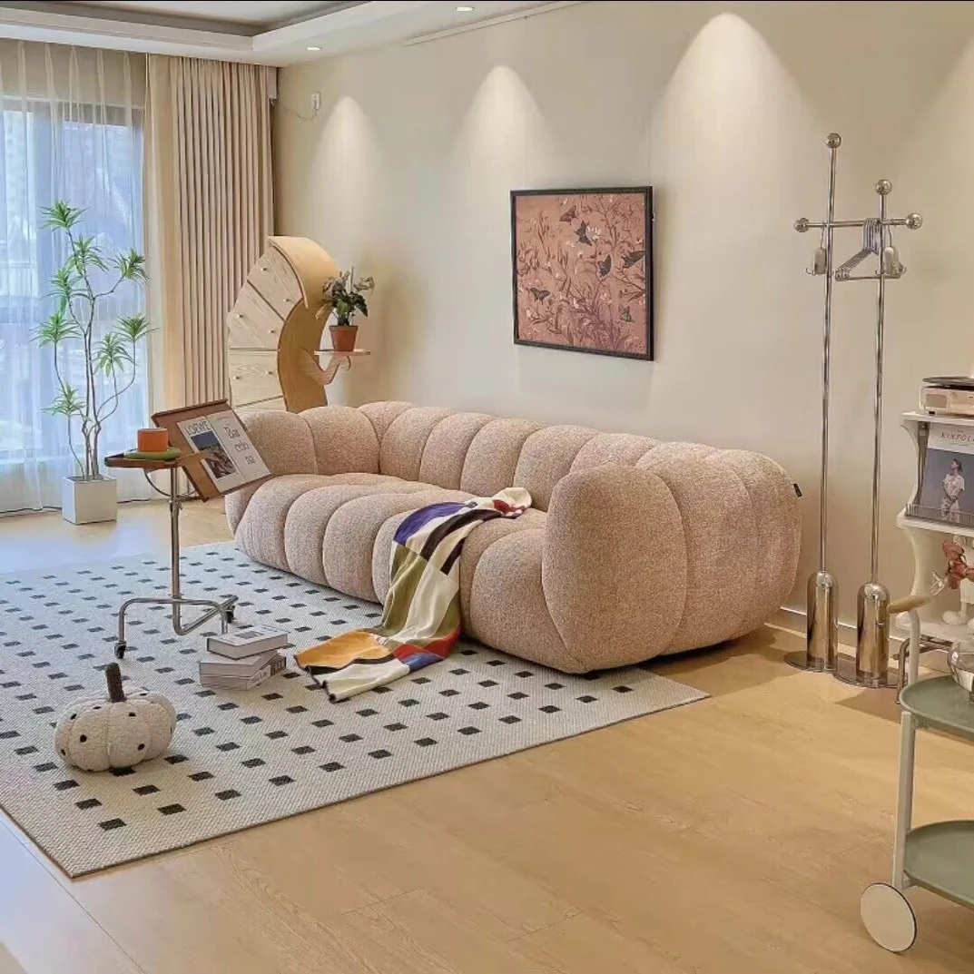 Nordic Cotton Candy Retro Small Space BOBA Sofa - Creamy Wabi-Sabi Style Lambswool Fabric for Cozy Living Rooms