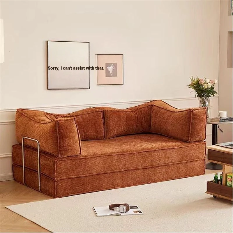 Pure Sponge Compressed Vintage Corduroy Sofa - Simple American Style Foldable Lazy Bed for Small Living Rooms