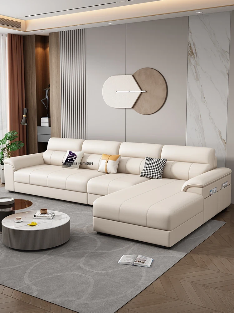 Stylish Minimalist Italian Nordic Genuine Leather Sofa - Elegant Chaise Lounge Corner Sofa Set for Living Room, Perfect for Small to Medium Spaces