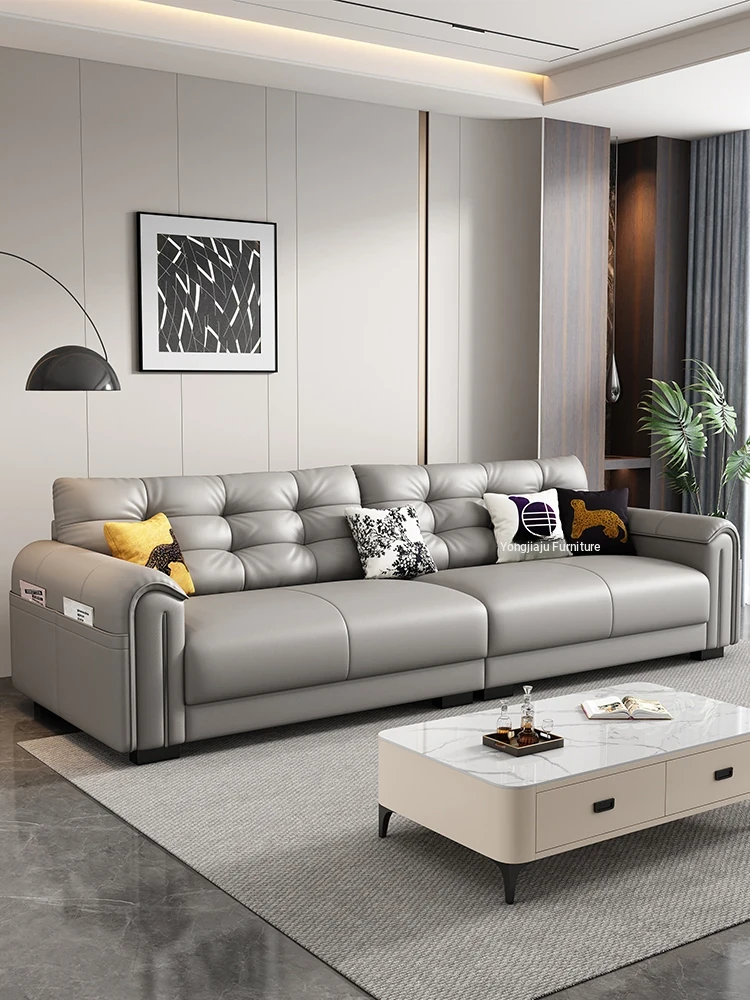 Nordic 2025 New Italian Modern Minimalist Luxury Genuine Leather Cat Scratch Sofa for Small to Large Living Rooms - Piano Key Design