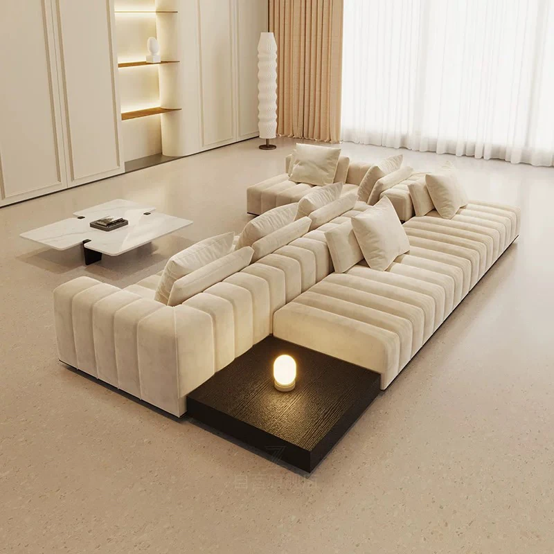 Modern Minimalist Cream Velvet Luxury Sofa with Technology Fabric - Stylish Corner Chaise Lounge and Straight Sectional Design with Latex Support for Your Living Room