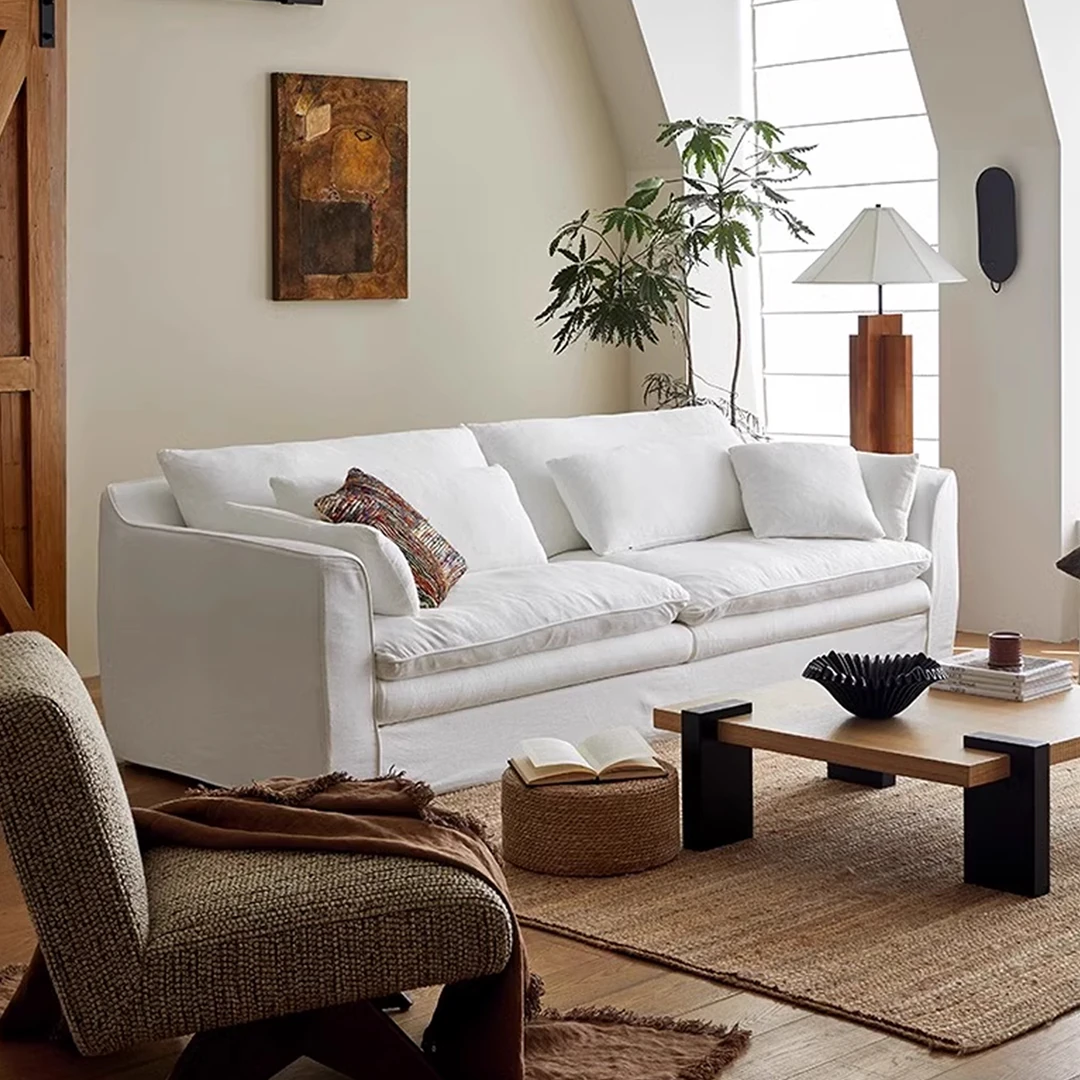 BANG LEI Embrace Sofa - Wabi-Sabi French Cream Style, Removable and Washable Cotton-Linen Fabric for Stylish Living Rooms