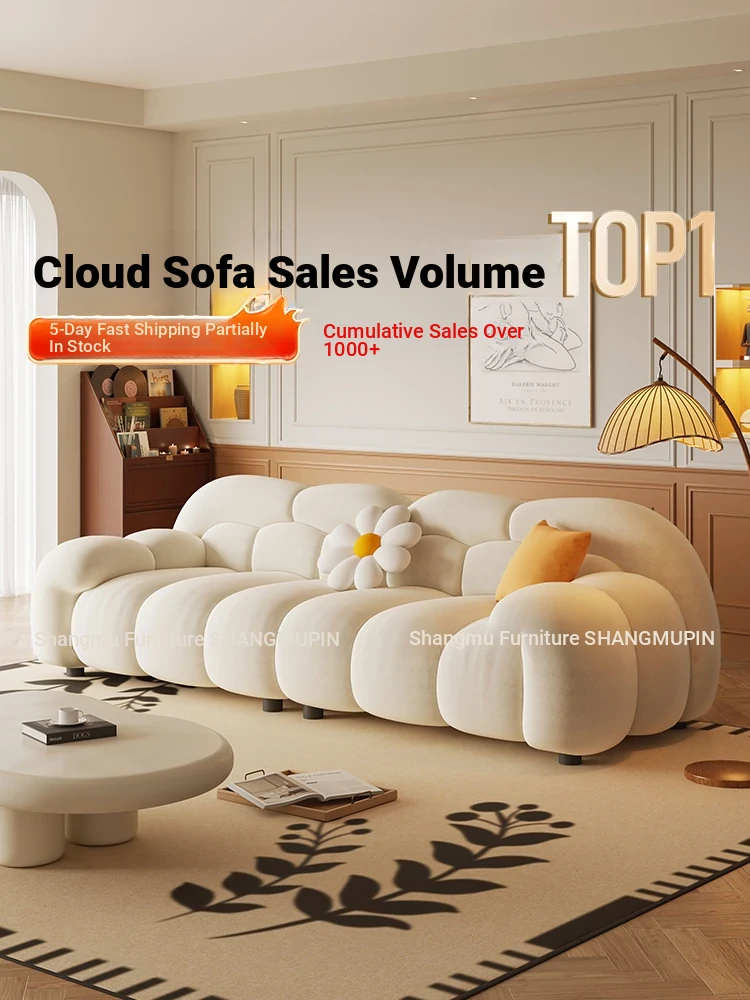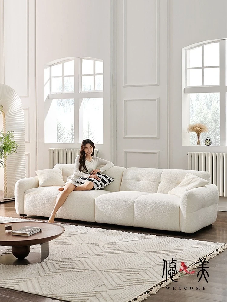 French Cream-Style Modern Minimalist Cloud Sofa - Cozy Lamb Fleece Fabric for Small Spaces, Perfect for Contemporary Living Rooms