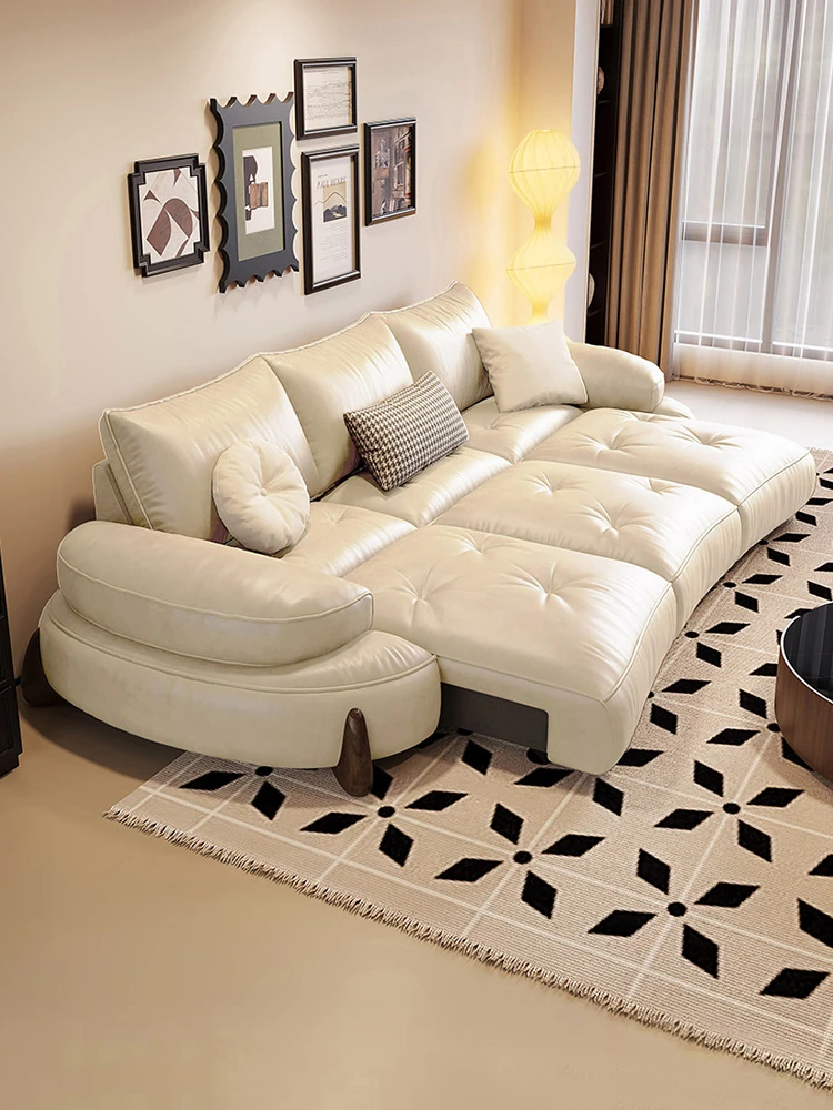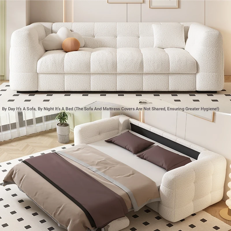 2025 New French Style Foldable Sofa Bed – Multifunctional Cream-Colored Sofa Bed for Small Living Rooms, Perfect for Space-Saving and Versatile Comfort