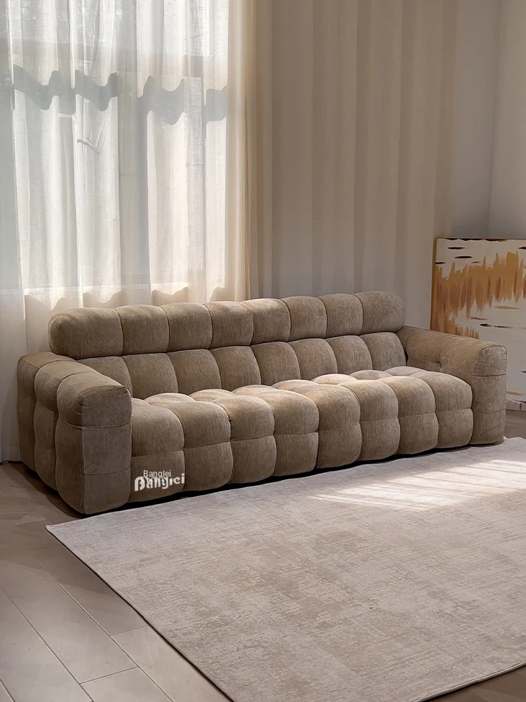 Modern Minimalist Cream Wind Sofa for Small Nordic Living Rooms - French Style Wooden Bubble Ball Teddy Plush Fabric Sofa