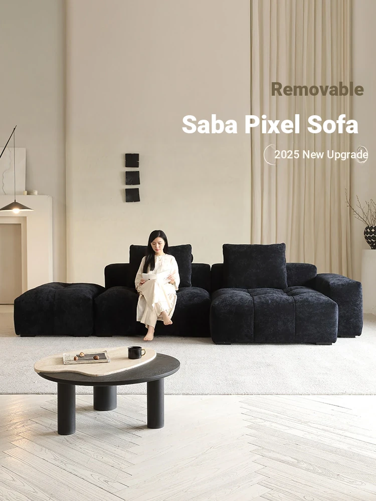 Modern Black Chenille Pixel Sofa - Removable and Washable Fabric Corner Sectional for a Stylish Living Room