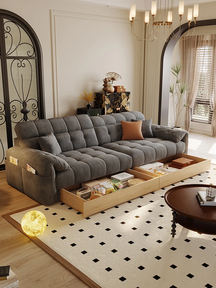 2025 New Vintage Style Solid Wood Sofa for Small Living Rooms - Elephant Ear Design with Storage Drawers, Stylish Fabric Sofa for Efficient Space Utilization