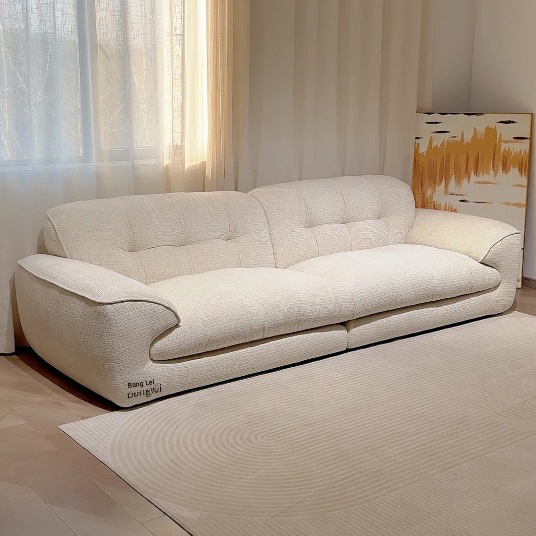 Bang Lei French Vintage Fabric Retro Cream Minimalist High-Back Sofa for Living Room - Wabi-Sabi Style with Cozy Cotton Candy Comfort