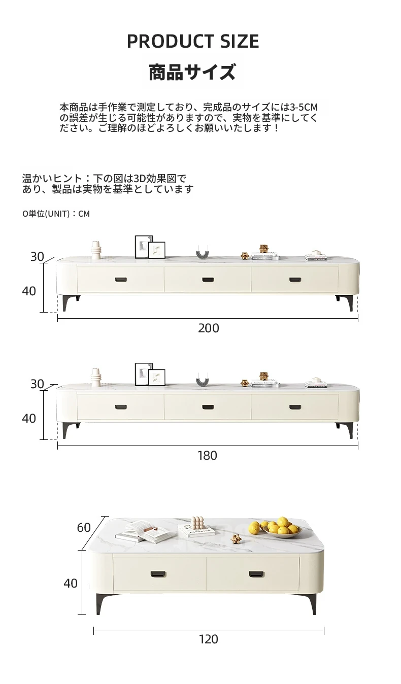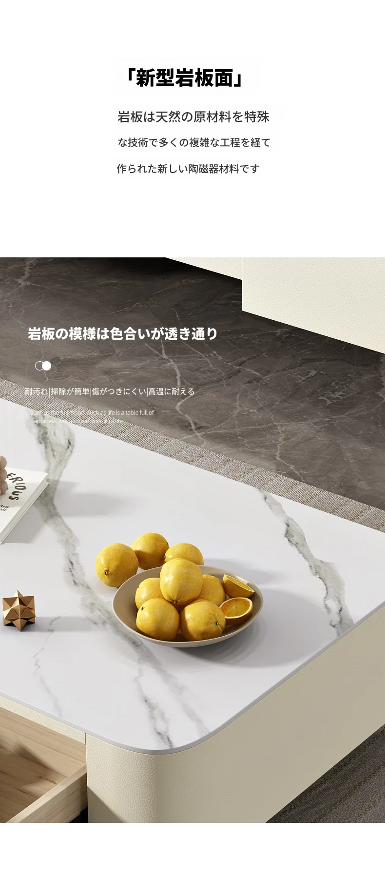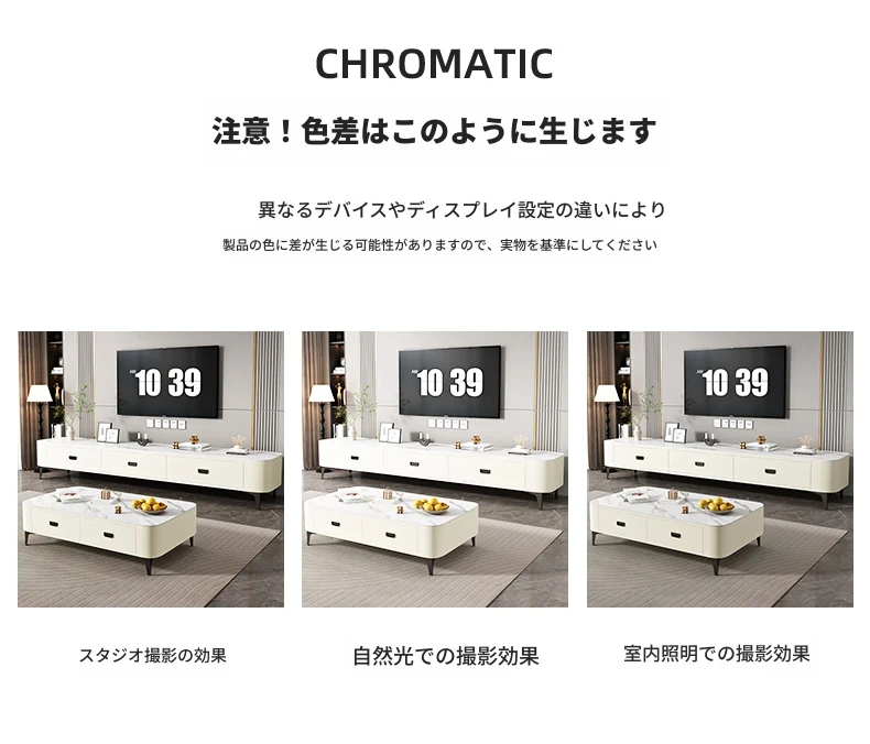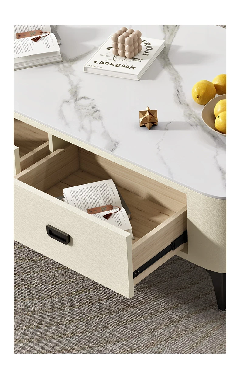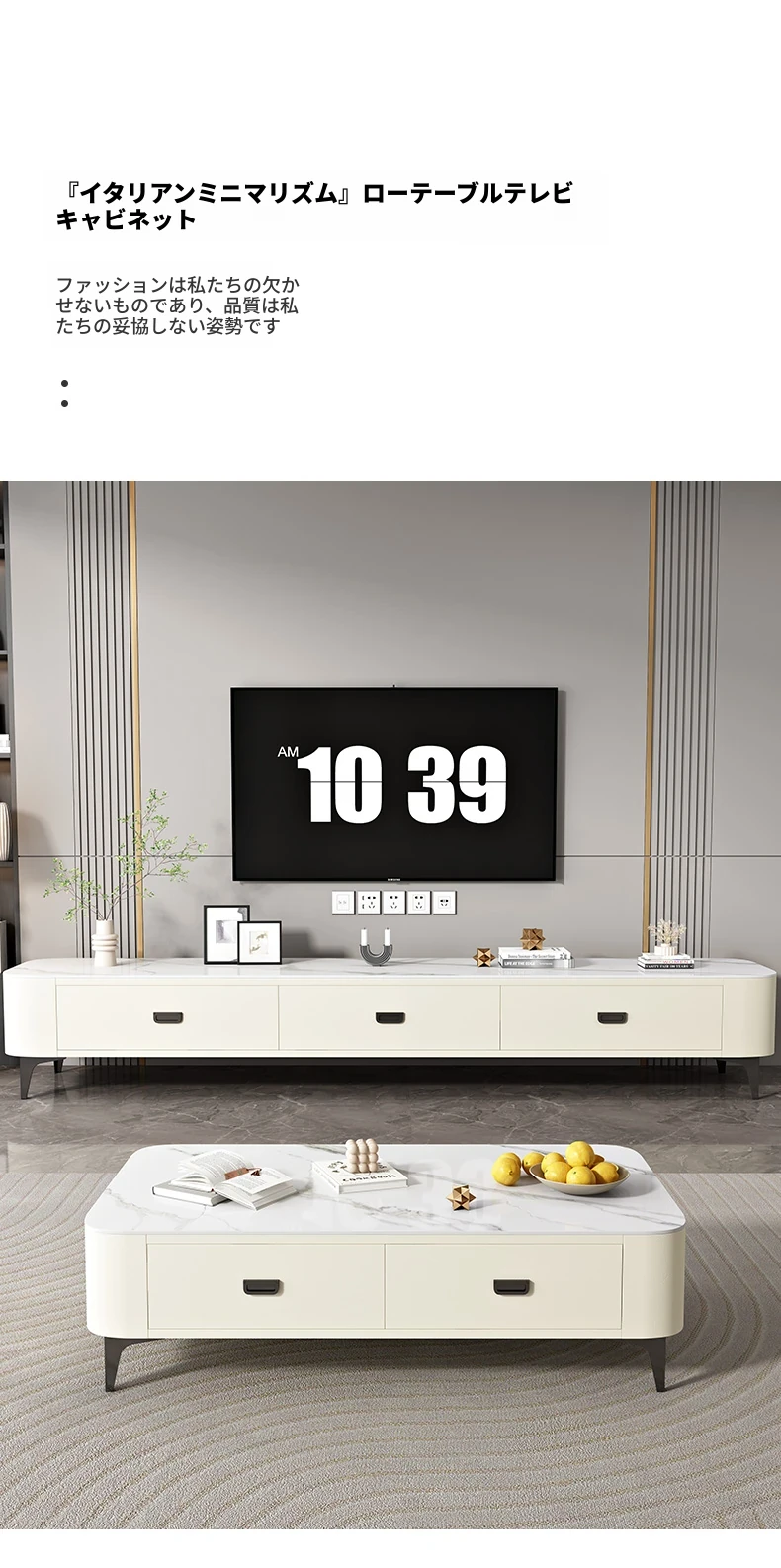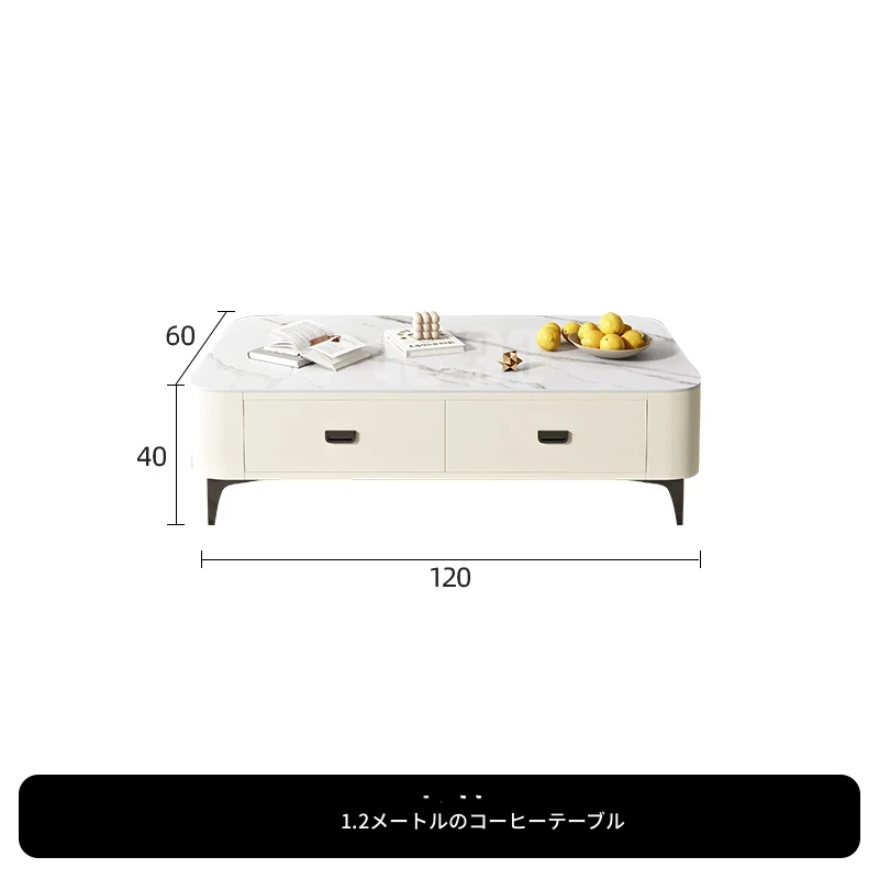 ミニマルでラグジュアリーな2024年新作!キャットスクラッチ対応の岩板製コーヒーテーブル兼TVキャビネット。小さなリビングやおしゃれな空間にぴったりなクリーム風デザイン!