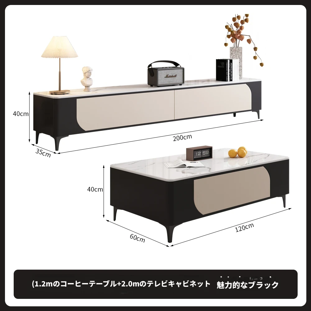 1.2メートルのコーヒーテーブル+2.0メートルのテレビキャビネット(魅力的な黒)