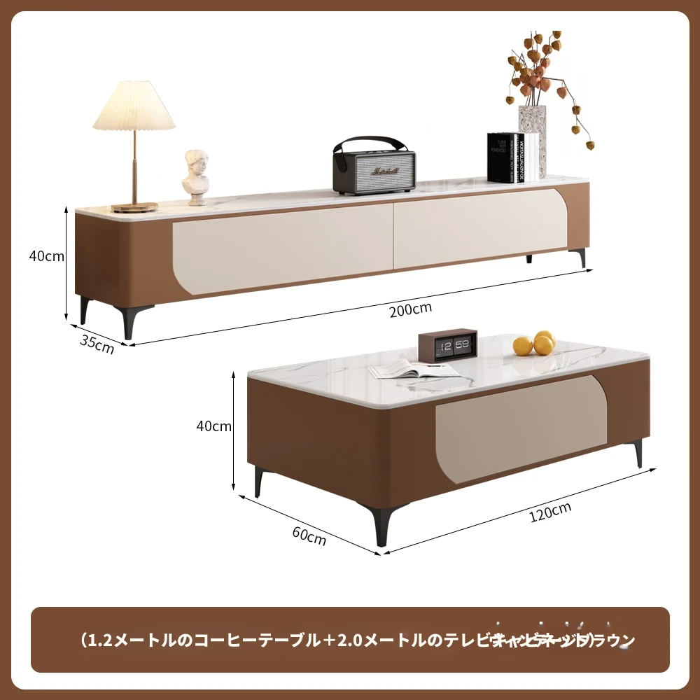 1.2メートルのコーヒーテーブル+2.0メートルのテレビキャビネット(レトロブラウン)