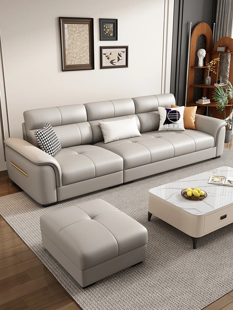 2025年新作!本革製ミニマリストデザインのモダンソファ - 小型住宅に最適なエレガントな貴妃スタイル、3〜4人用のイタリアンシンプル直線ソファ!快適さとスタイルを兼ね備えた一品です。