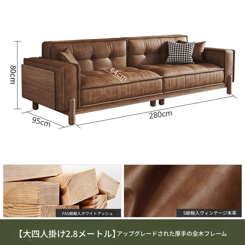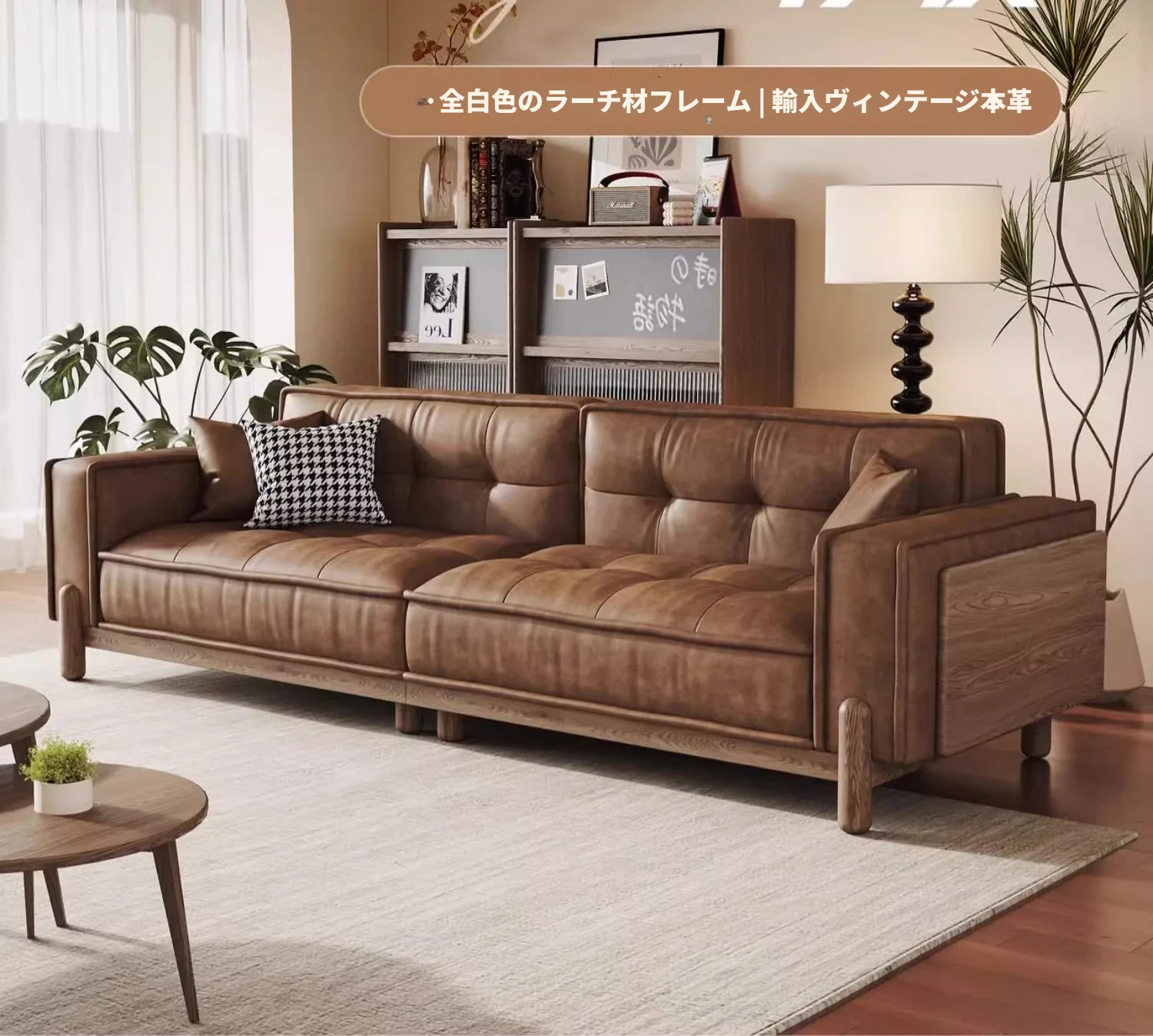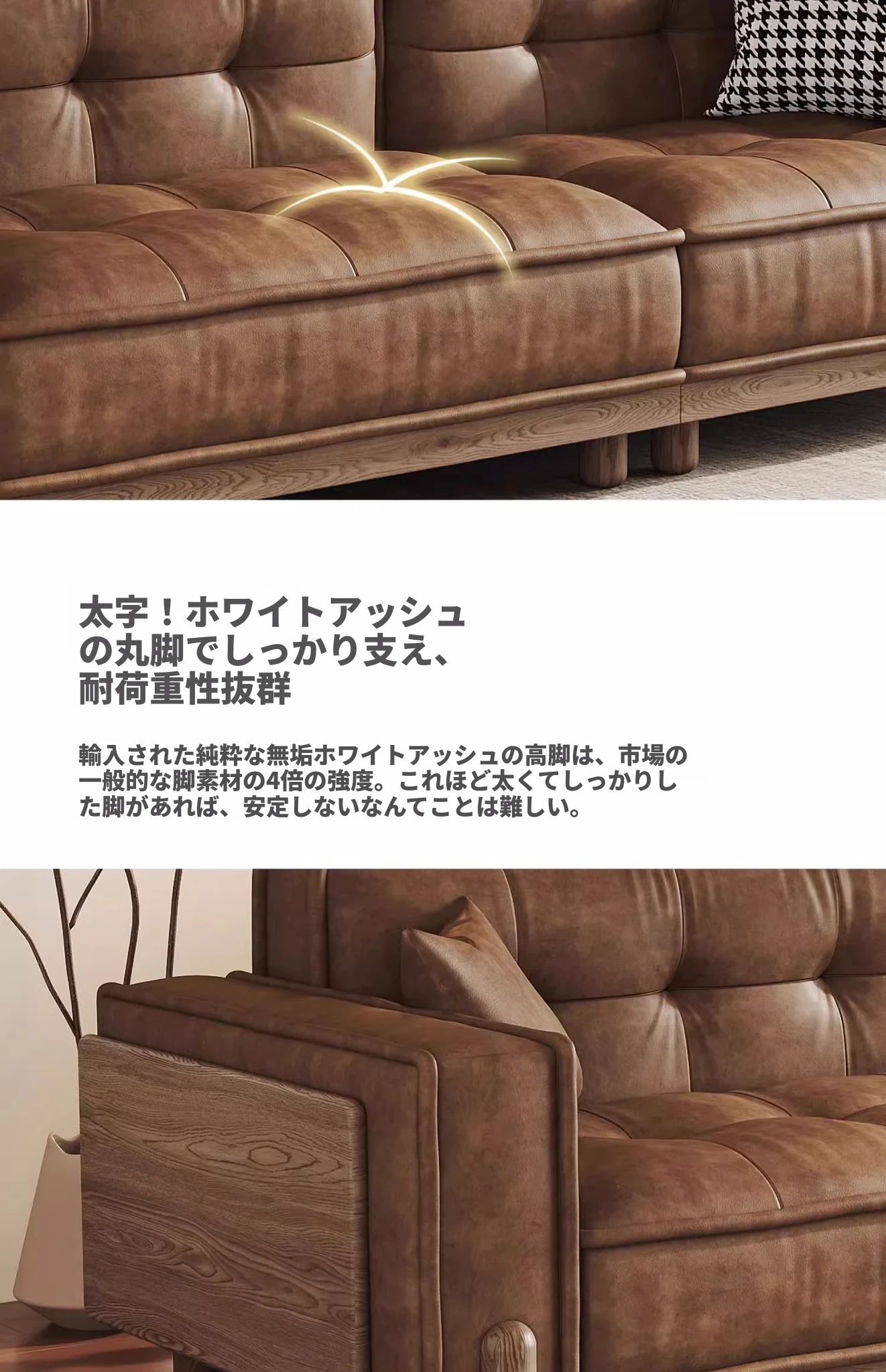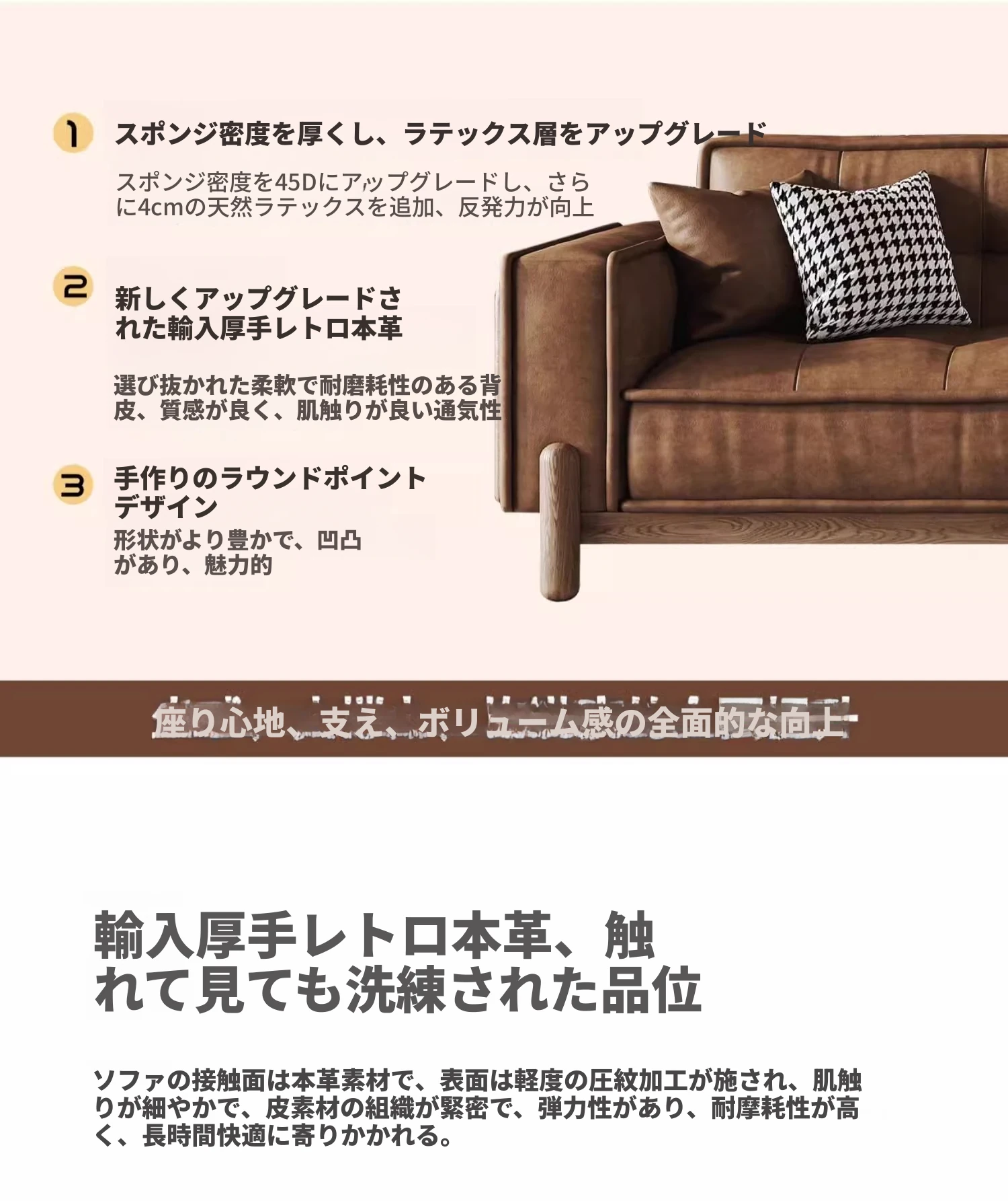 2025年新作!フレンチアンティークスタイルの本革ソファ。高品質な一級牛皮使用、小型リビングに最適なウォールナット無垢材の直排デザイン。上品な雰囲気を演出し、居心地の良い空間を提供します!