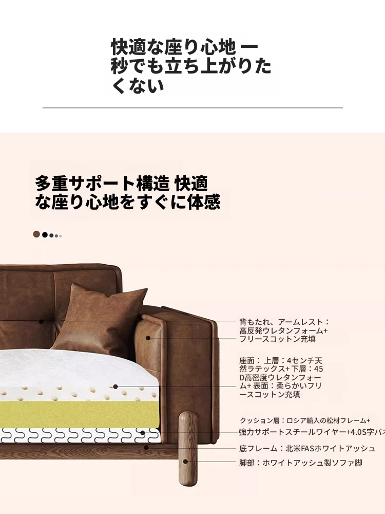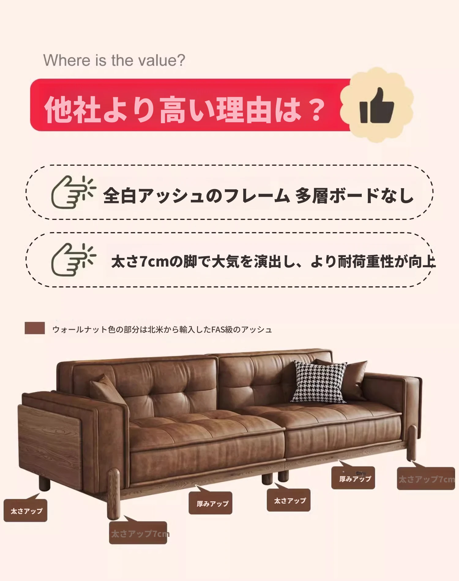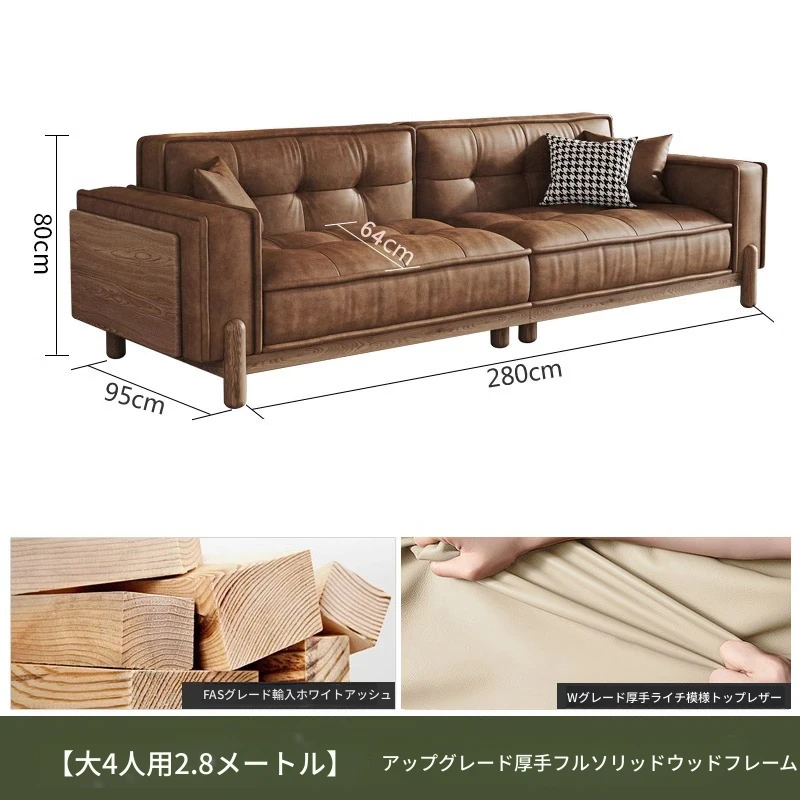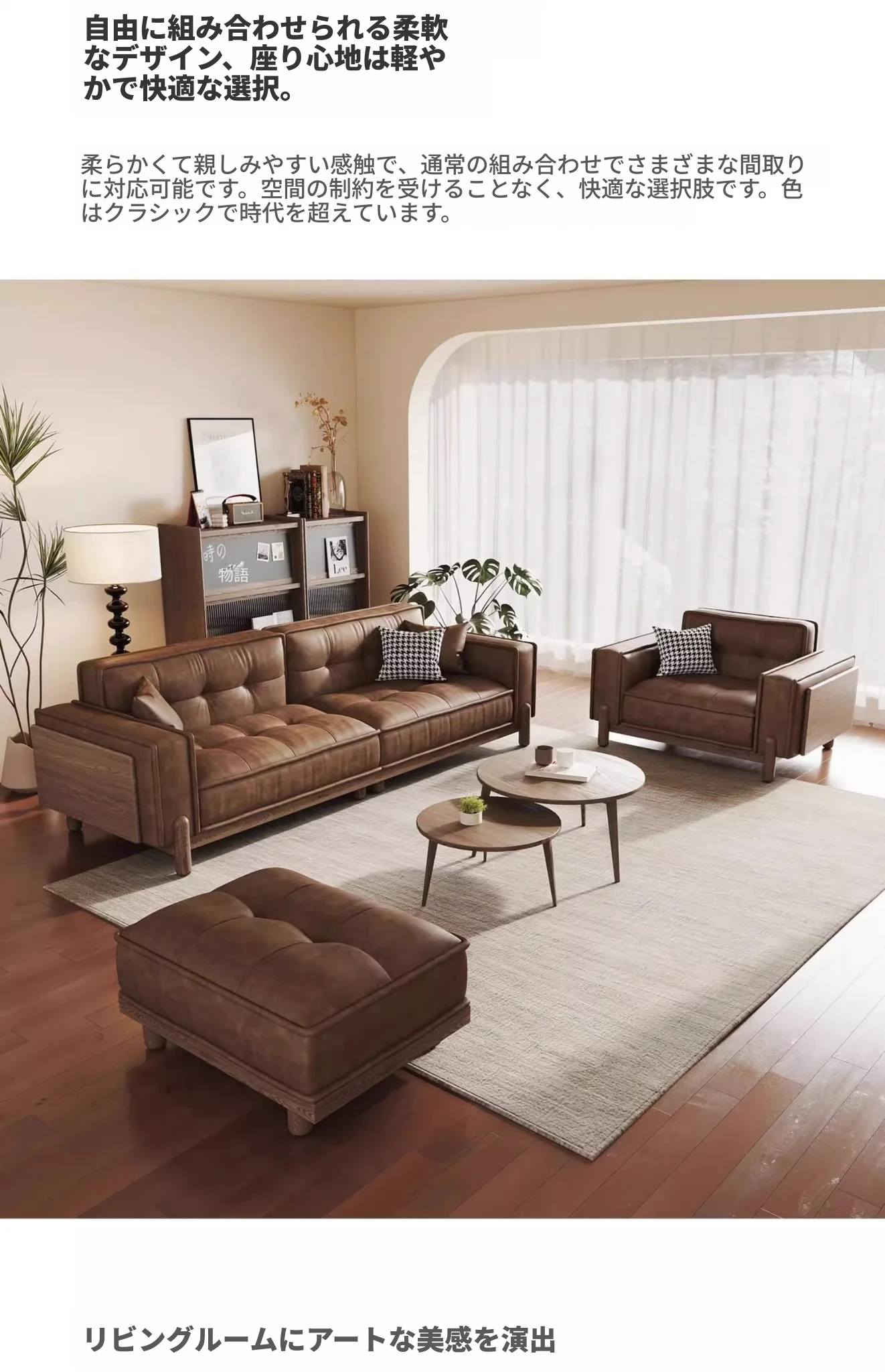 2025年新作!フレンチアンティークスタイルの本革ソファ。高品質な一級牛皮使用、小型リビングに最適なウォールナット無垢材の直排デザイン。上品な雰囲気を演出し、居心地の良い空間を提供します!