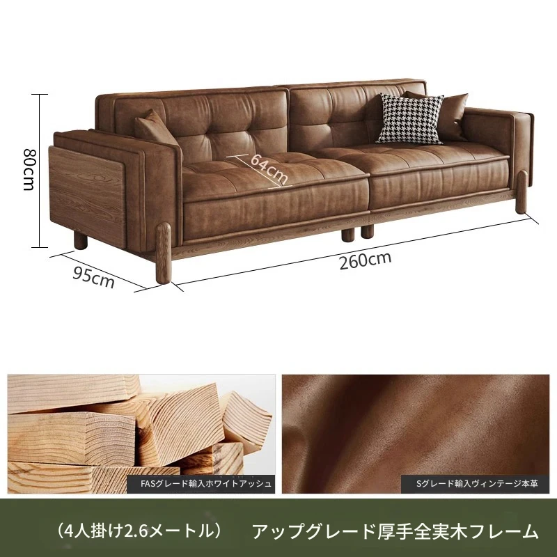 【レトロ風質感専用皮】2.6mクワッド分割【接触面本革】【保証20年】
