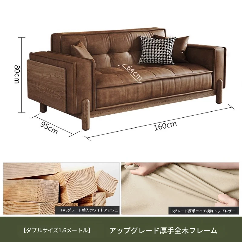 【レトロ風質感専用皮】1.6mダブル【接触面本革】【保証20年】