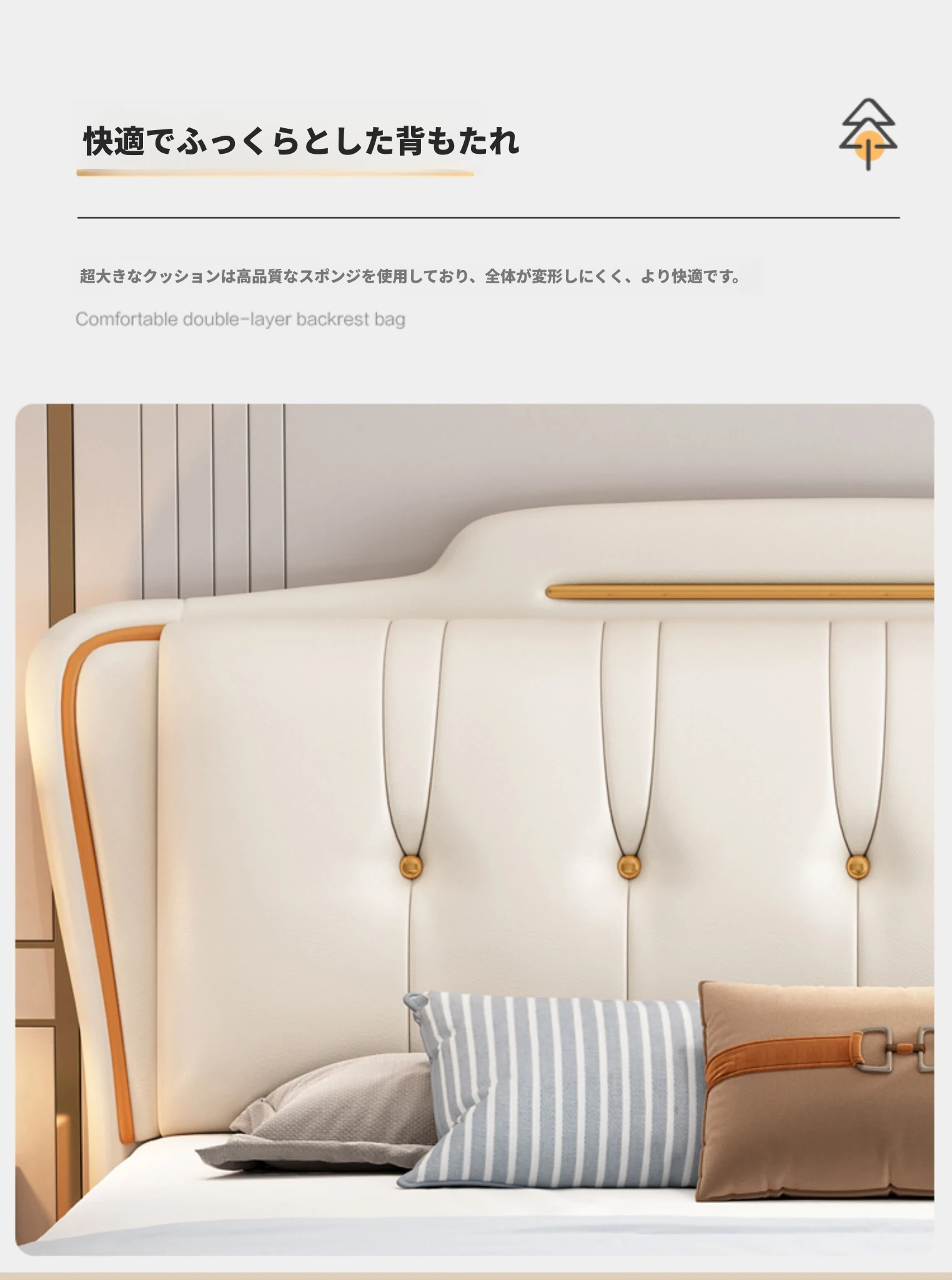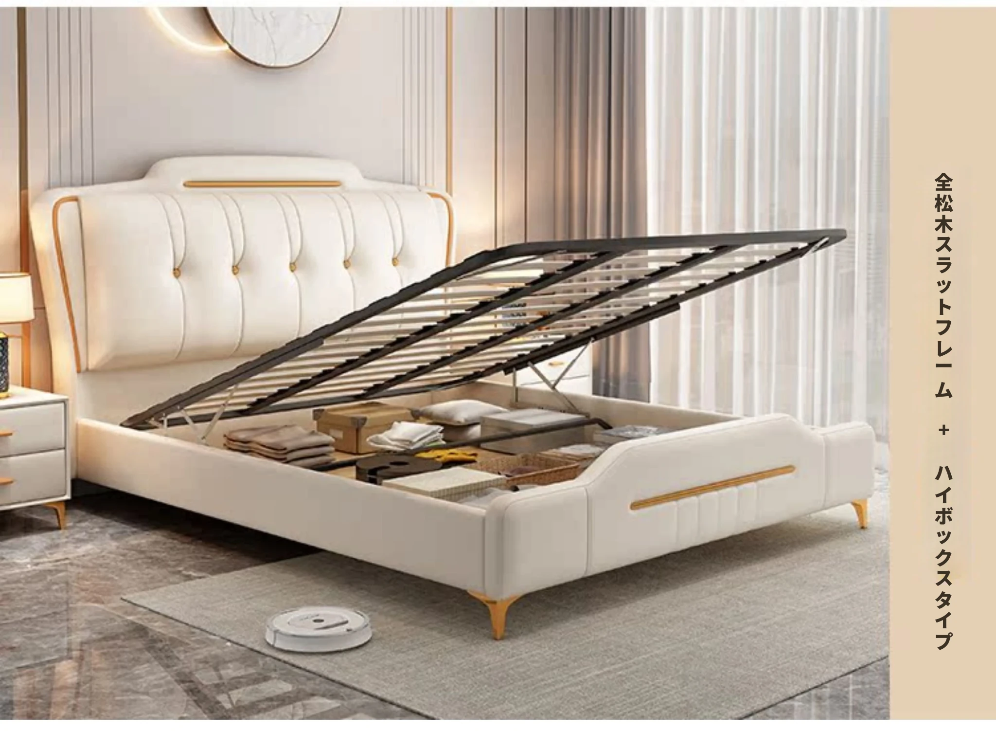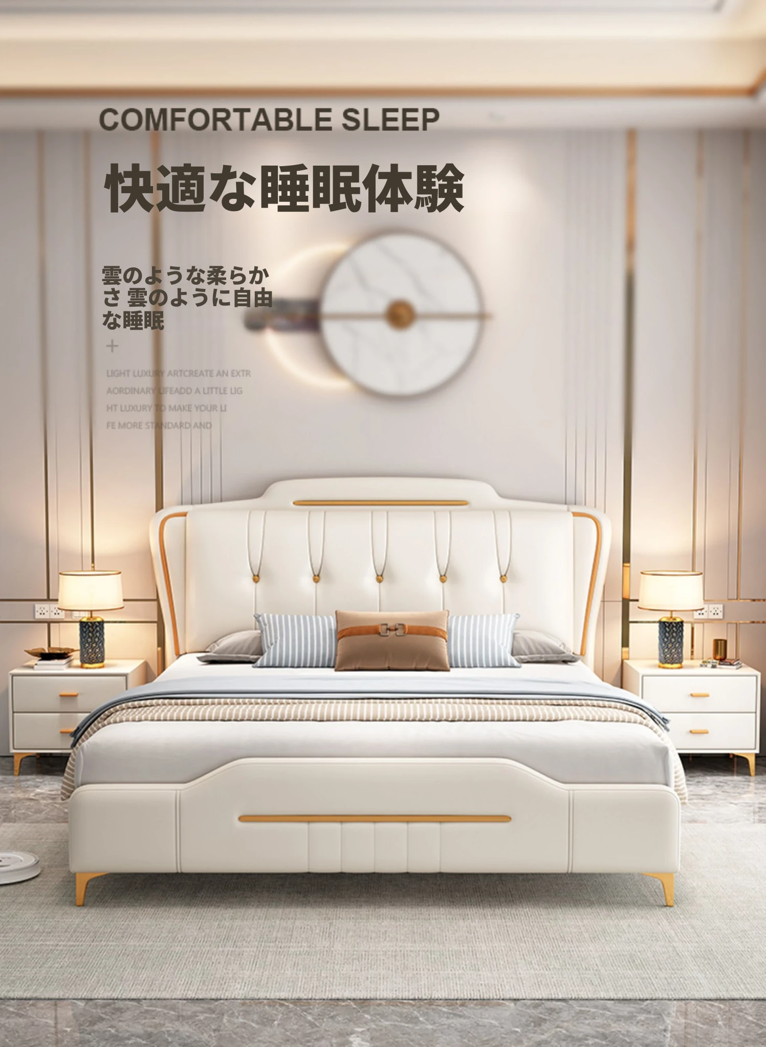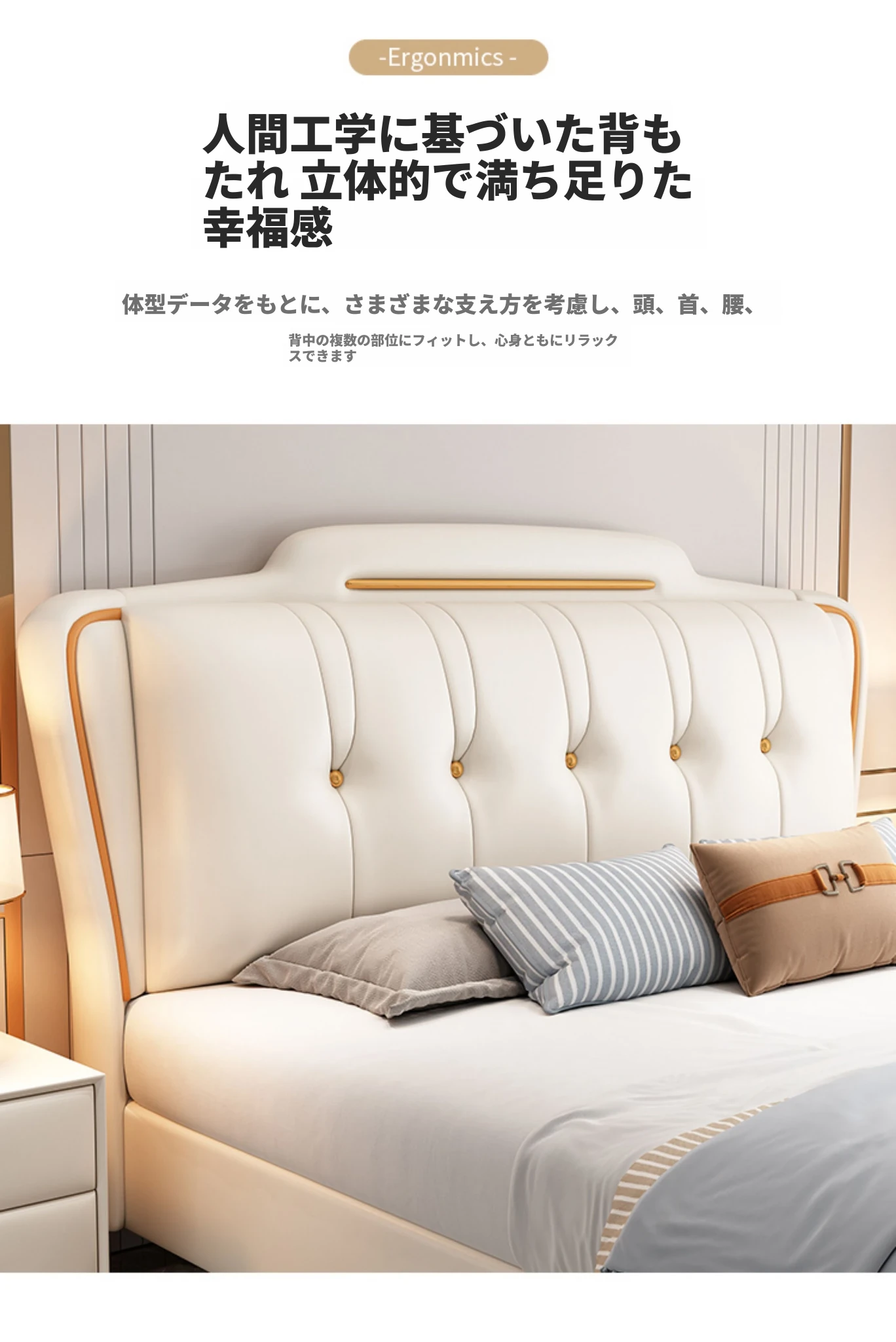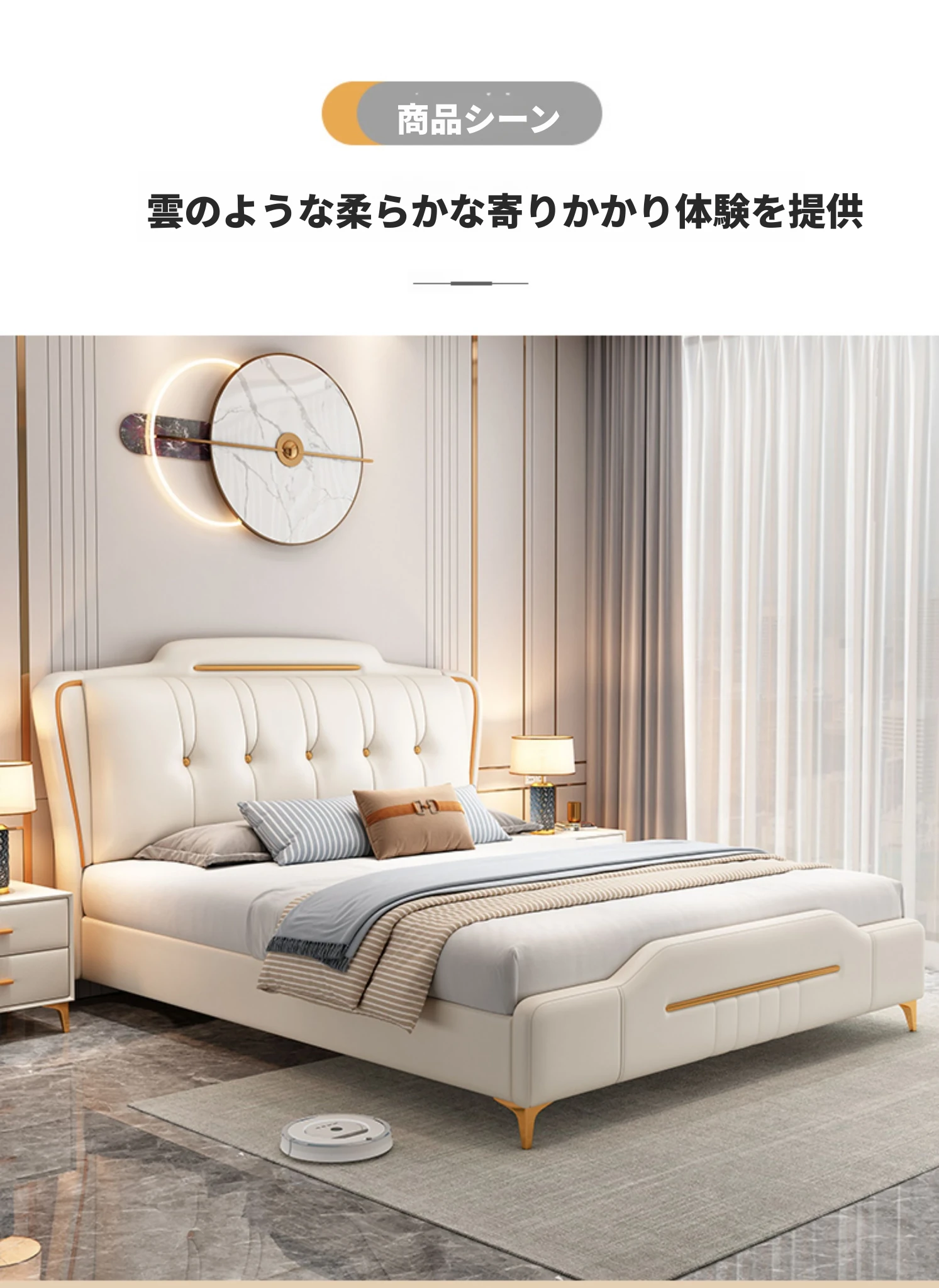 2025年新作 北欧風 シンプルなイタリアンデザイン 高級感あふれる1.8m ベッド 主寝室用 ストレージ付き 本革使用 結婚用 大型ベッドで快適な睡眠を実現!