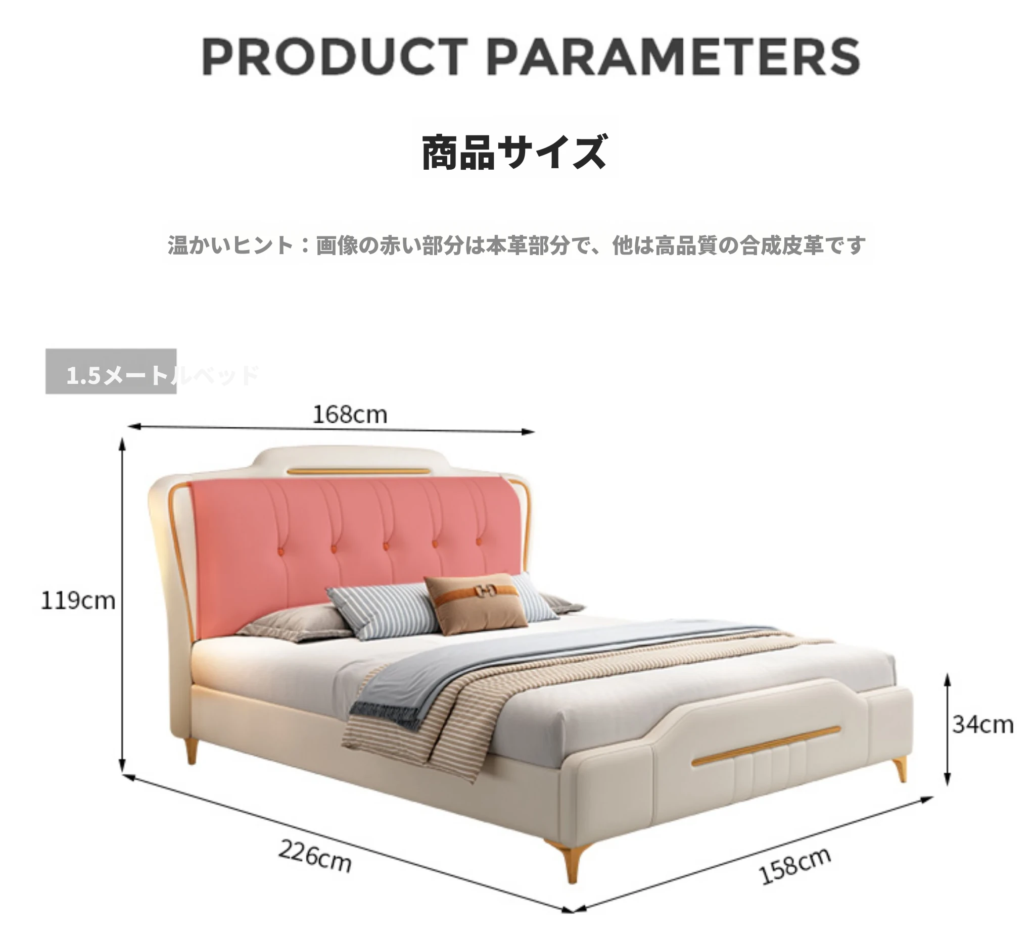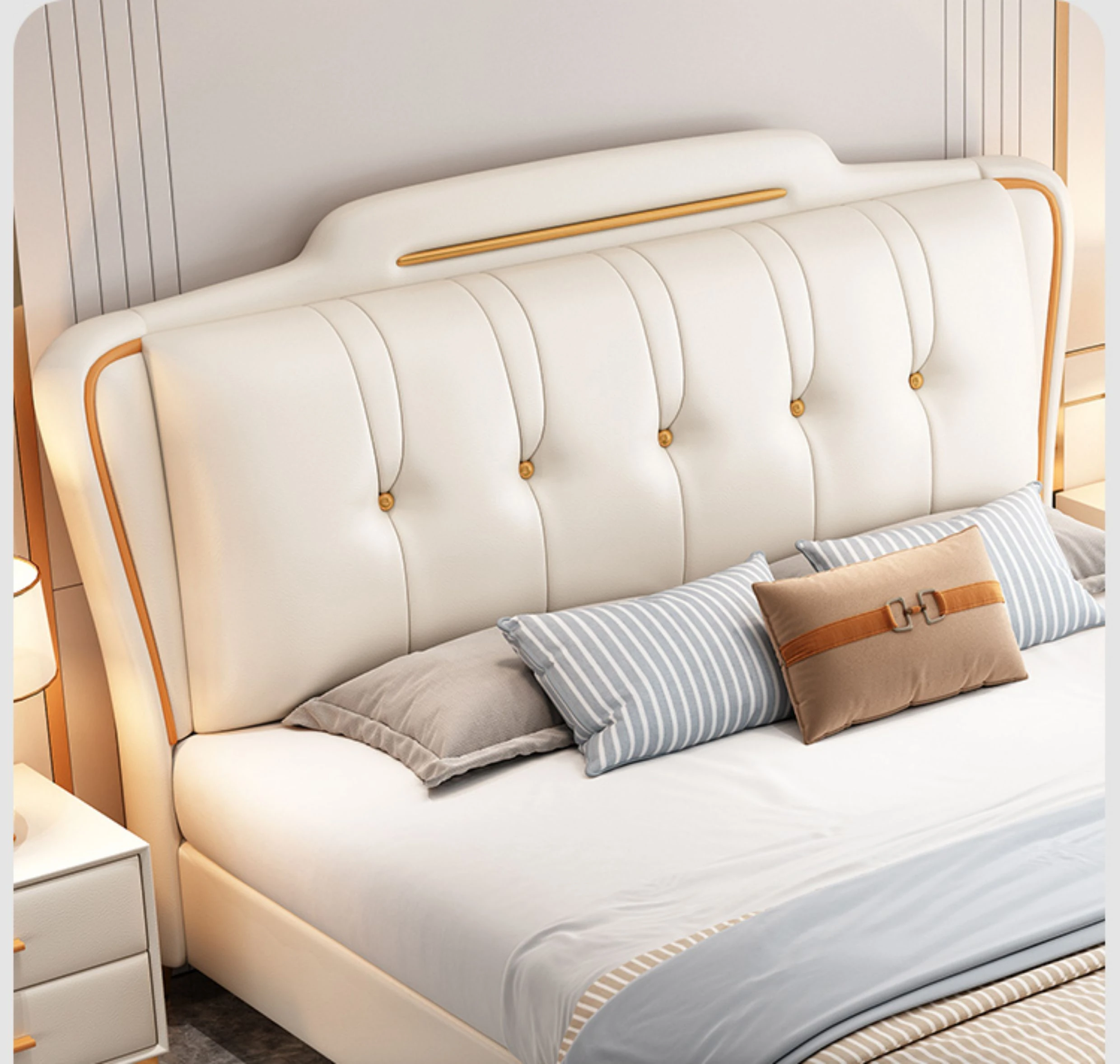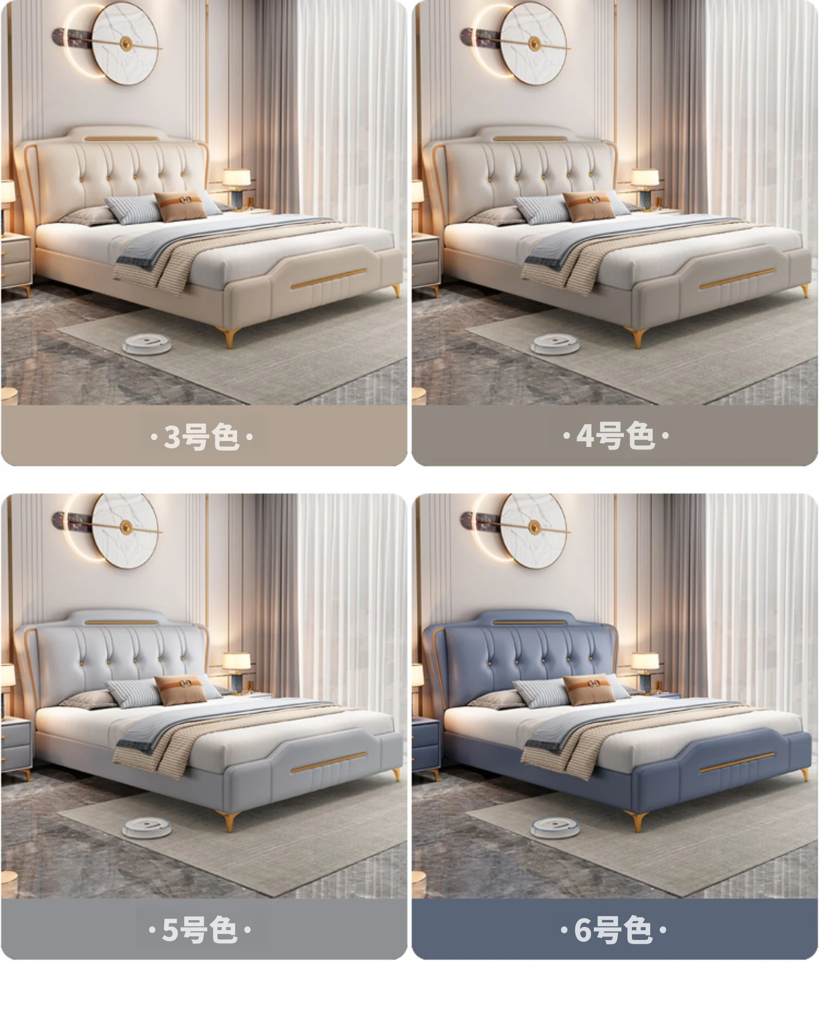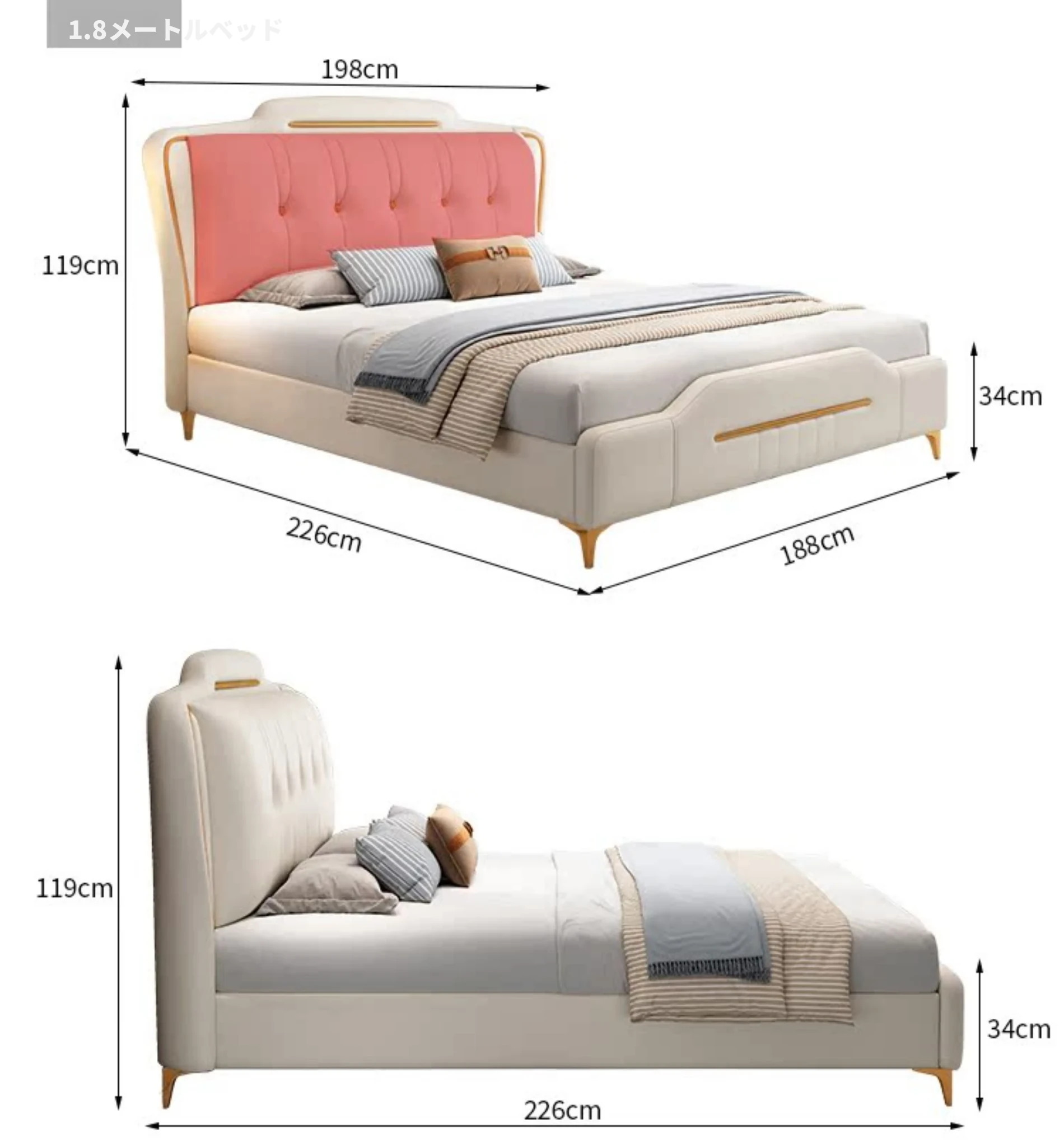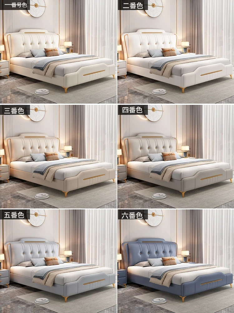 2025年新作 北欧風 シンプルなイタリアンデザイン 高級感あふれる1.8m ベッド 主寝室用 ストレージ付き 本革使用 結婚用 大型ベッドで快適な睡眠を実現!