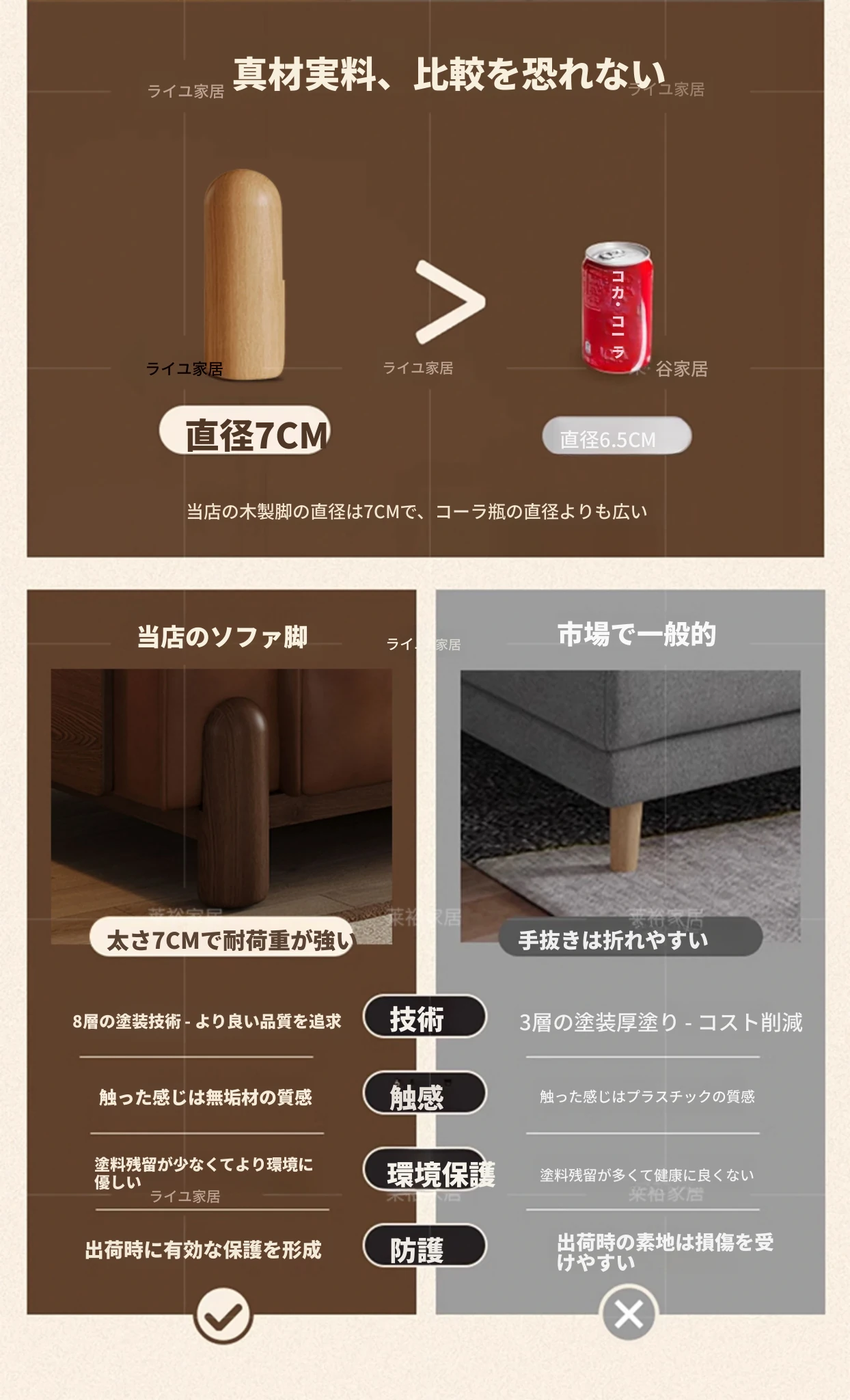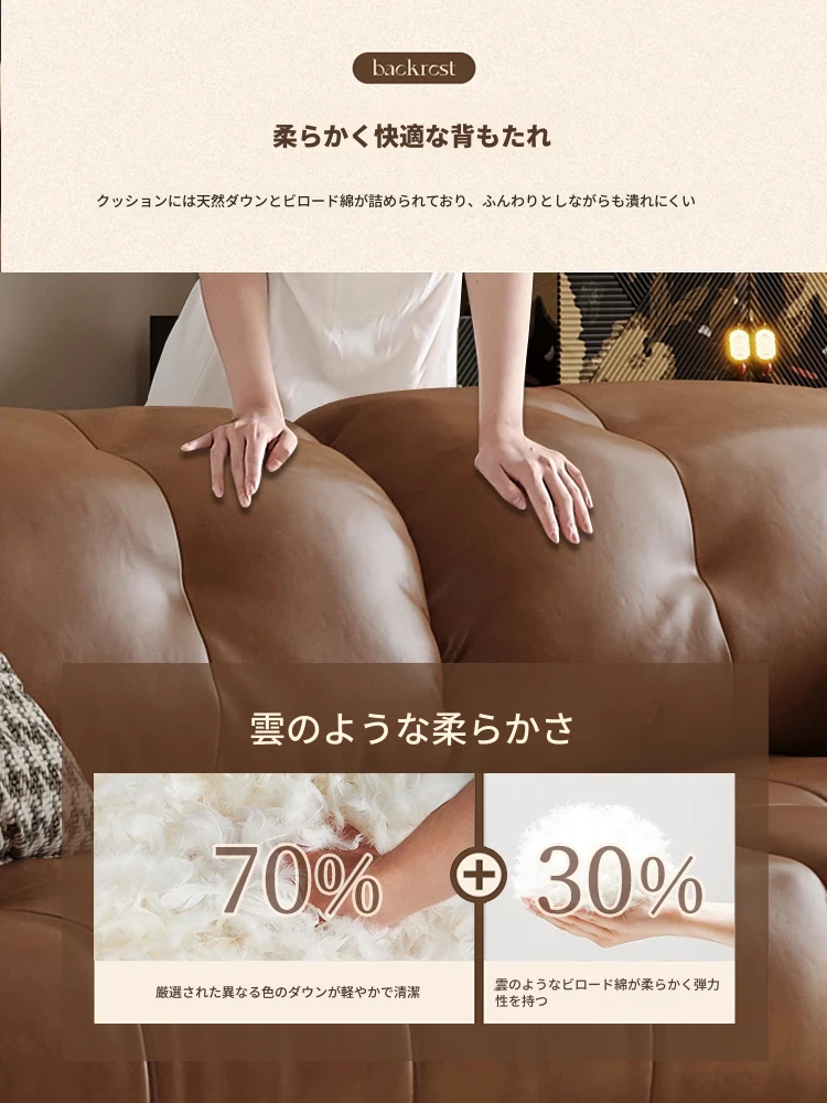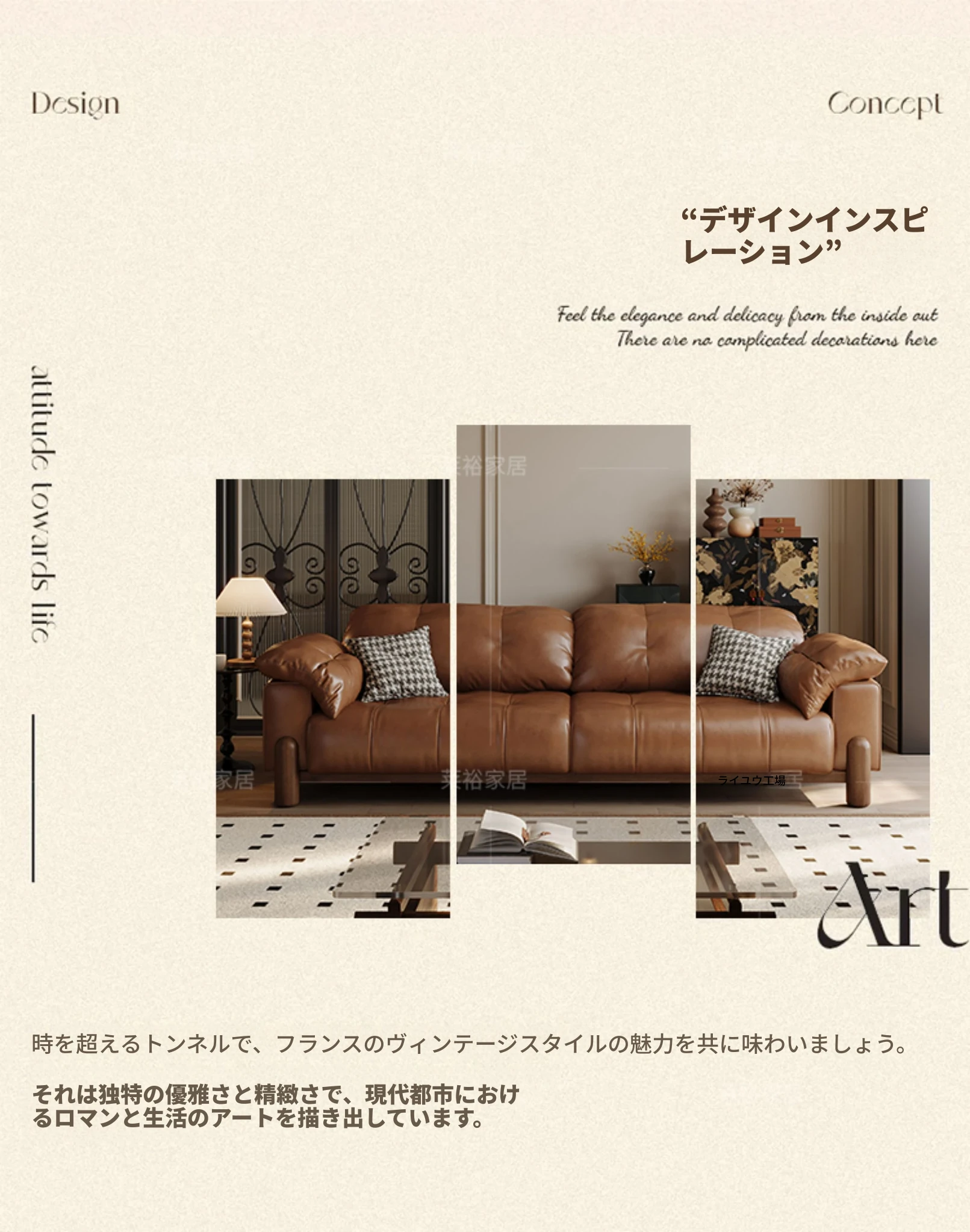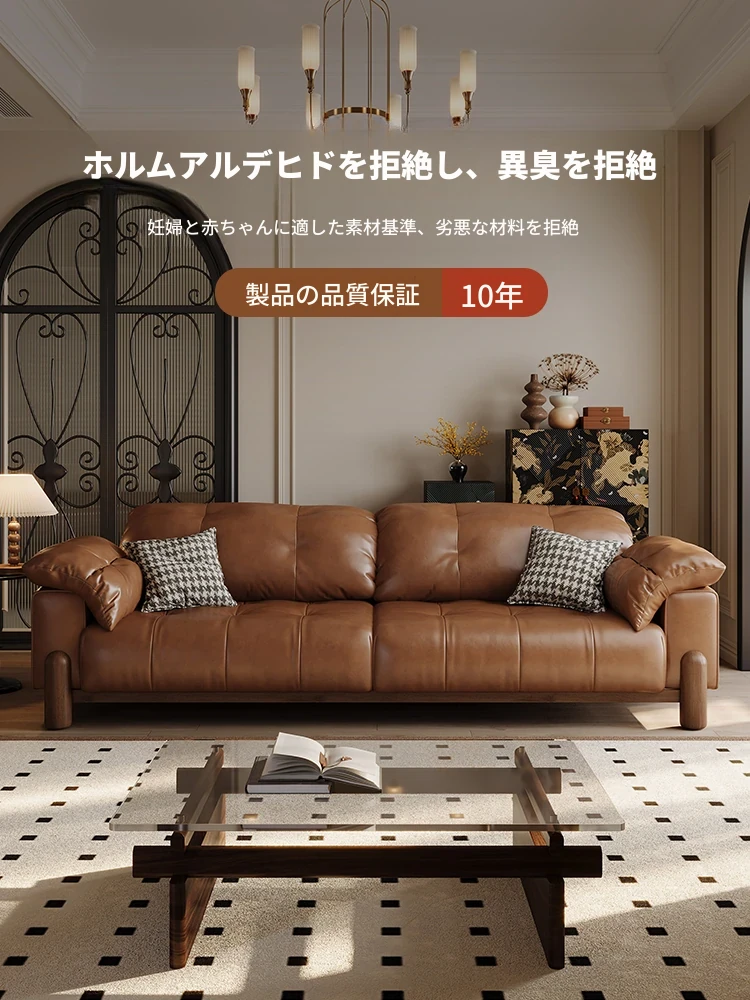2025年新作!フレンチビンテージ風のウォールナットソファ - 中小型リビングにぴったりなクラウドソファ、3人掛けのストレートデザインで、居心地抜群のスタイルをお届けします。