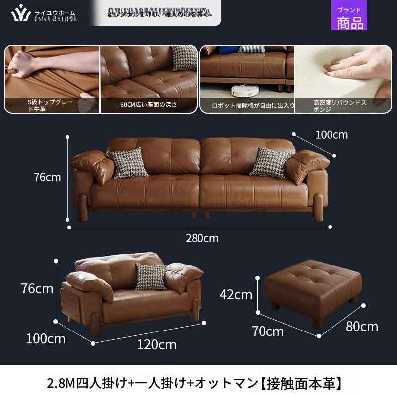 2.8m四人用+単人用+フットスツール【接触面本革】