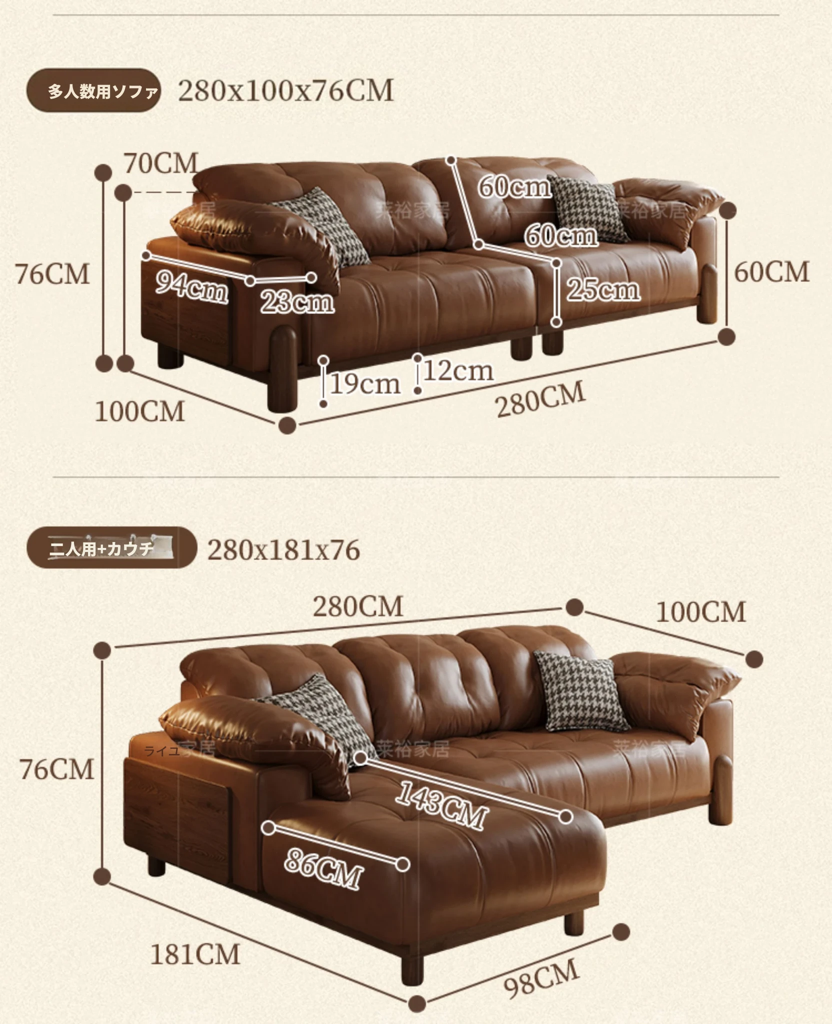 2.8m四人用+貴妃+フットスツール【接触面本革】