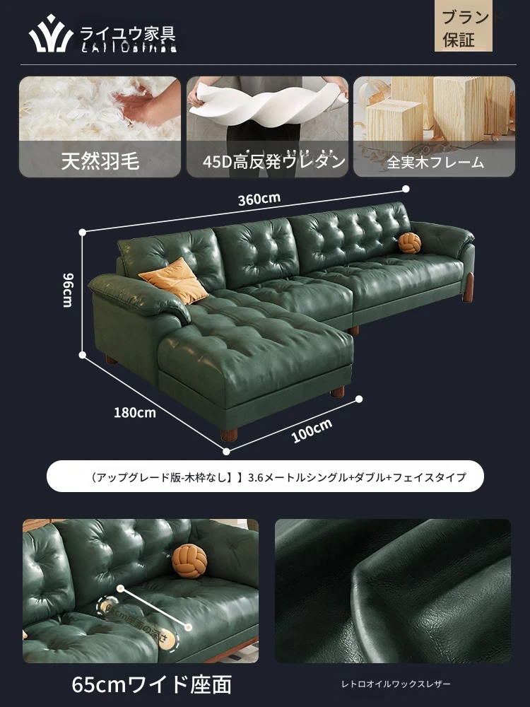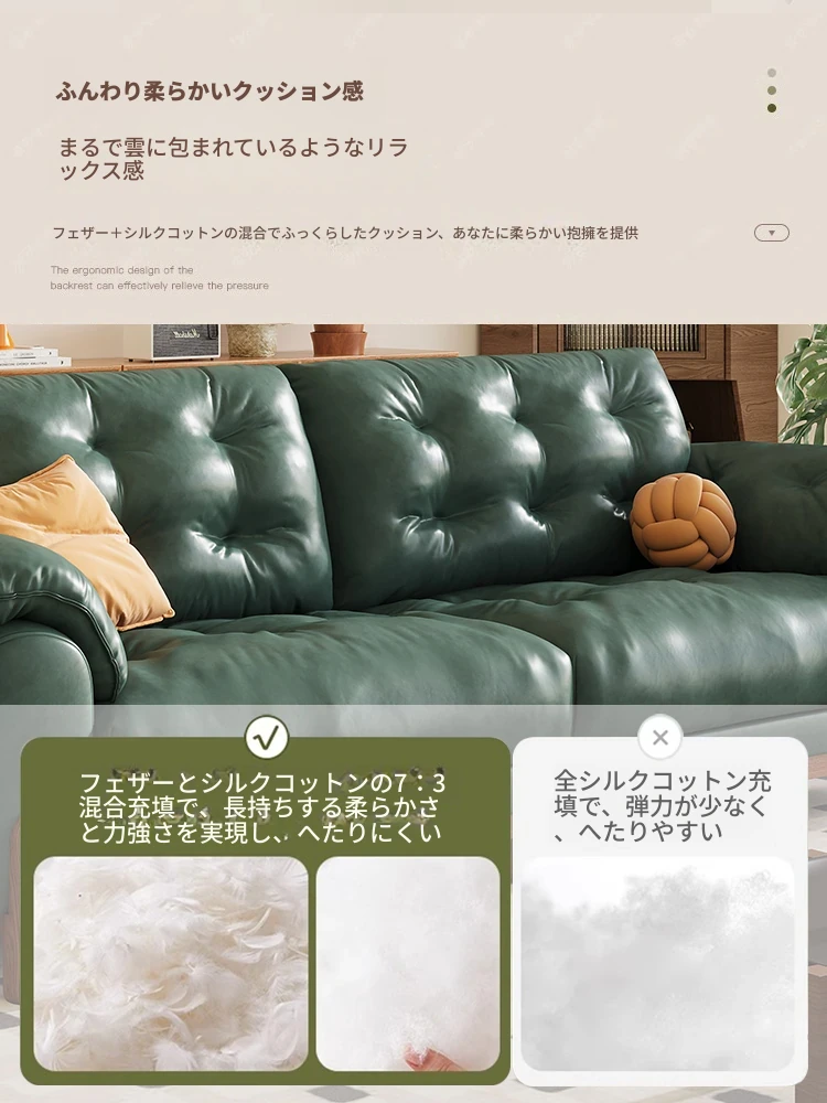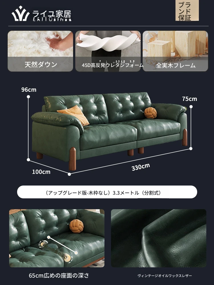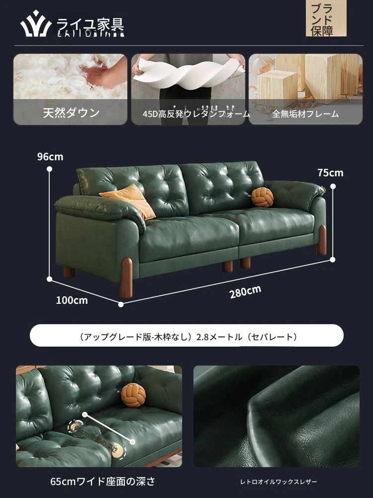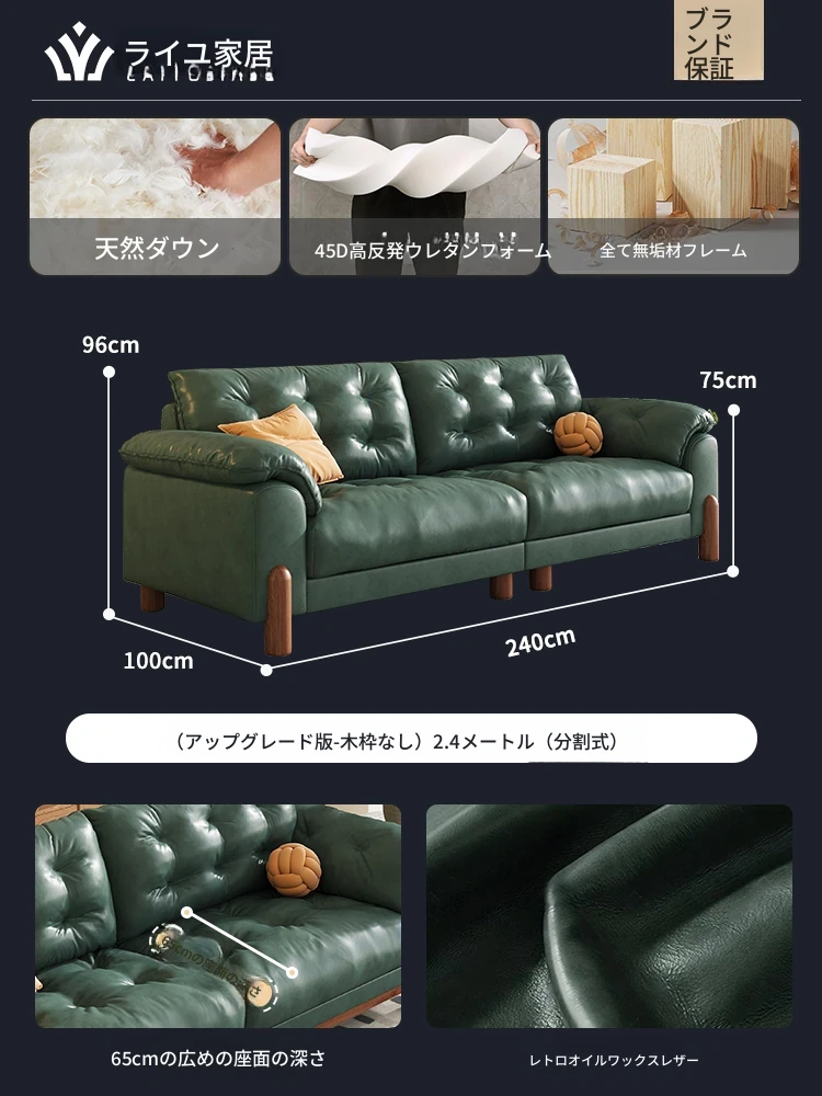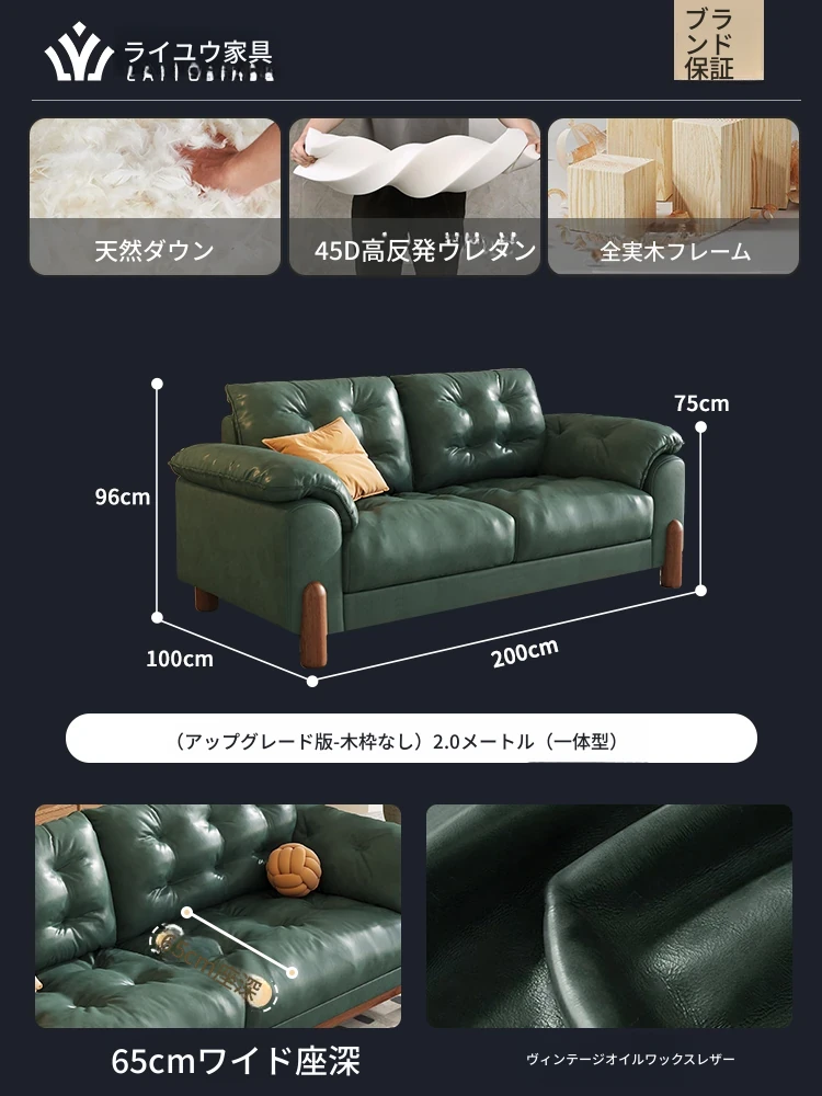 2025年新作!レトロな雰囲気の本革ソファ - 中古風リビング用、3人掛けの雲のような柔らかさ。オイルワックス仕上げで高級感溢れる、快適な座り心地をお楽しみください!