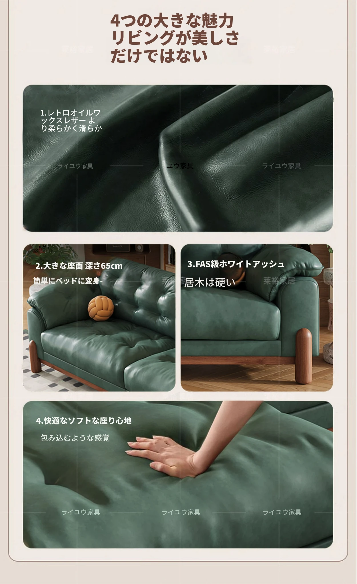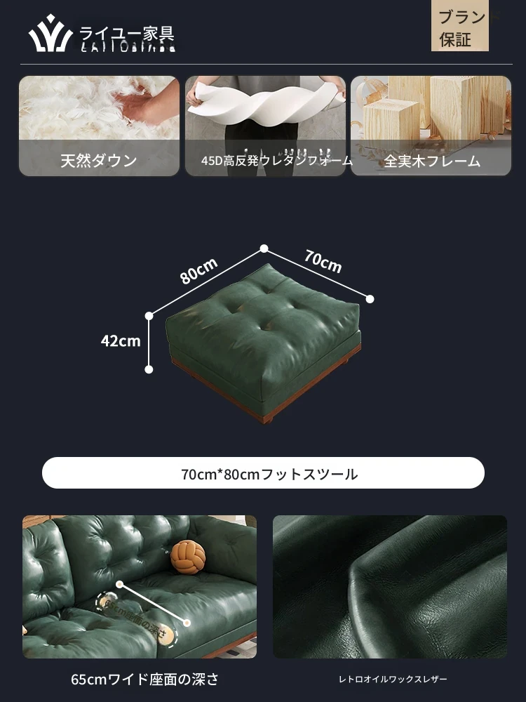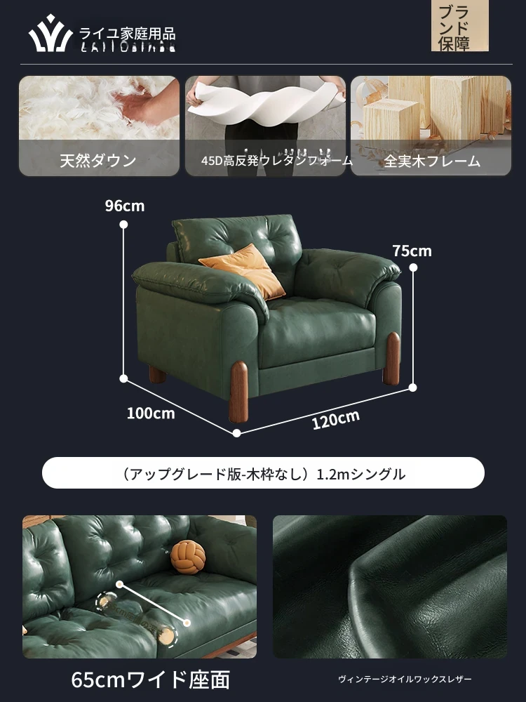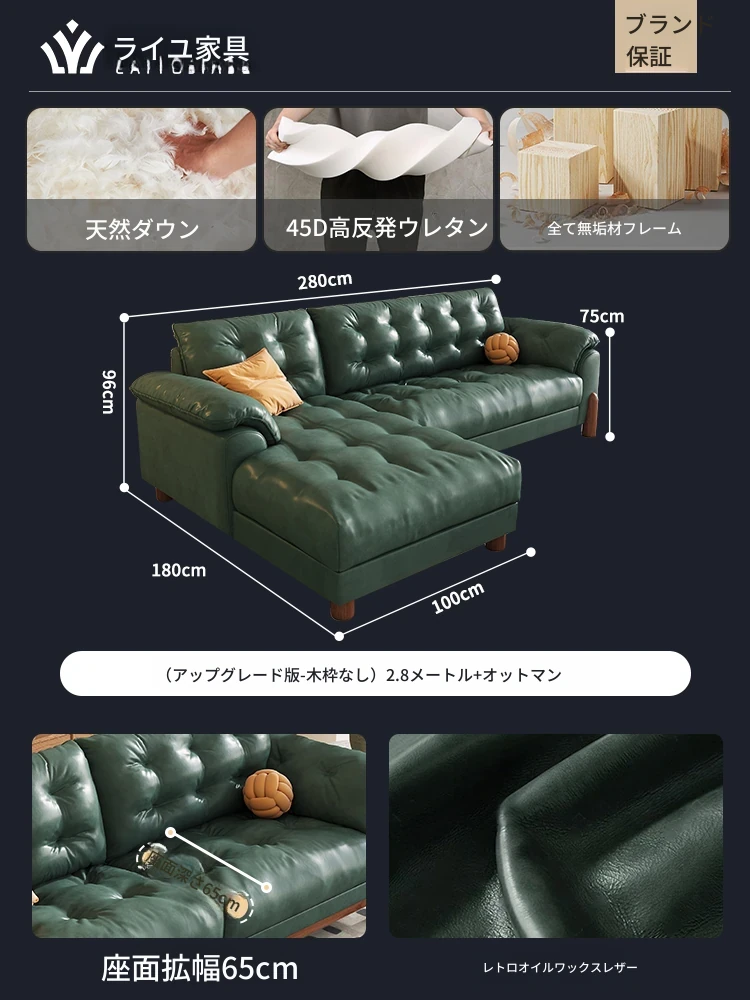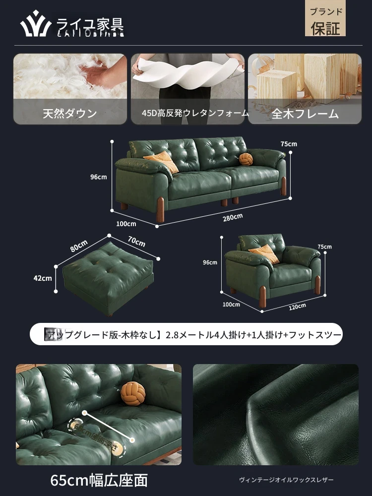 2025年新作!レトロな雰囲気の本革ソファ - 中古風リビング用、3人掛けの雲のような柔らかさ。オイルワックス仕上げで高級感溢れる、快適な座り心地をお楽しみください!