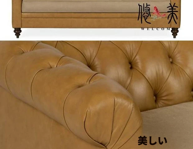 アメリカンスタイル本革ソファ 欧風ファブリックレトロオイルワックスレザー クラシックデザイン 小・中サイズのリビングに最適 シンプルな三人掛けソファ