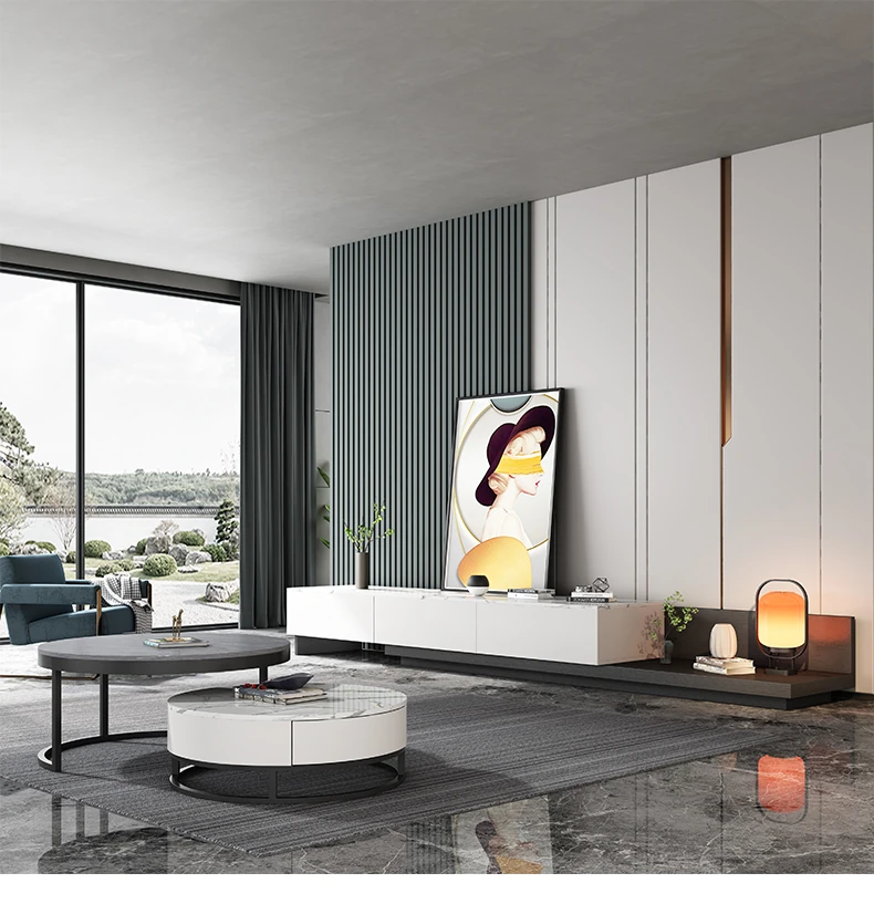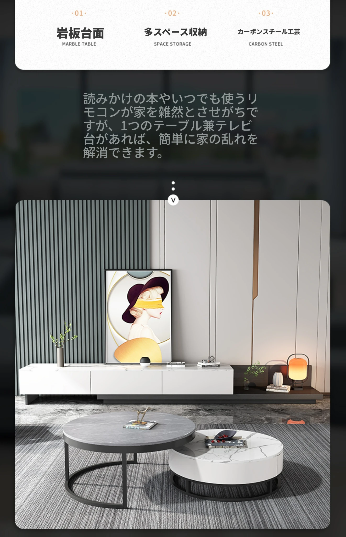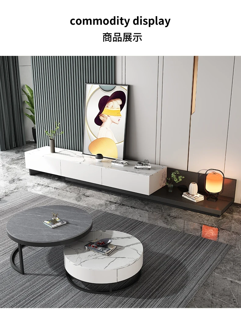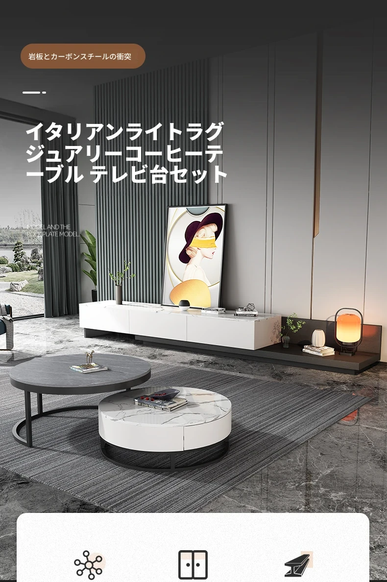 新作!軽奢イタリアンスタイルのクリーム風テーブル - 2023年モデル、大小兼用のラウンドティーテーブル。頑丈な岩板と強化ガラスを使用した、リビングにぴったりの移動可能なティーテーブルで、洗練された空間を演出します!