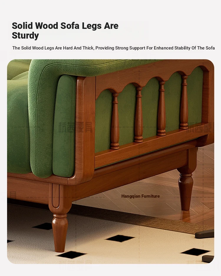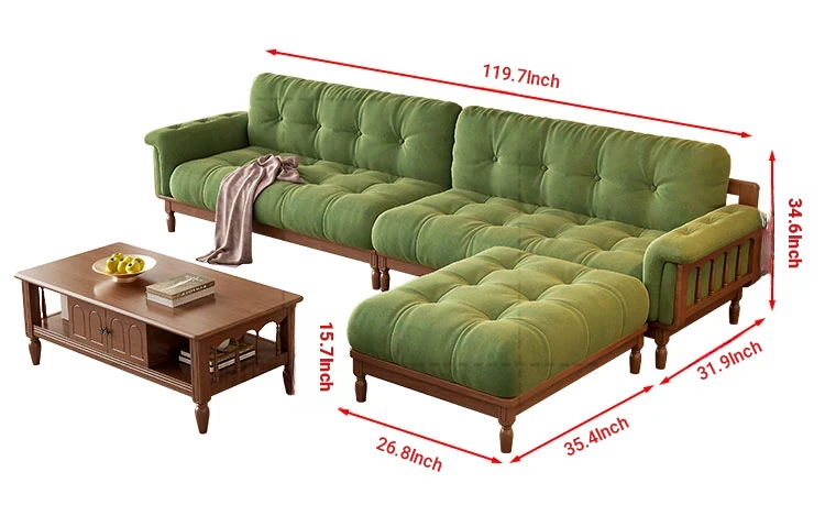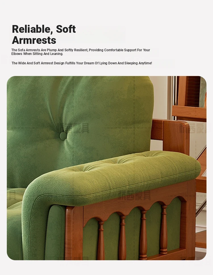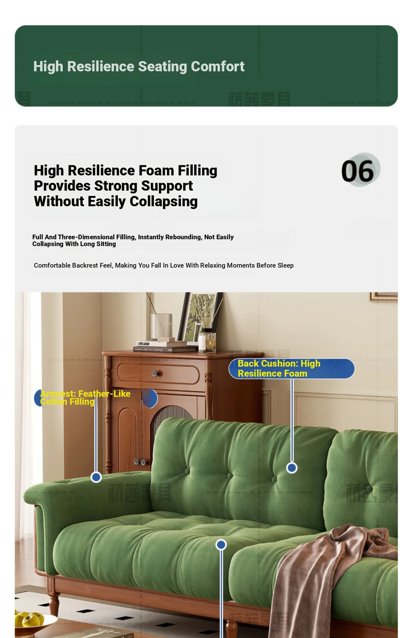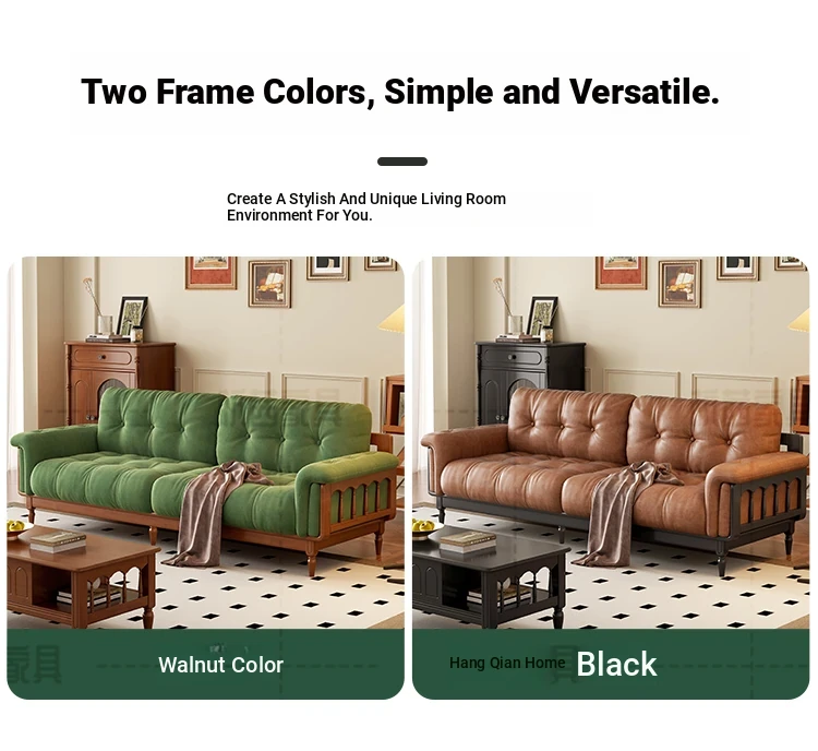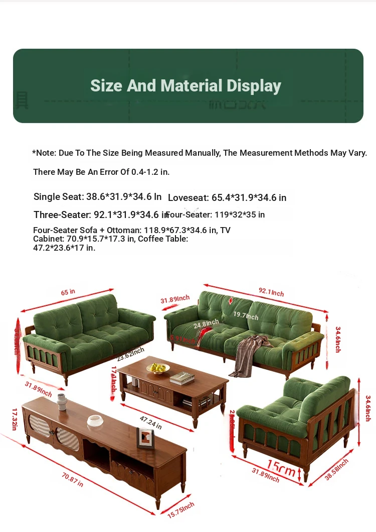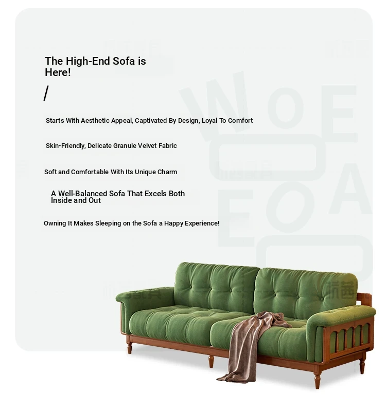 French Vintage Solid Wood Sofa Set for Small Spaces - Retro Walnut Velvet Cloud Sofa for Living Room 2025