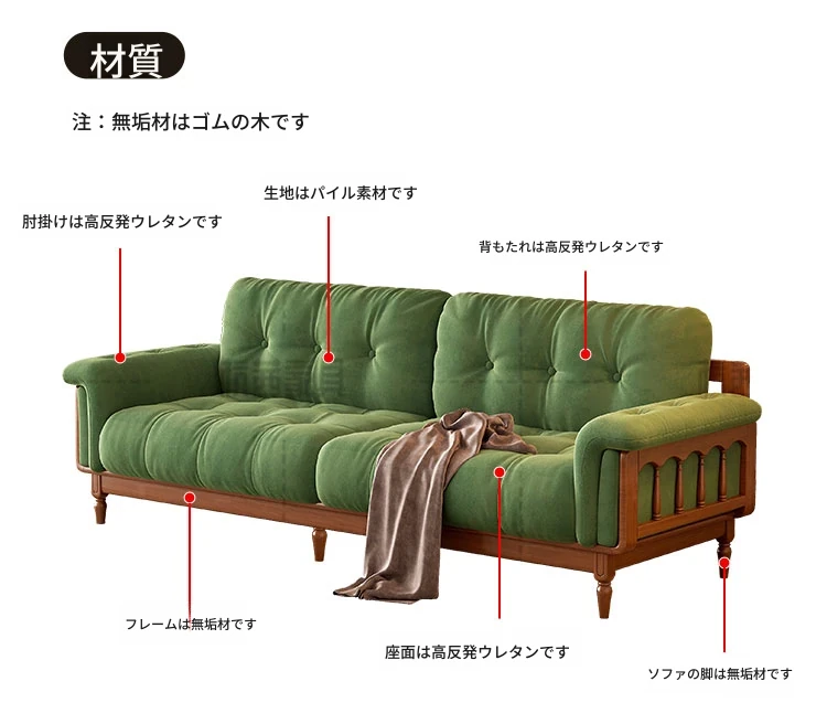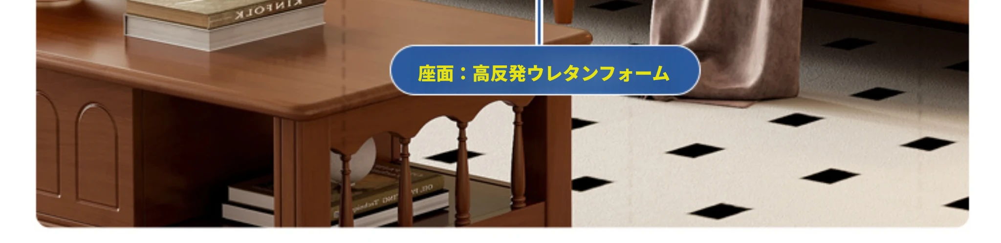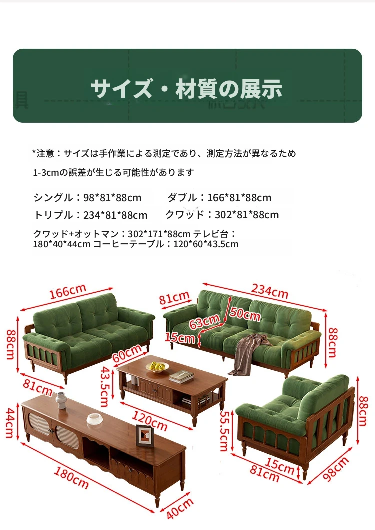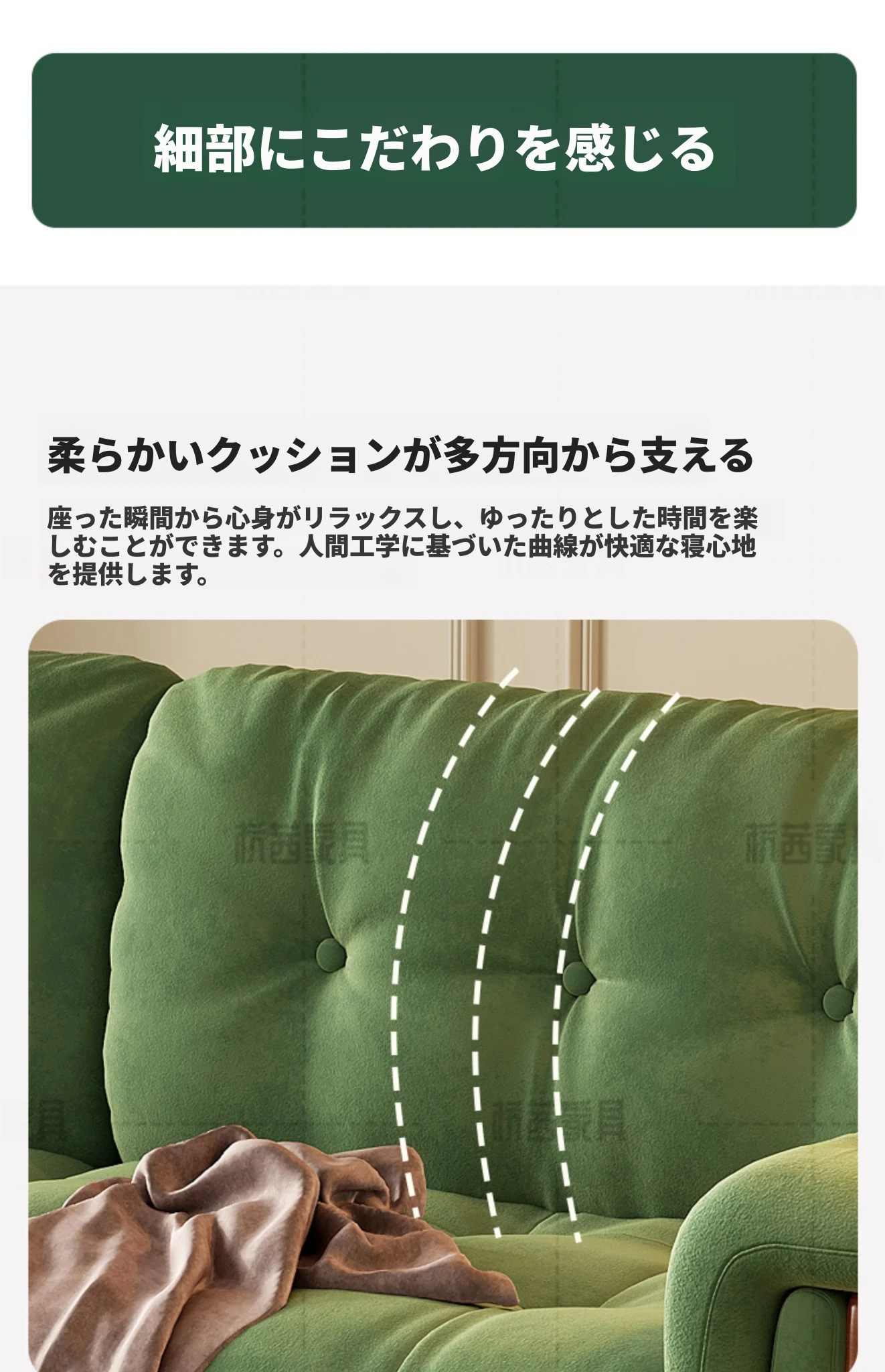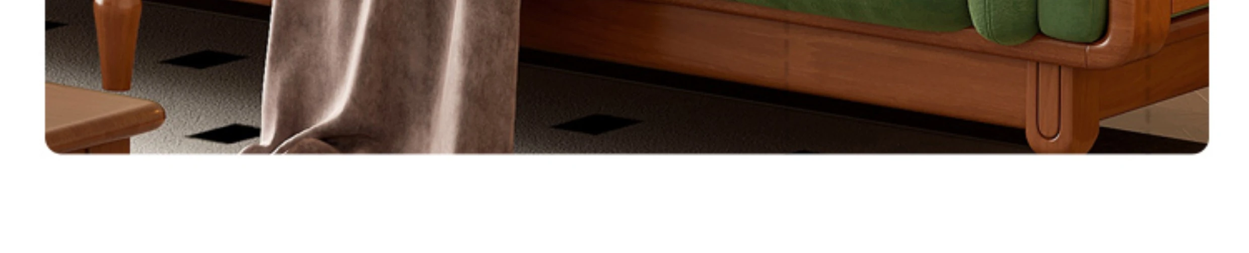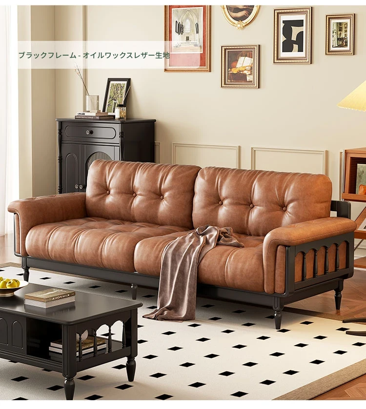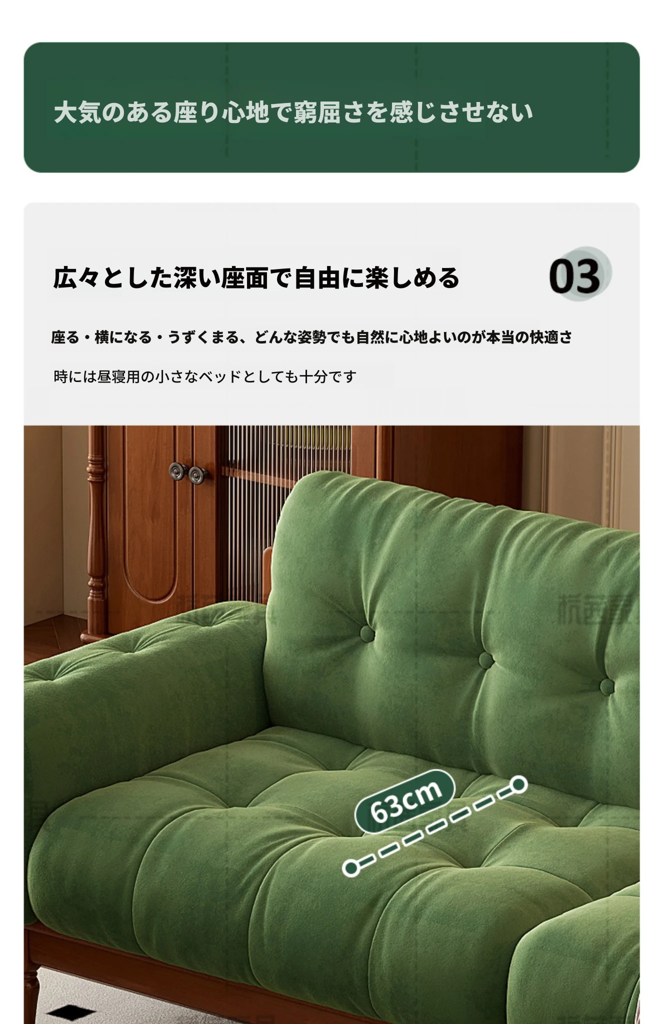 フレンチスタイルの無垢材ソファ 小型住宅向け ヴィンテージ2025リビング家具セット レトロなウォルナット色 ベルベット雲ソファで、心地よい空間を演出!