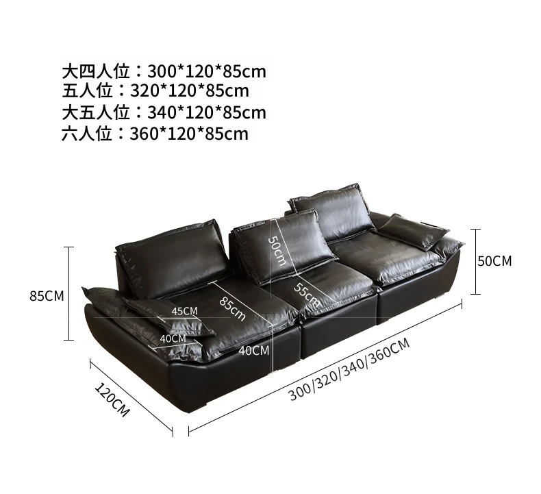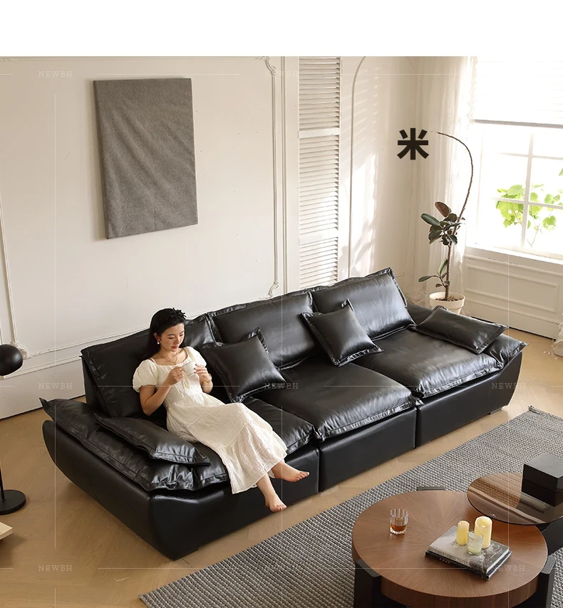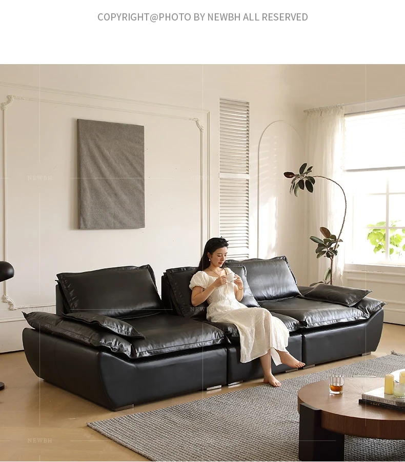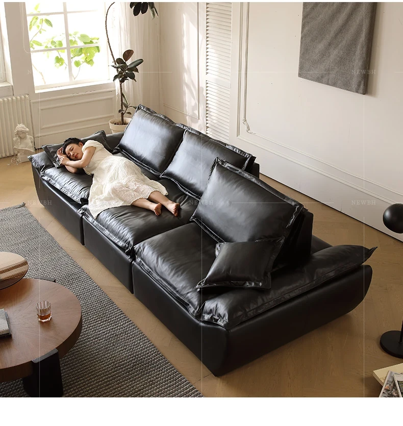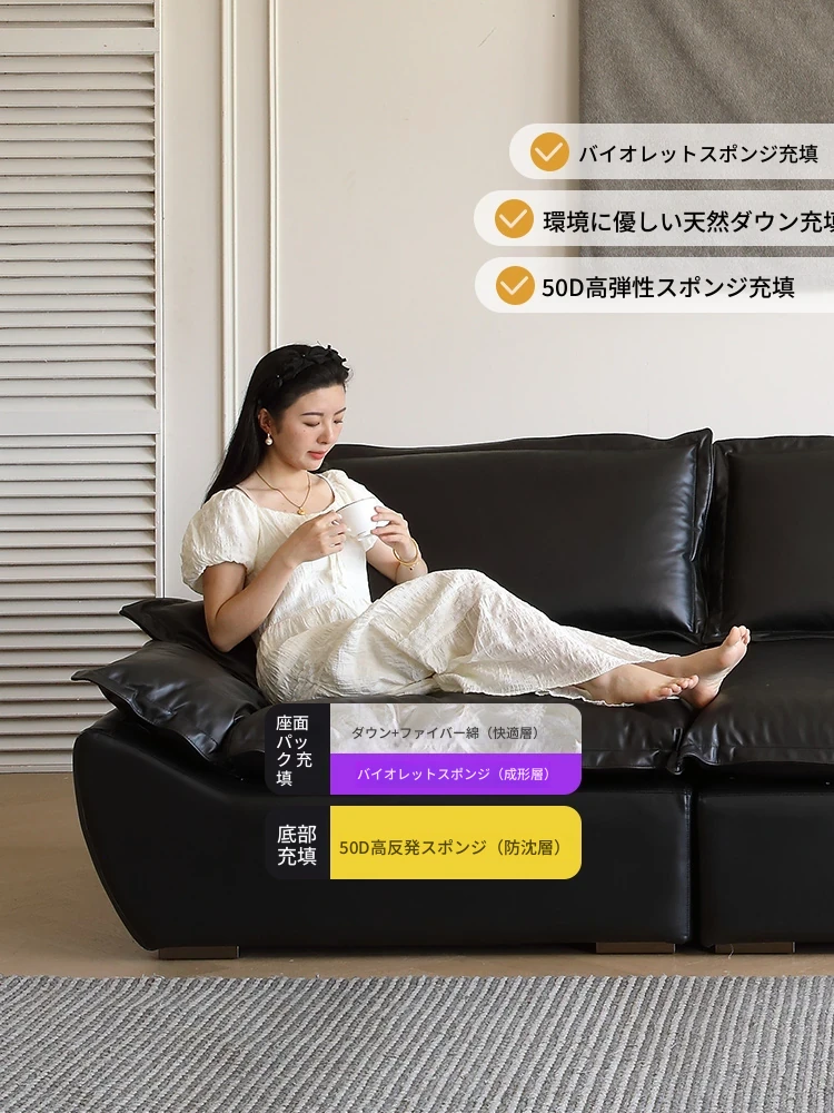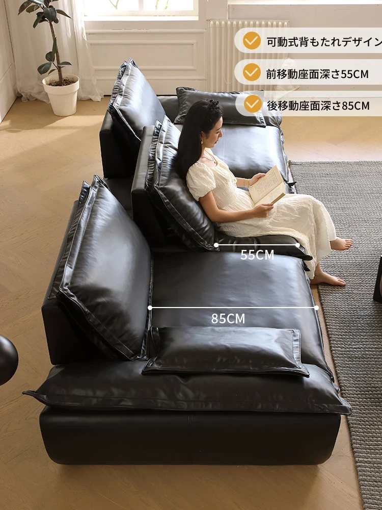 全輸入のトップグレード牛革ソファ、移動可能な背もたれ付き!超深座り&広々デザインのリビングルーム用ラグジュアリーソファ、くつろぎの帆船スタイルで、まるで雲の上にいるような心地よさを体験してください。