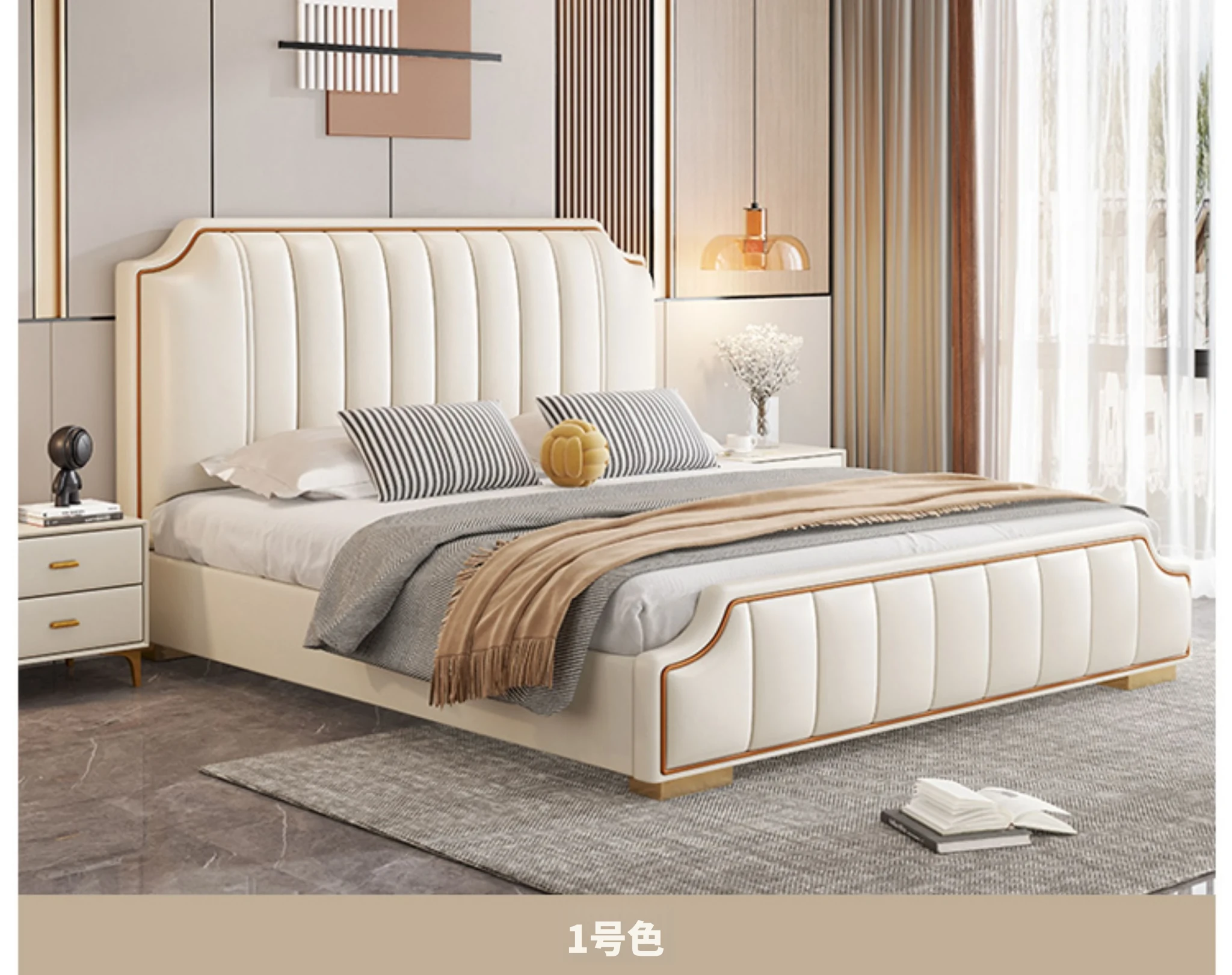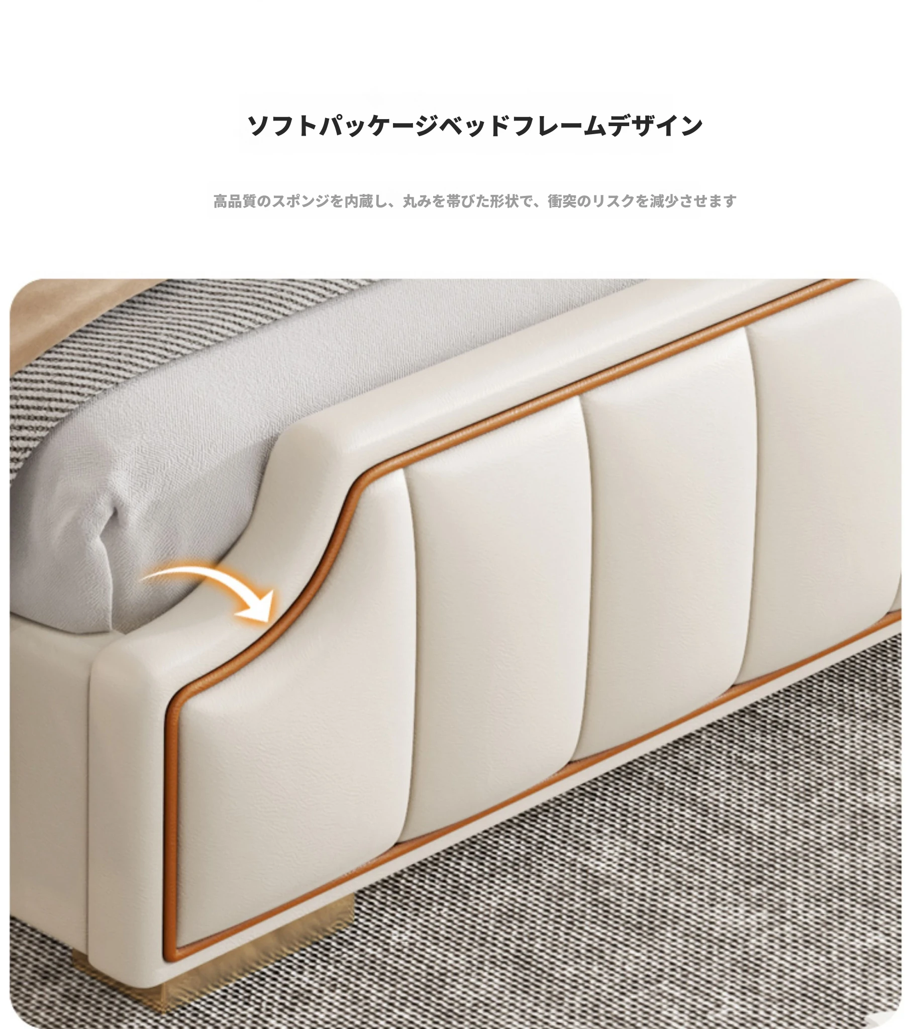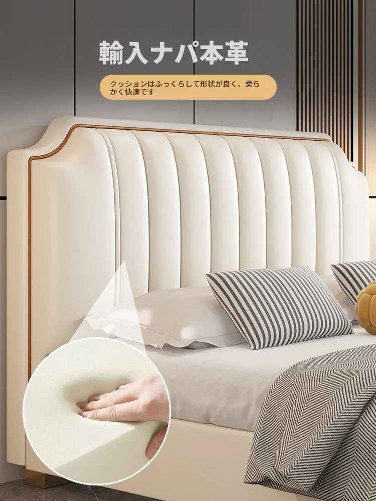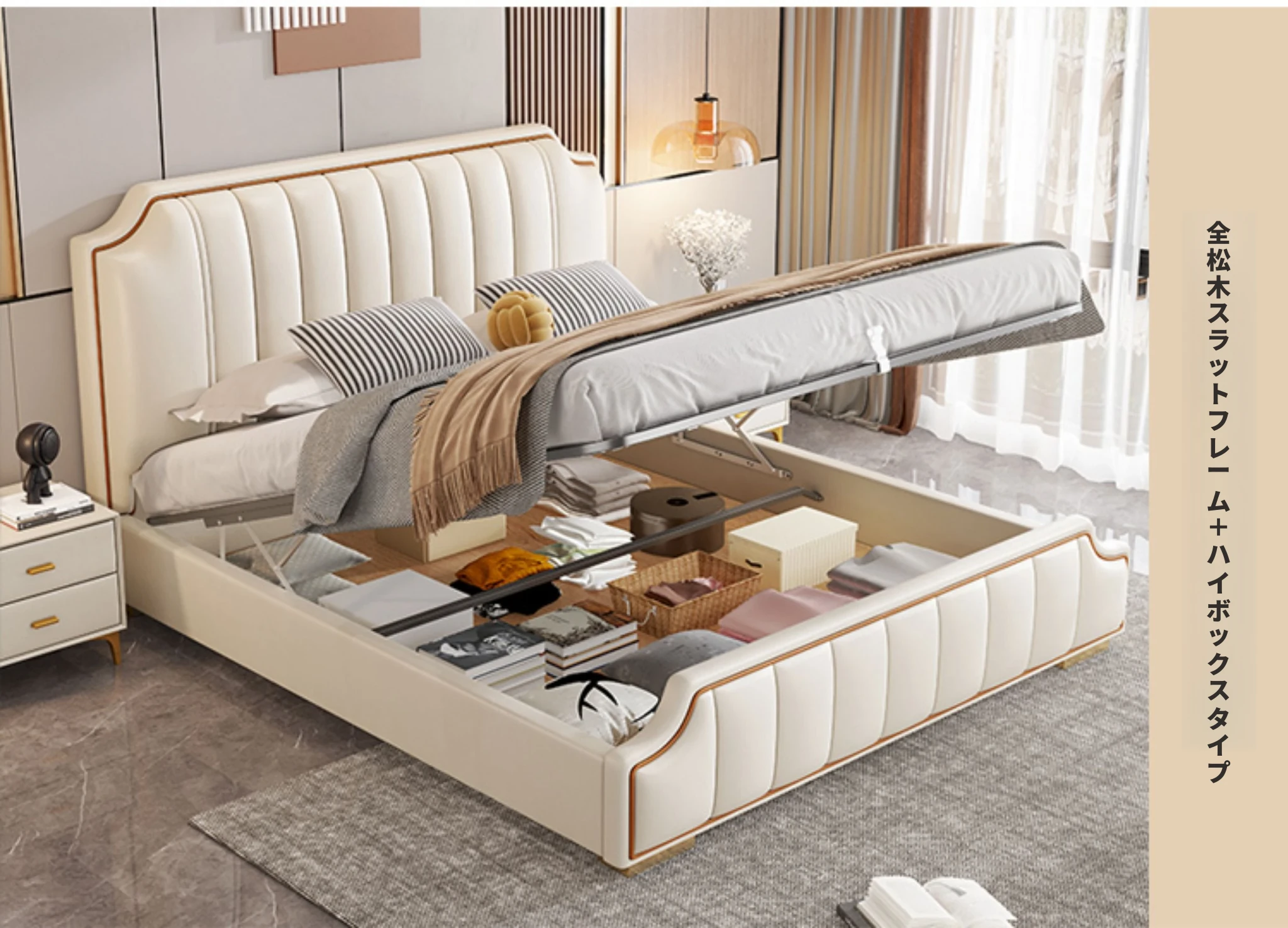 2024年新作!イタリアンライトラグジュアリー1.8mダブルベッド - モダンデザインのスラットフレーム&ハイストレージ付き本革ベッドで、主寝室をスタイリッシュに演出!収納力抜群、快適な眠りをお約束します。
