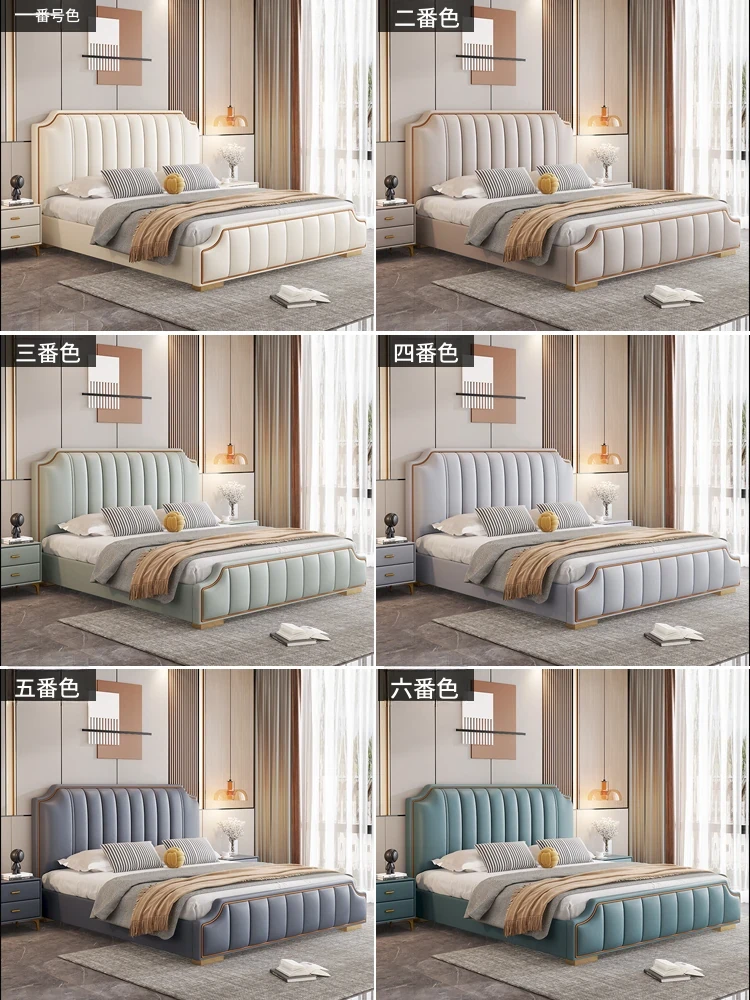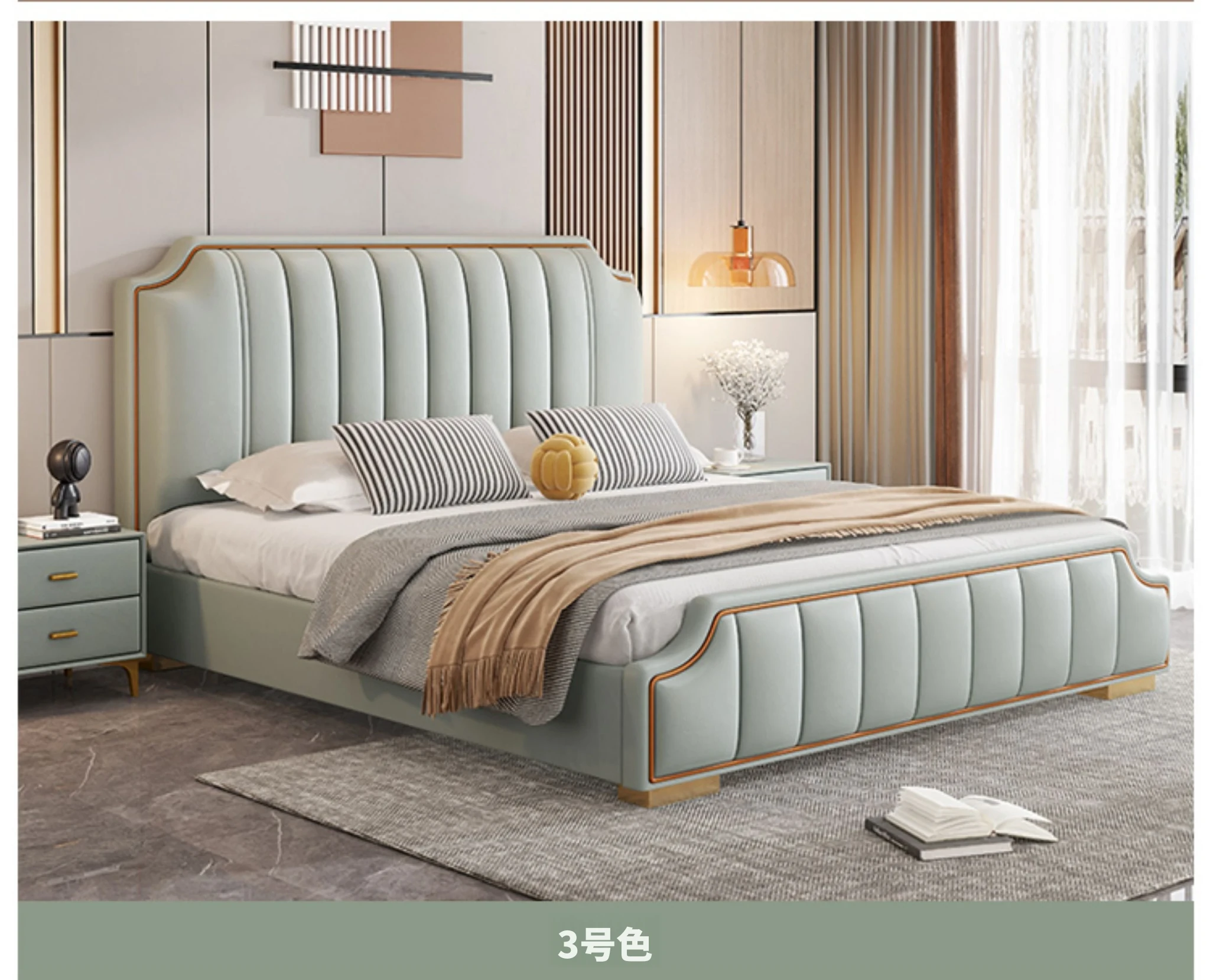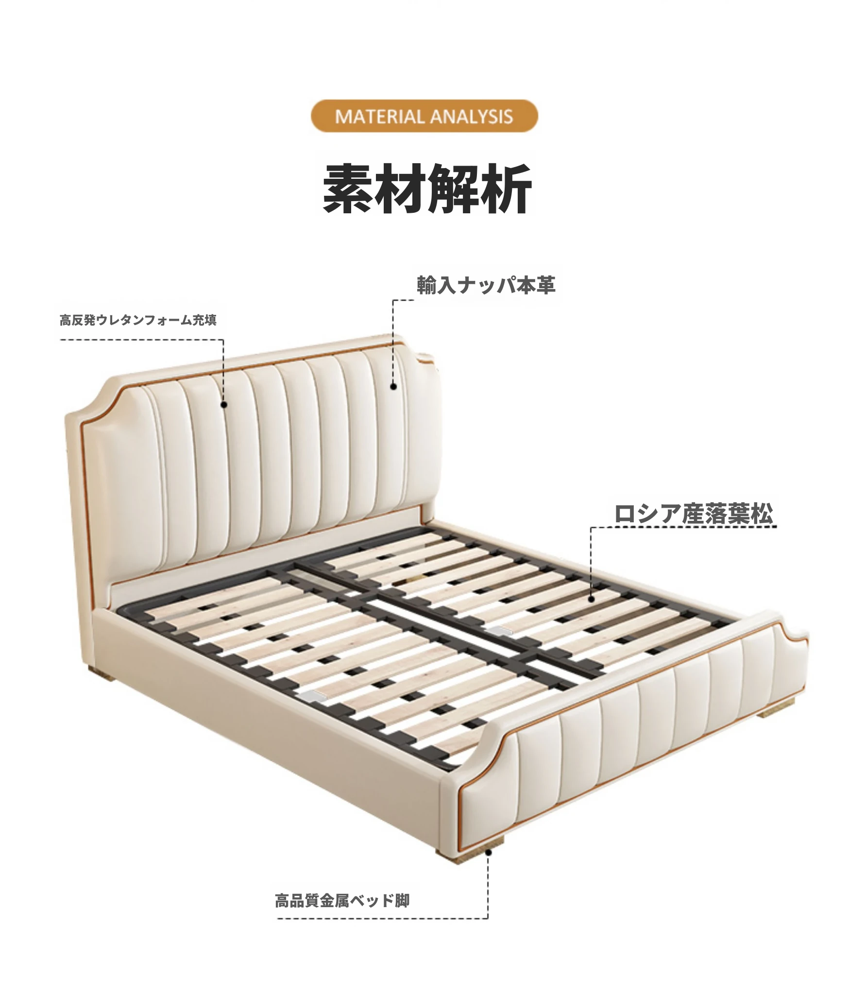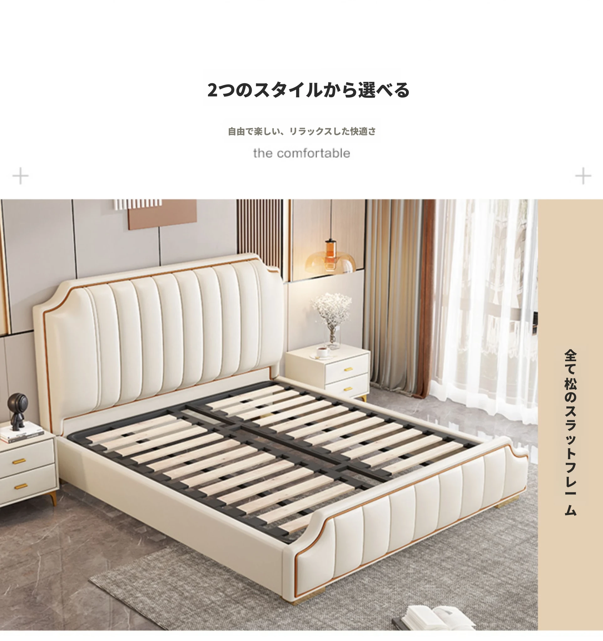 2024年新作!イタリアンライトラグジュアリー1.8mダブルベッド - モダンデザインのスラットフレーム&ハイストレージ付き本革ベッドで、主寝室をスタイリッシュに演出!収納力抜群、快適な眠りをお約束します。