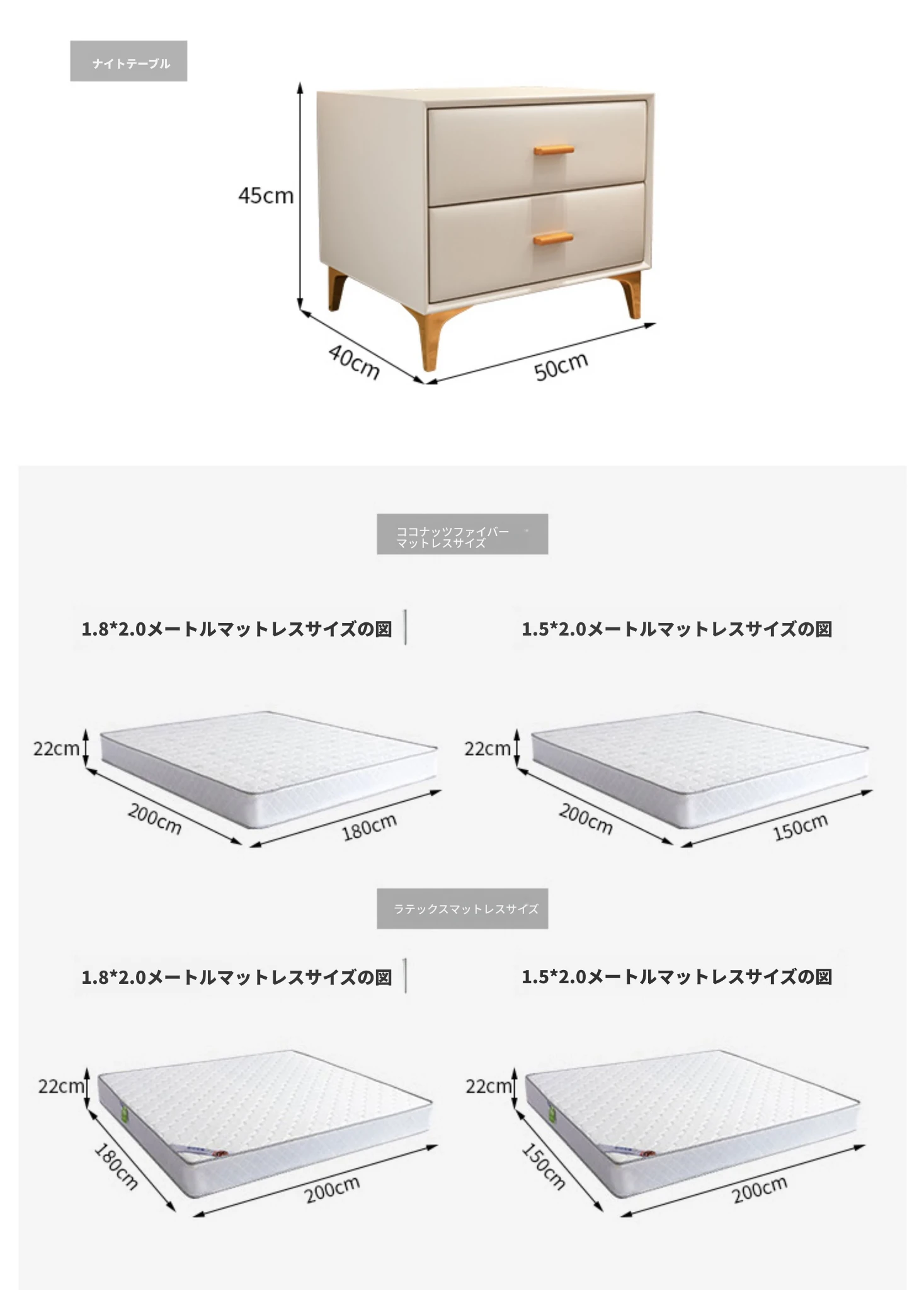 輸入された松の無垢ベッド+22CMココナッツマットレス+2つのナイトテーブル